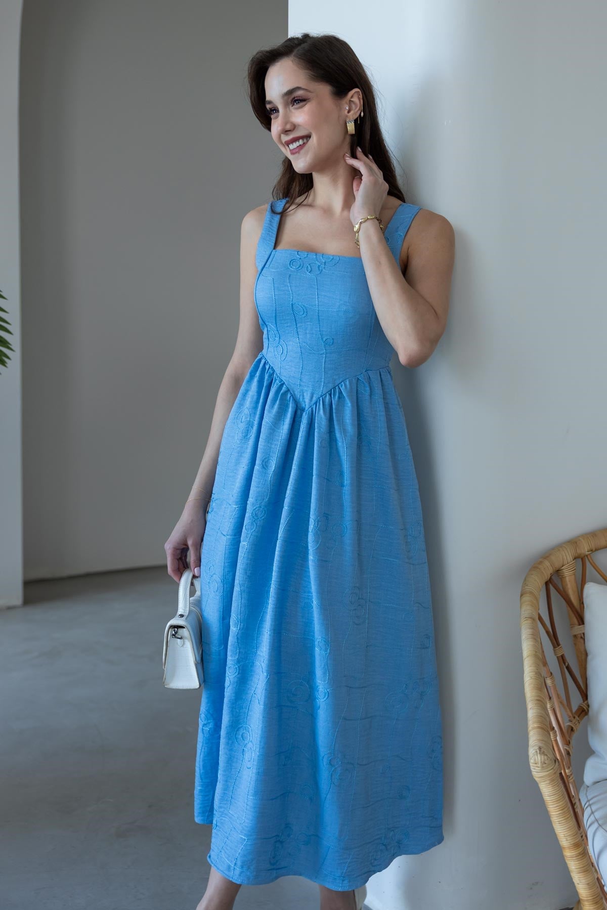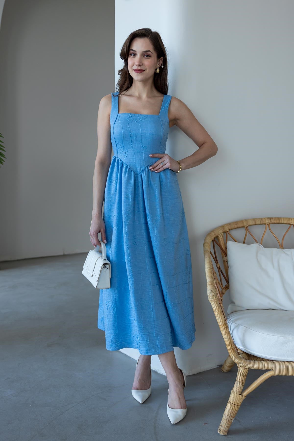Askılı İşlemeli Elbise - MAVİ (BFS531ELB0001104)