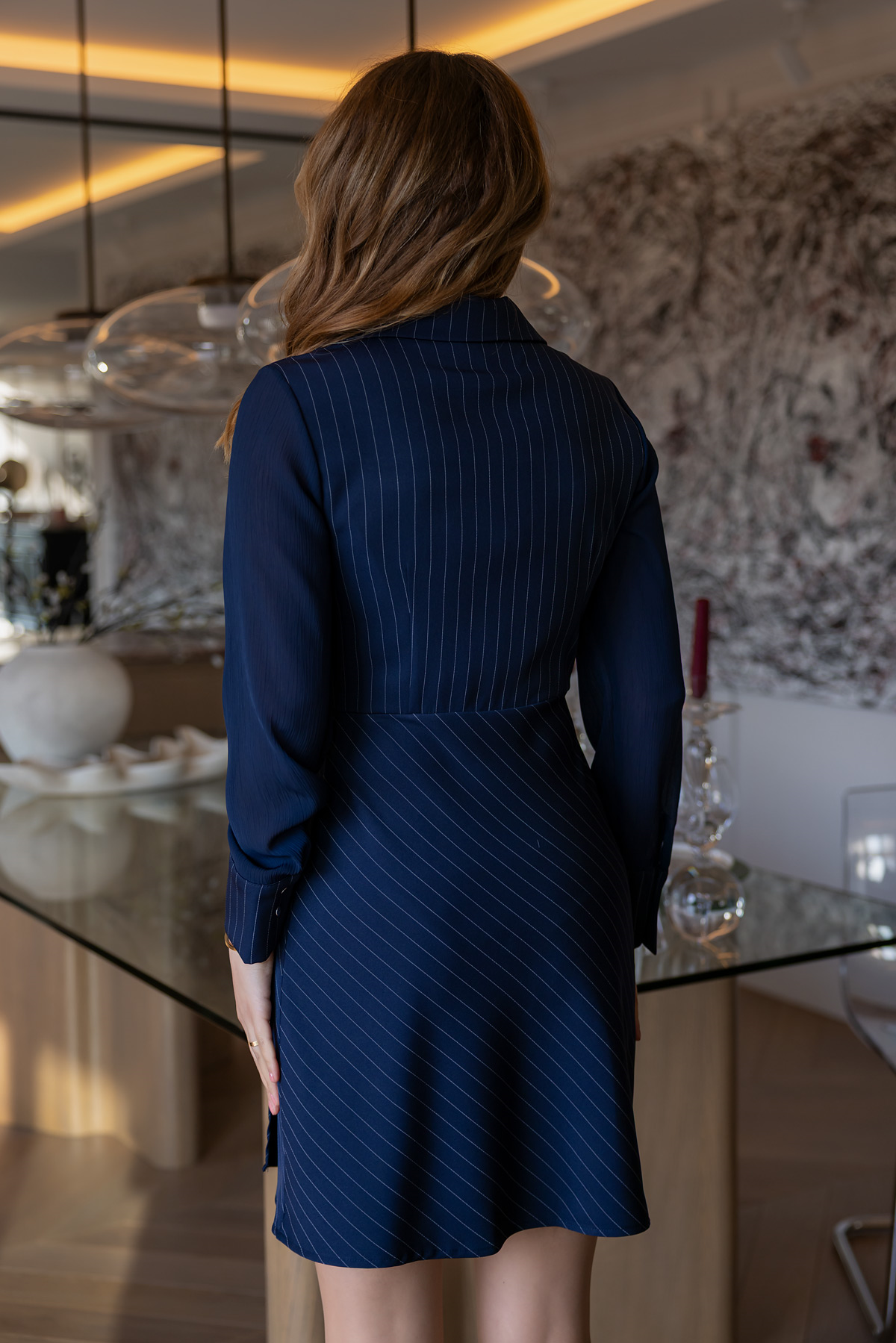 Çizgili Bağlamalı Elbise - LACİVERT (BFW528ELB0013110)
