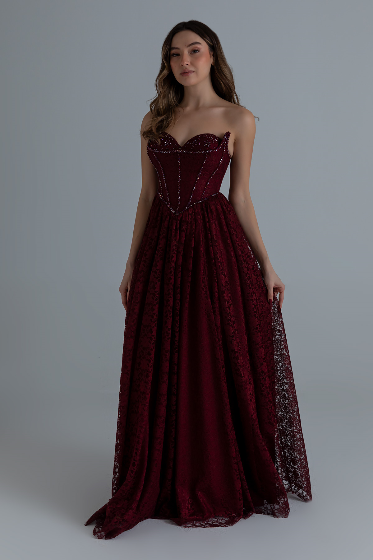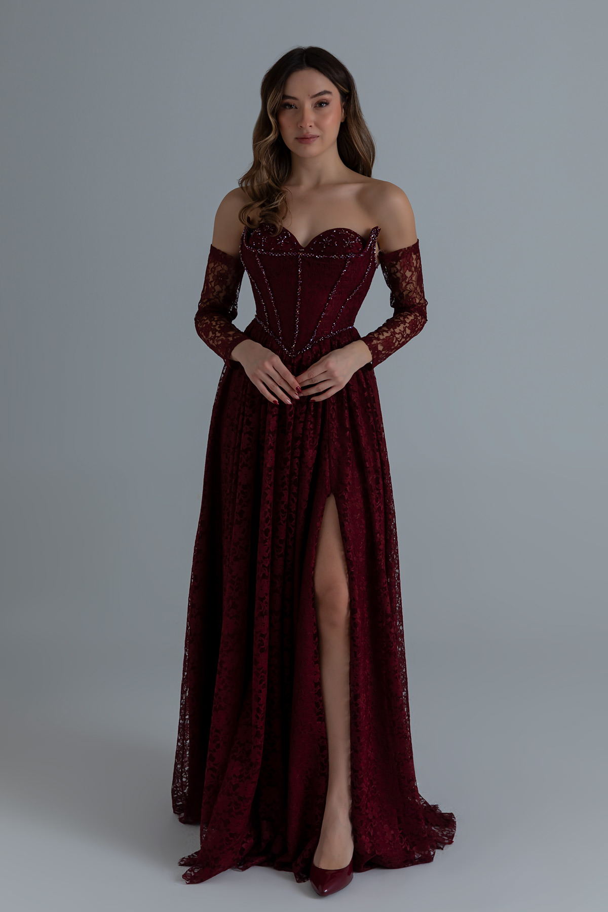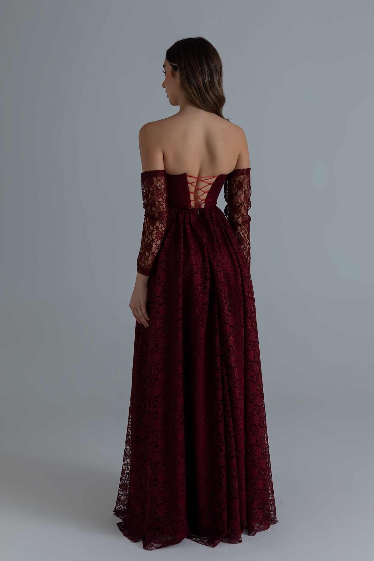 Dantelli Uzun Abiye - BORDO (BFW701ABY0008121)