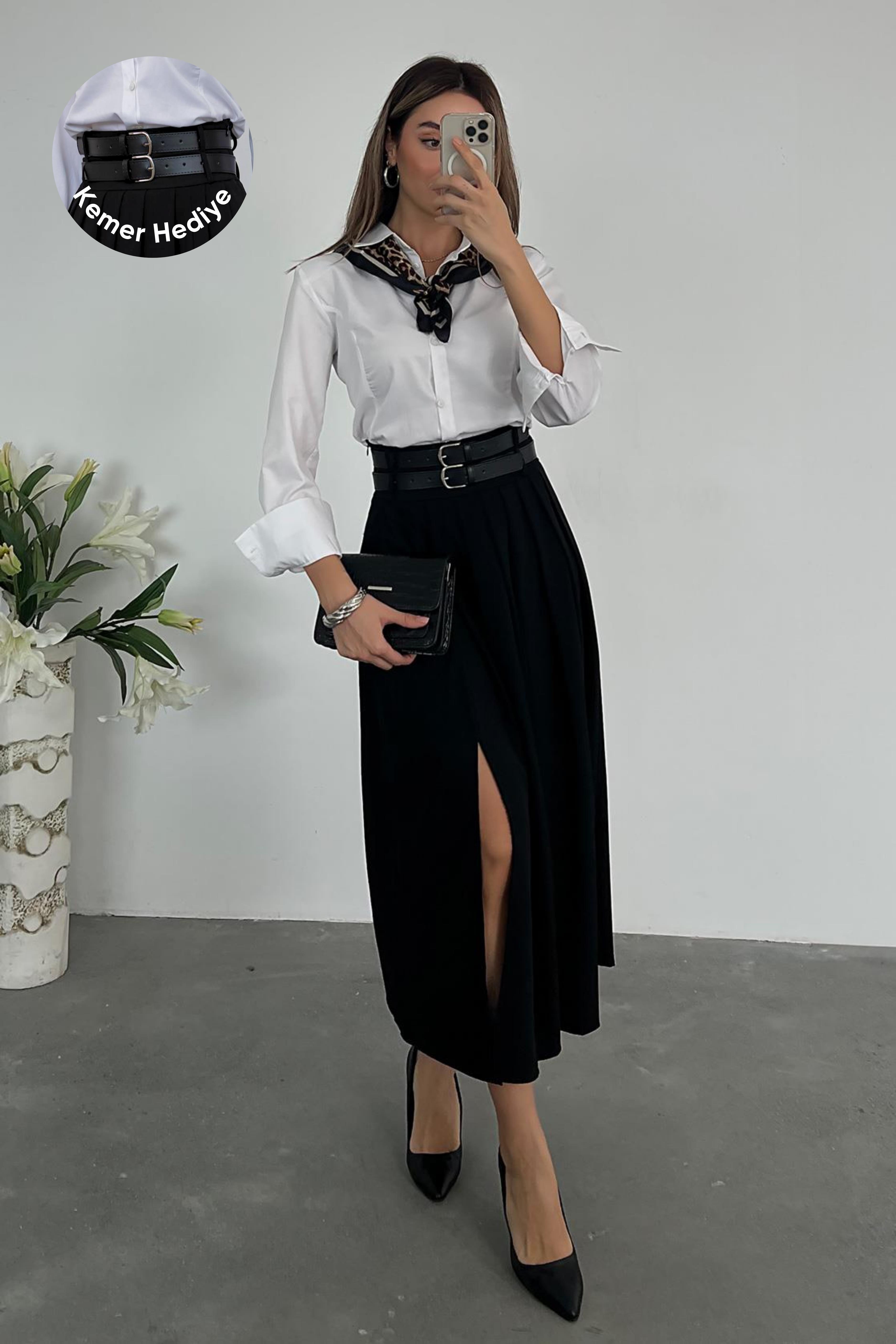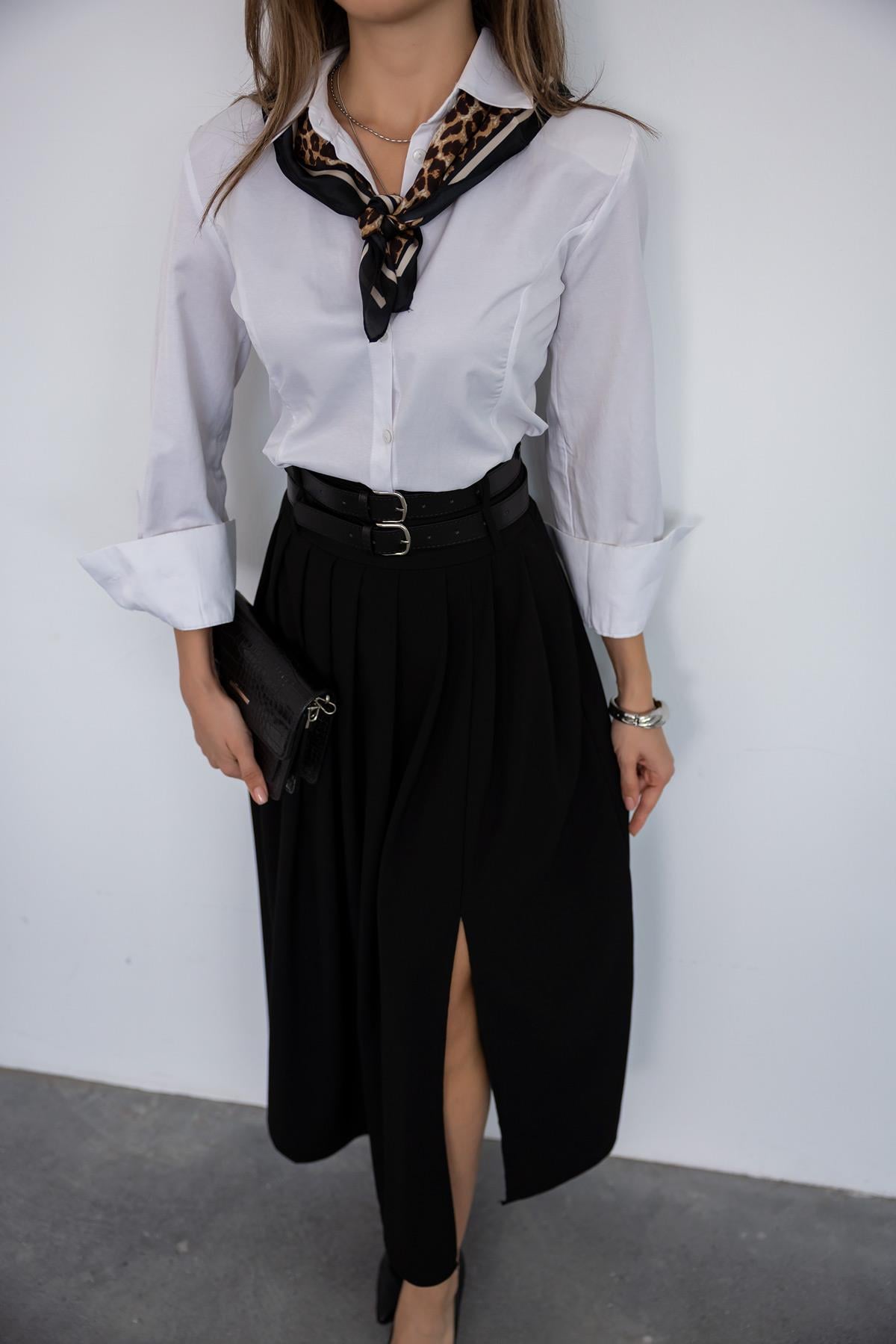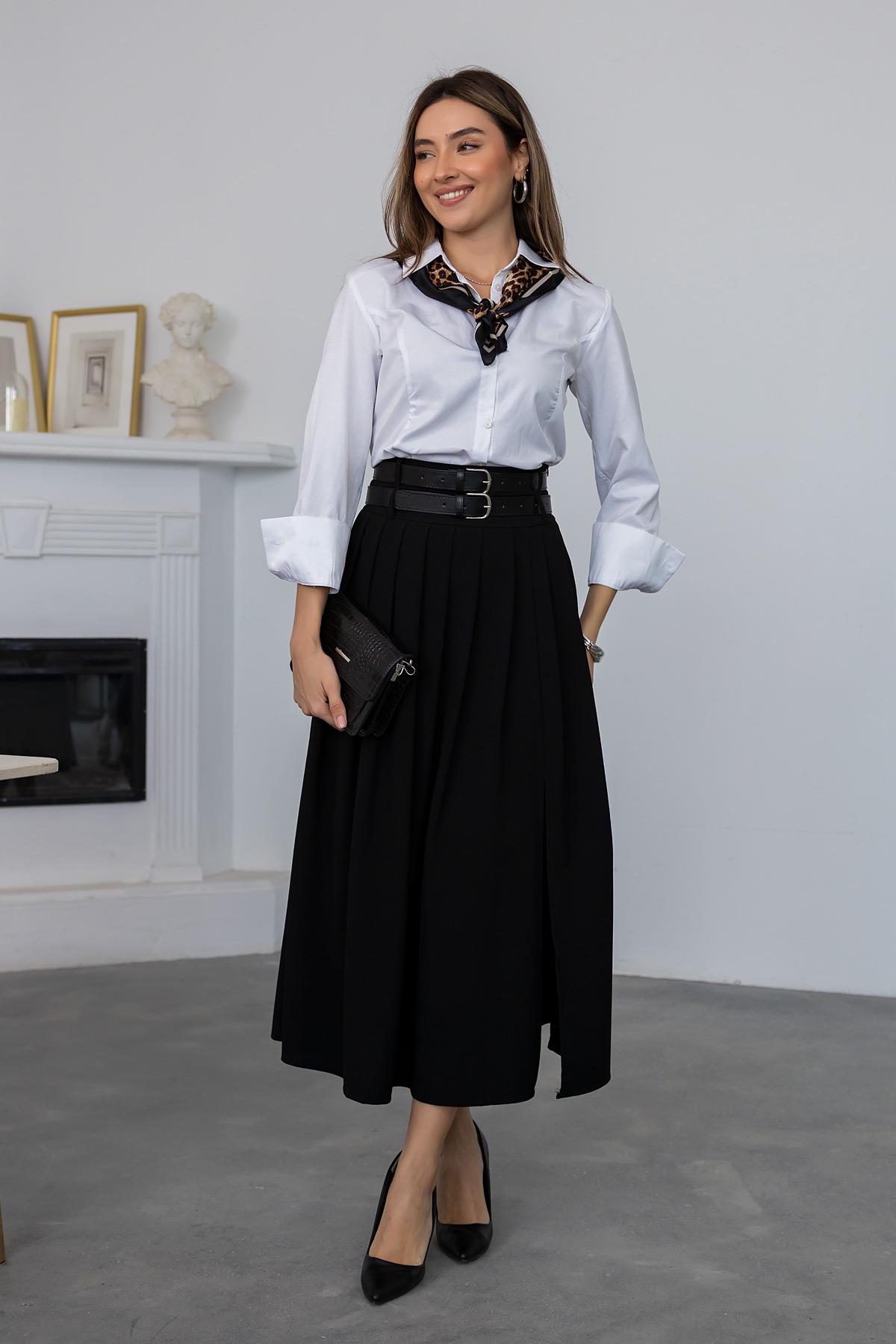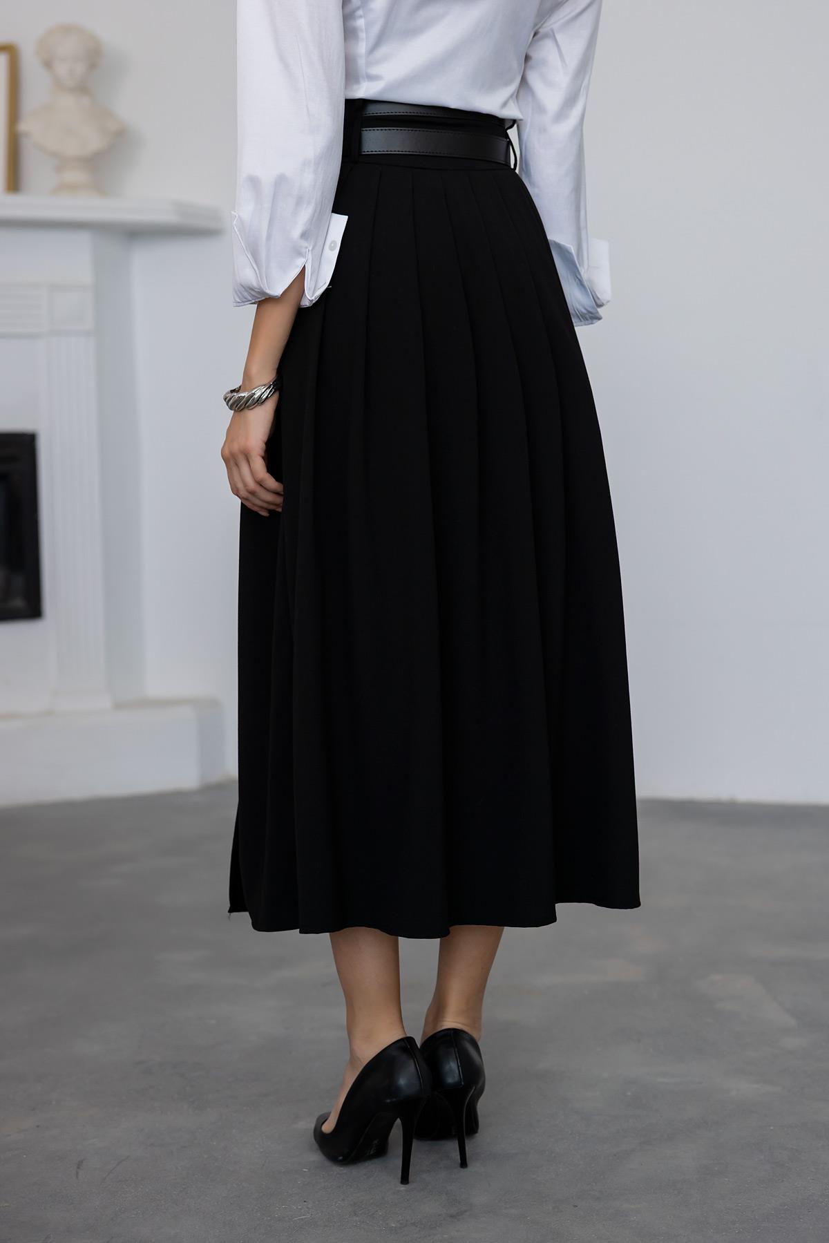 Çift Kemerli Pileli Etek - SİYAH (BFW103ETK0002100)