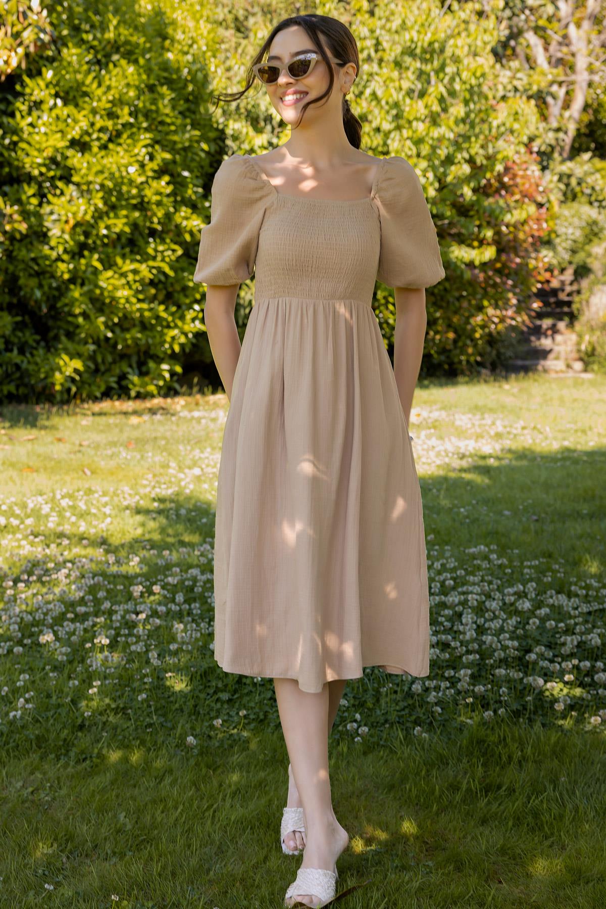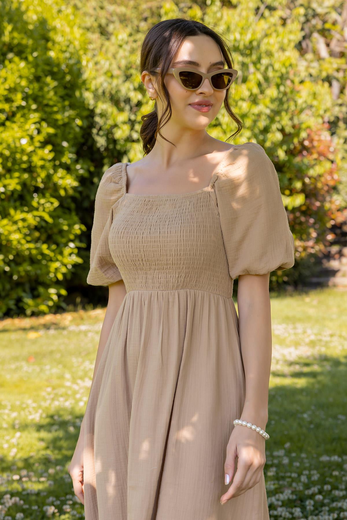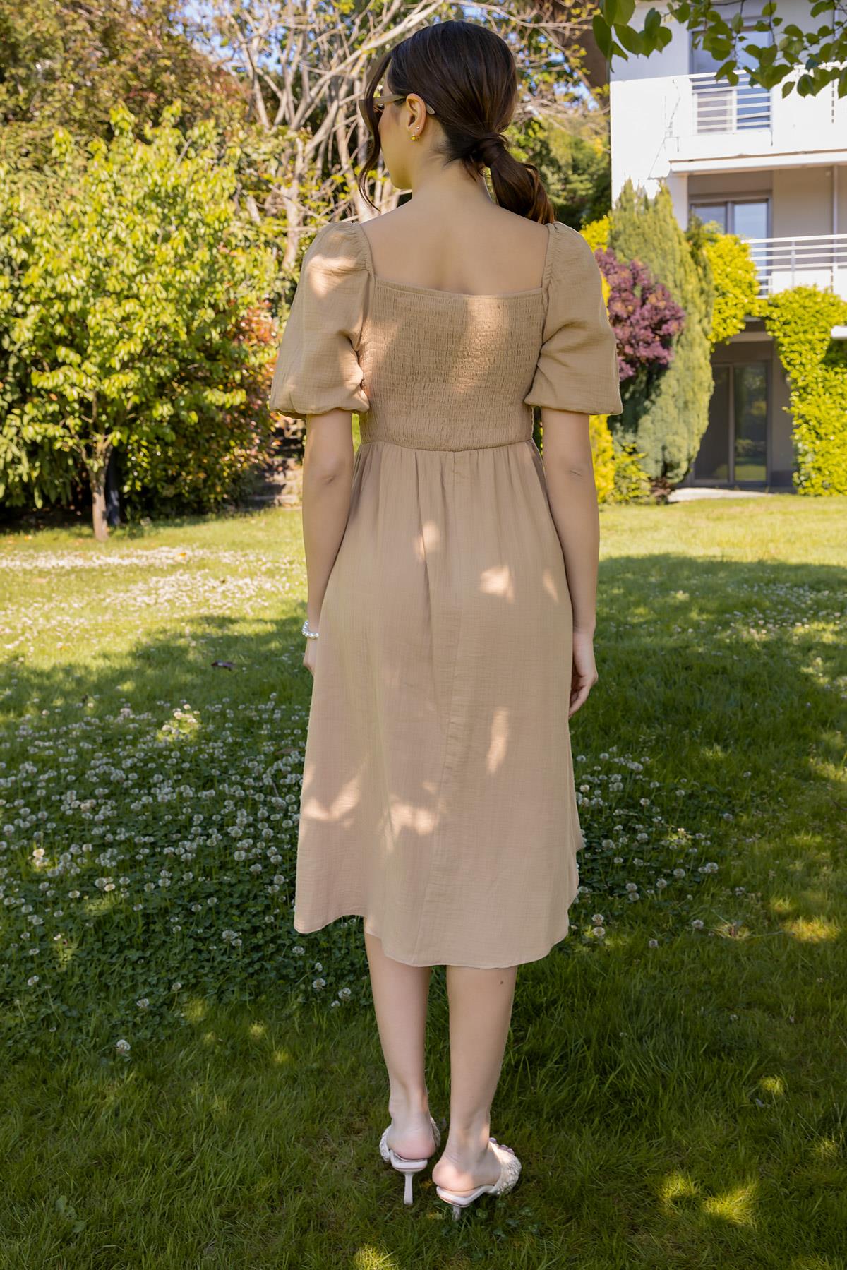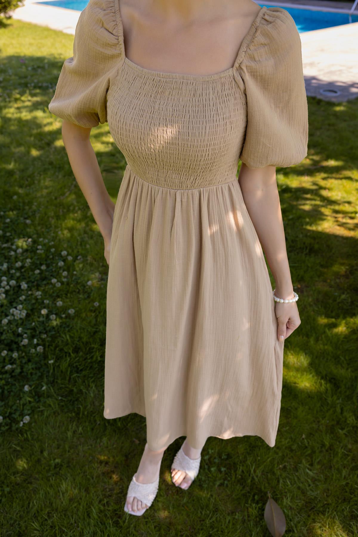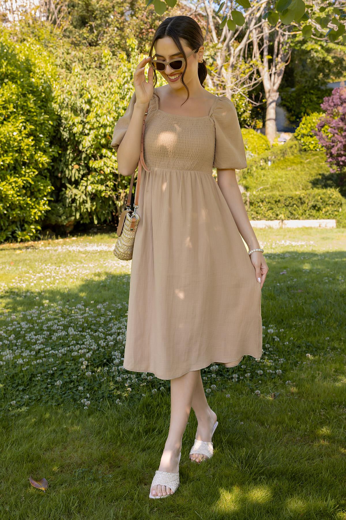 Gipeli Müslin Elbise - VİZON (BES024ELB0002125)