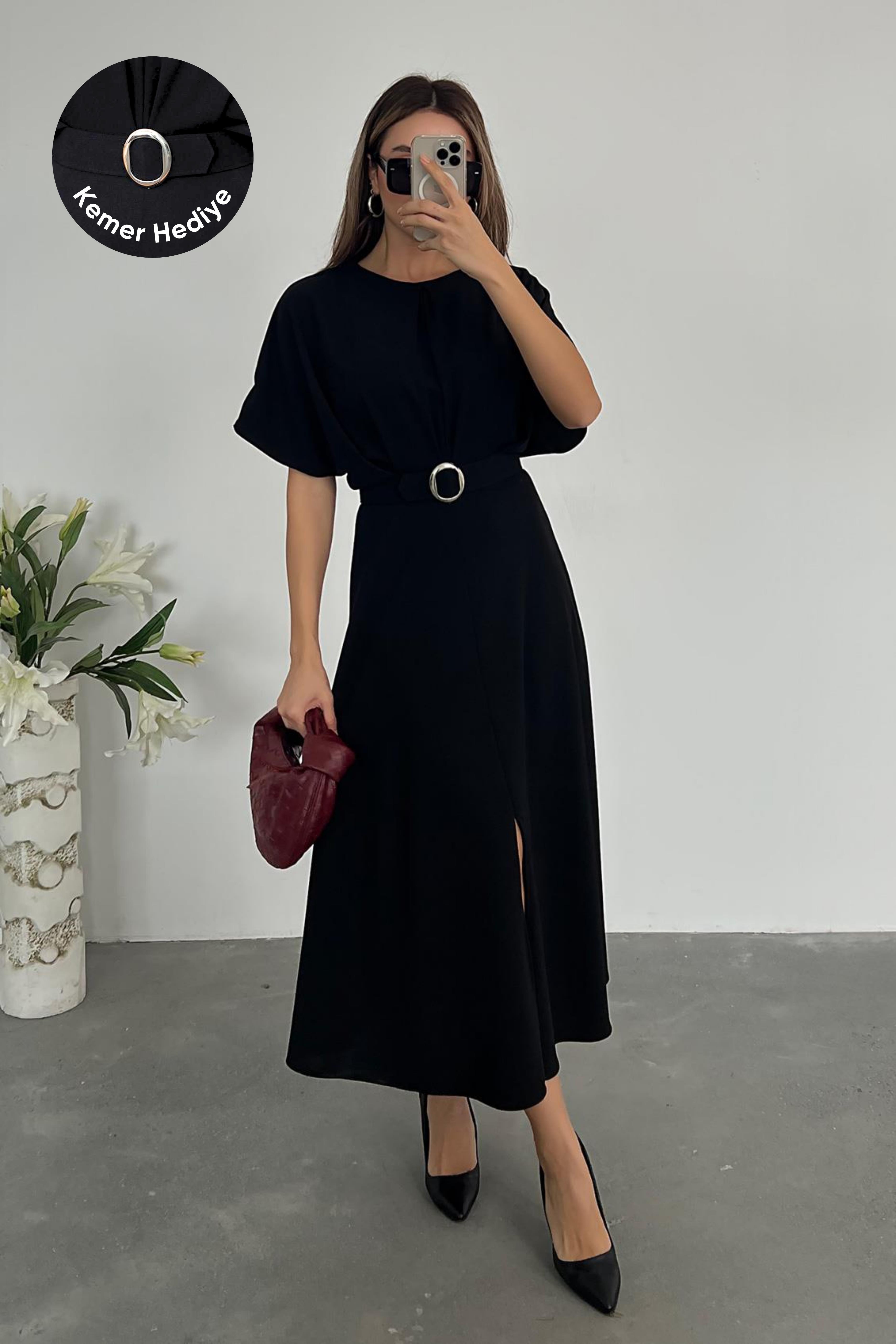 Kemerli Esnek Elbise - SİYAH (BFW531ELB0009100)