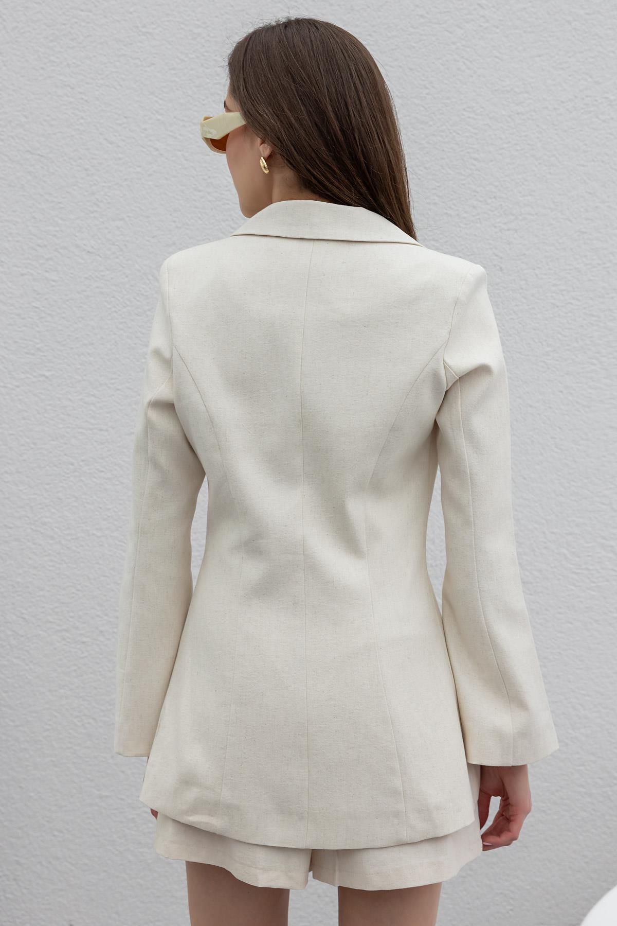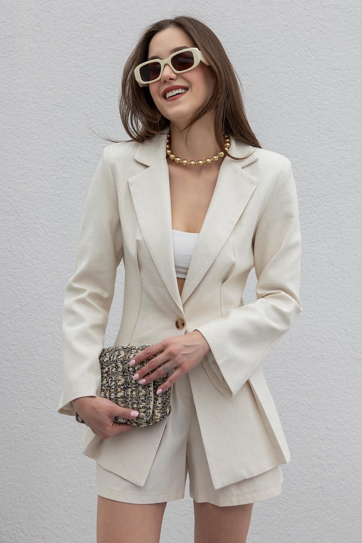 Keten Ceket Şort Takım - TAŞ (BES397TKM0003145)