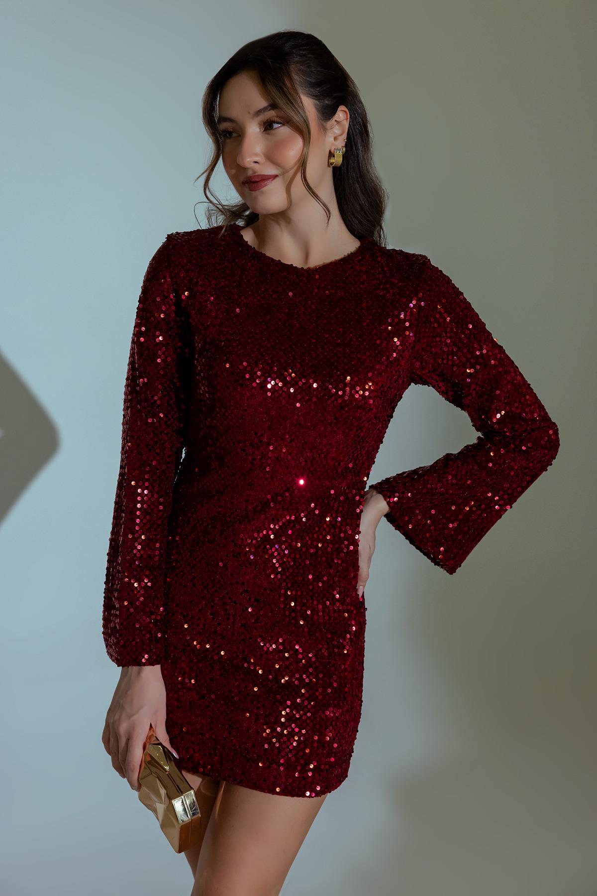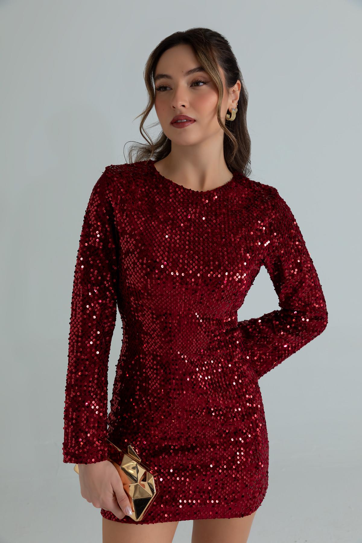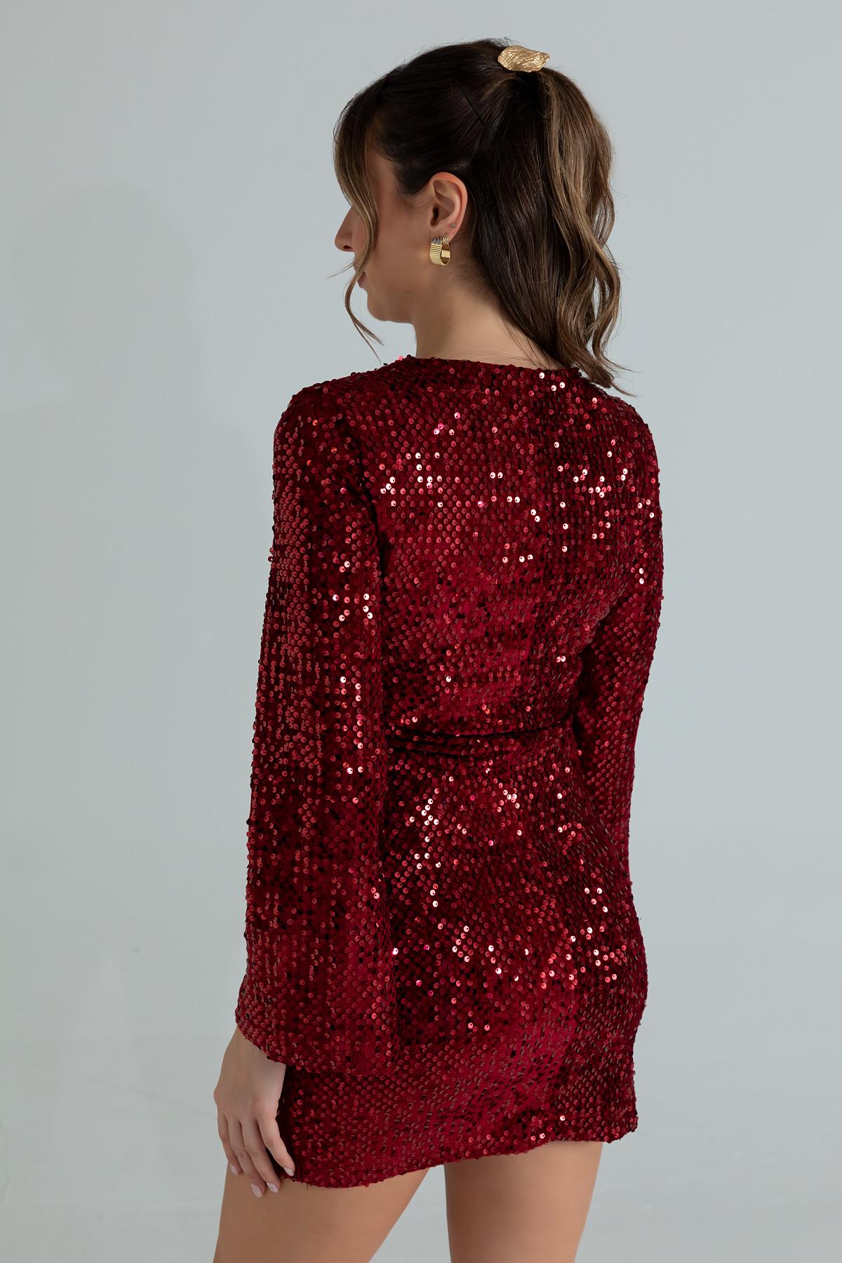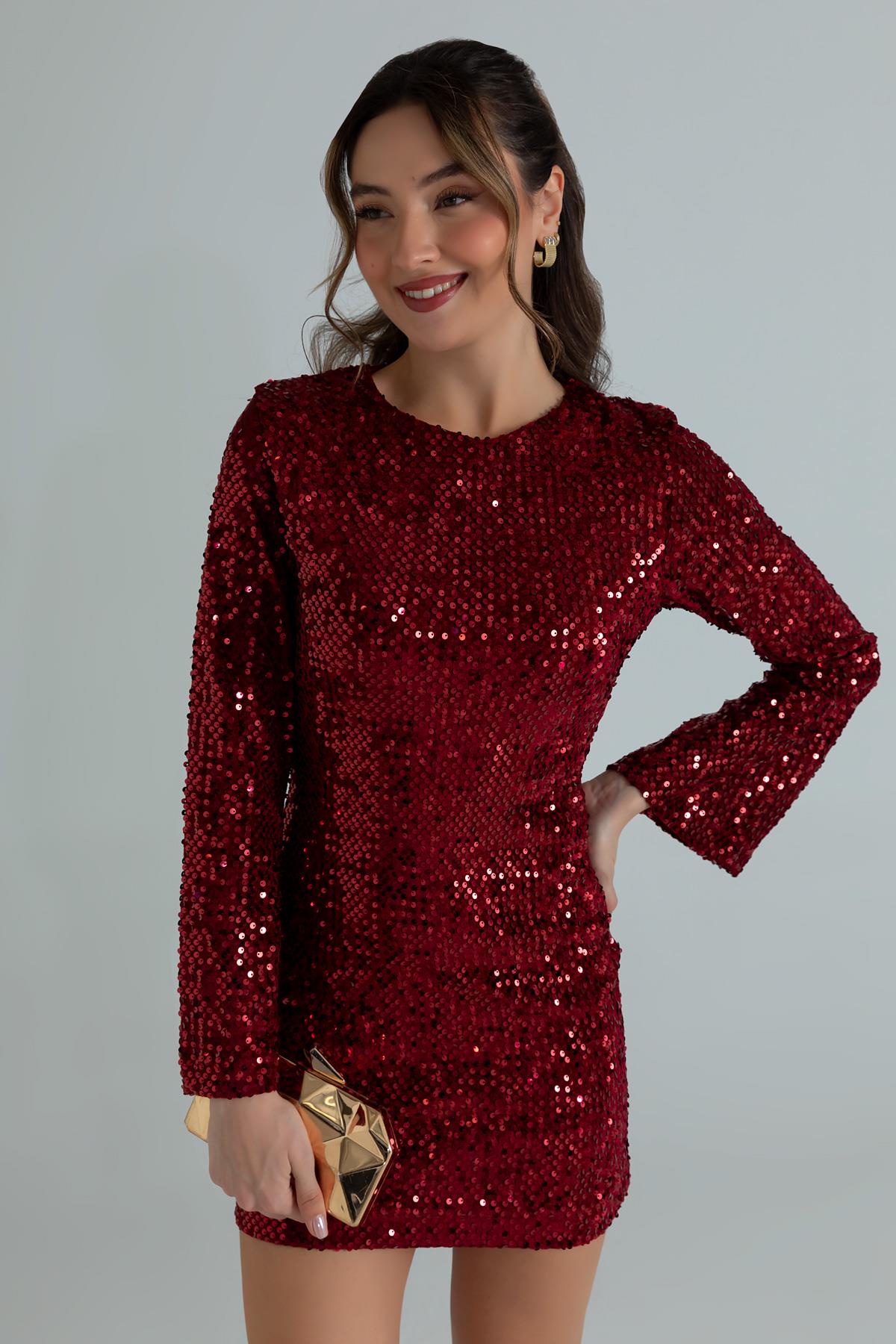 Payetli Mini Elbise - BORDO (BFW568ELB0002121)