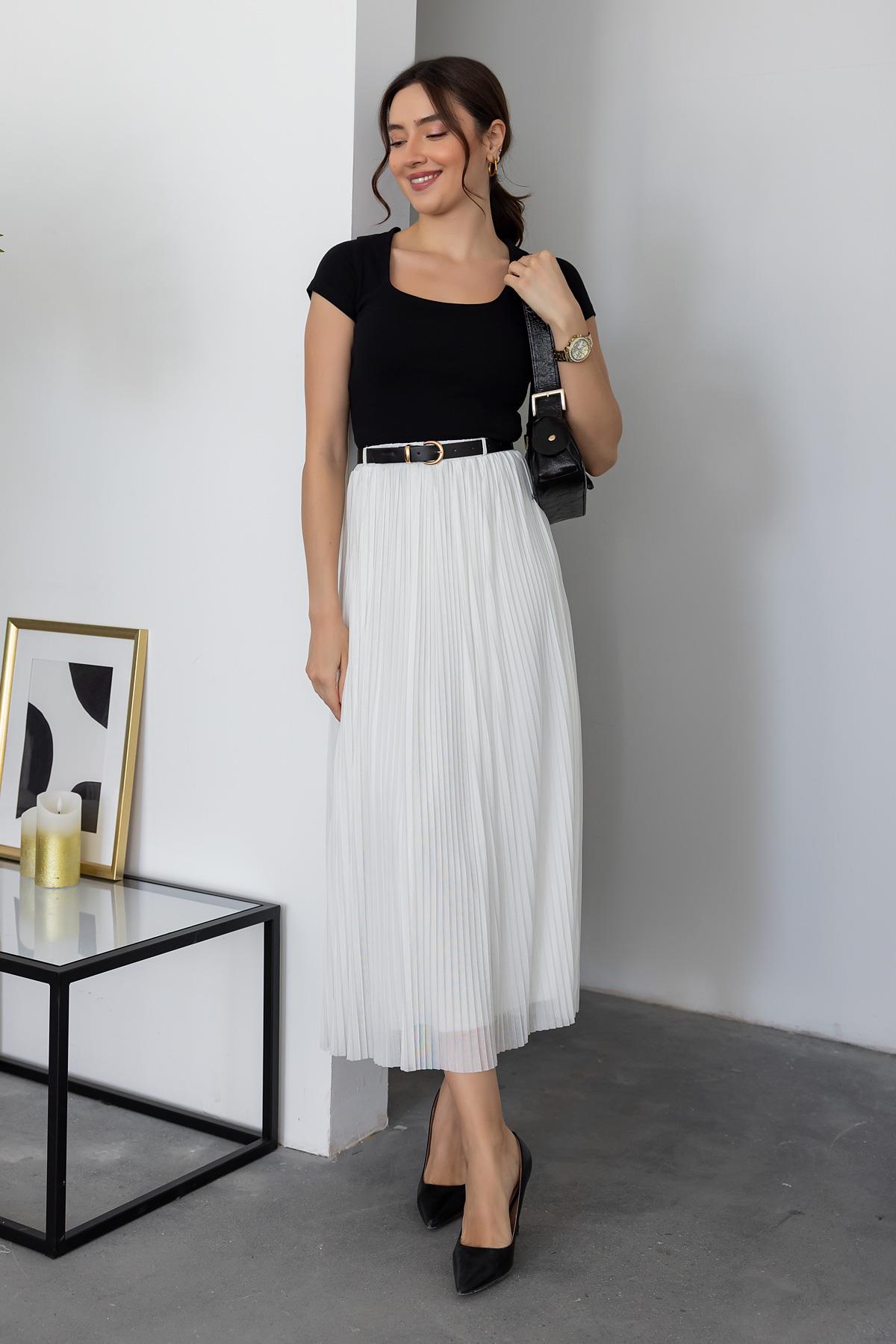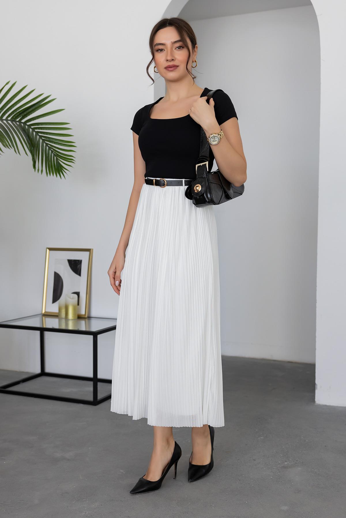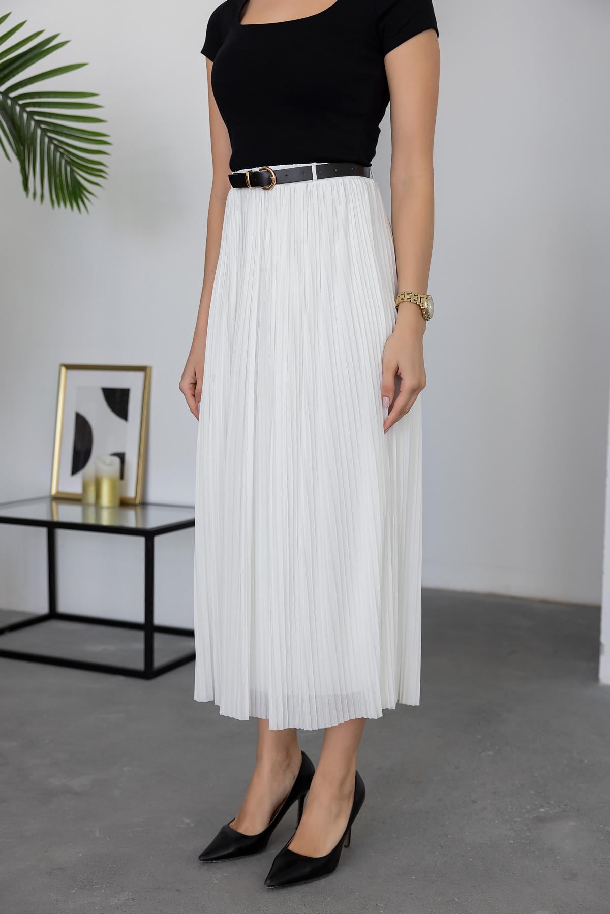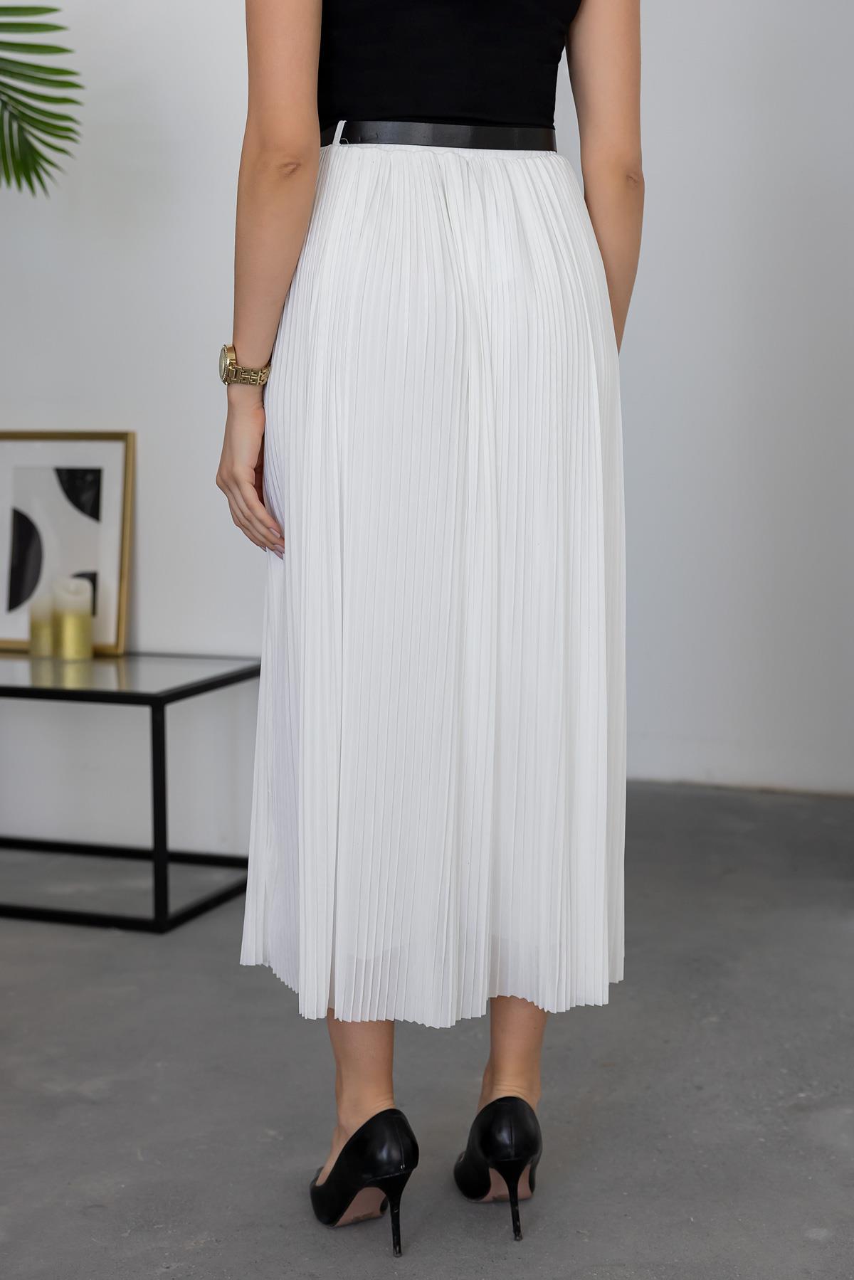 Piliseli Kemerli Etek - BEYAZ (BES103ETK0001101)