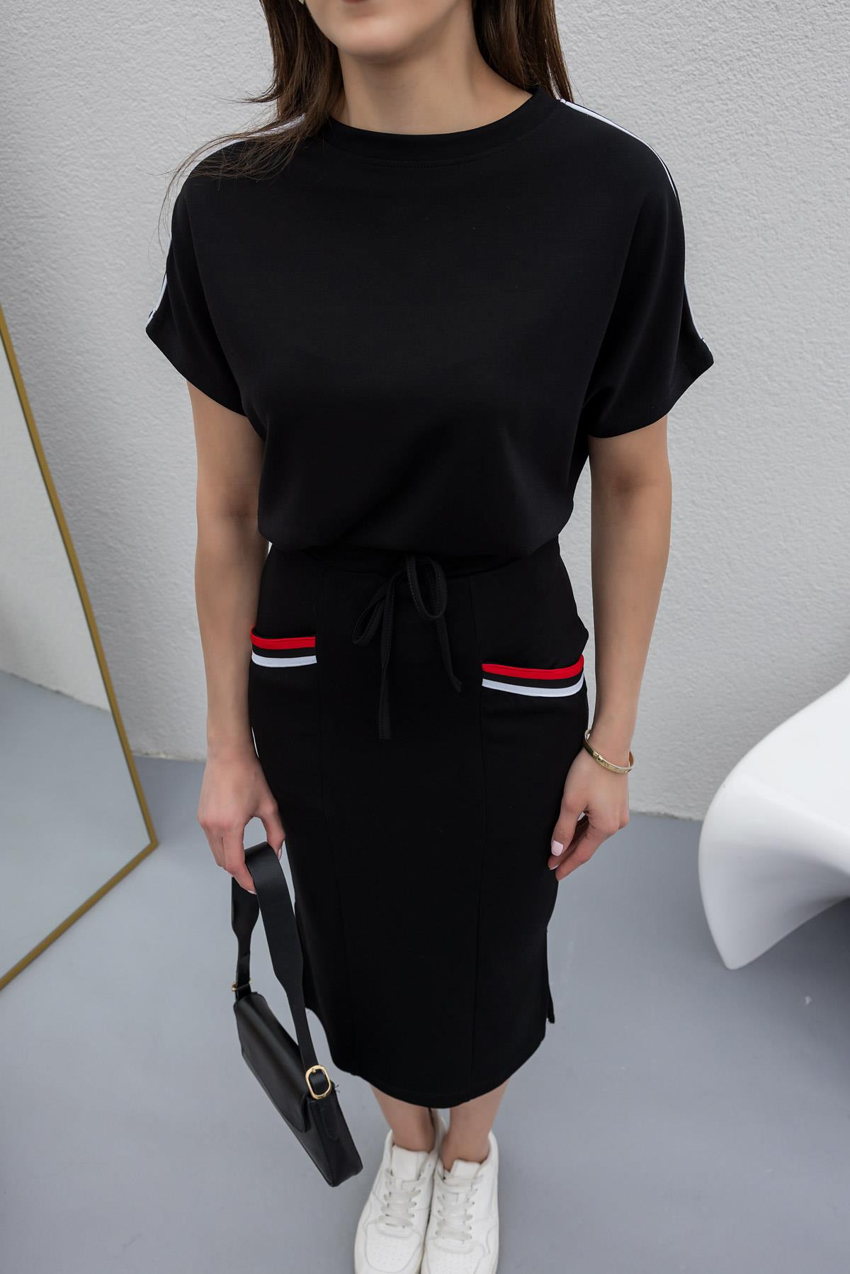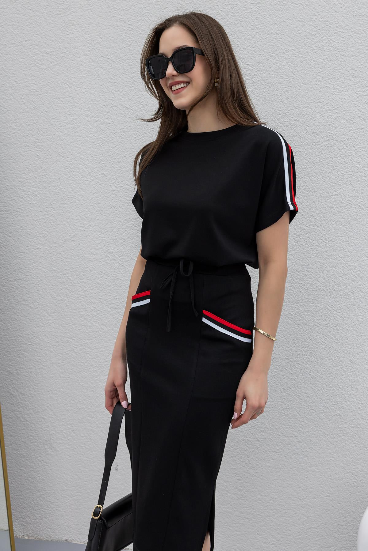 Şeritli Etek Bluz Takım - SİYAH (BES258TKM0001100)