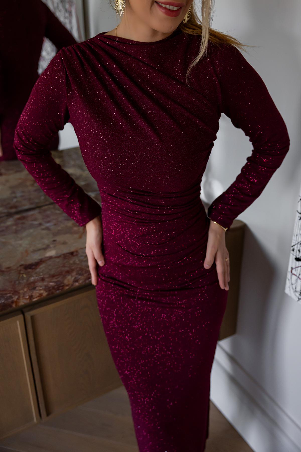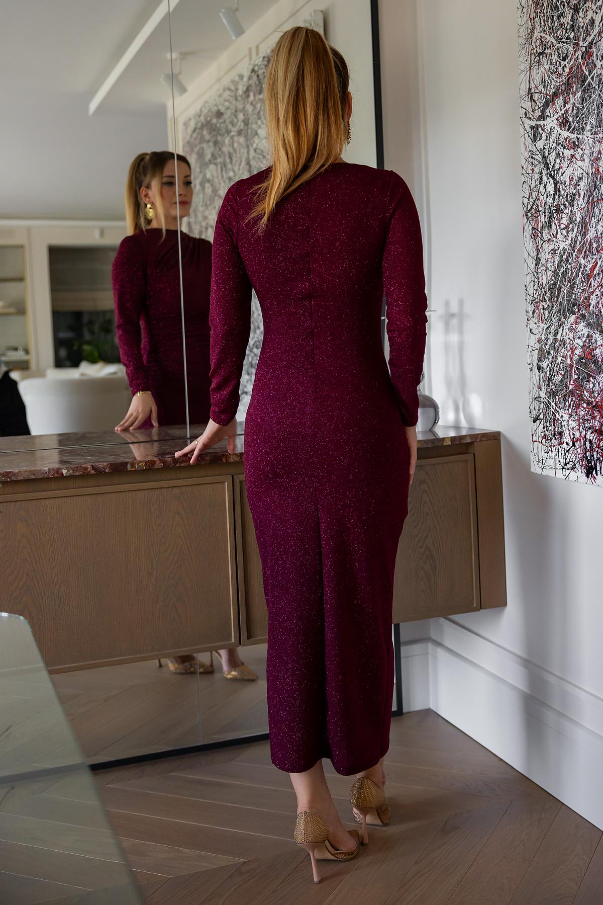 Simli Drapeli Elbise - BORDO (BFW065ELB0003121)