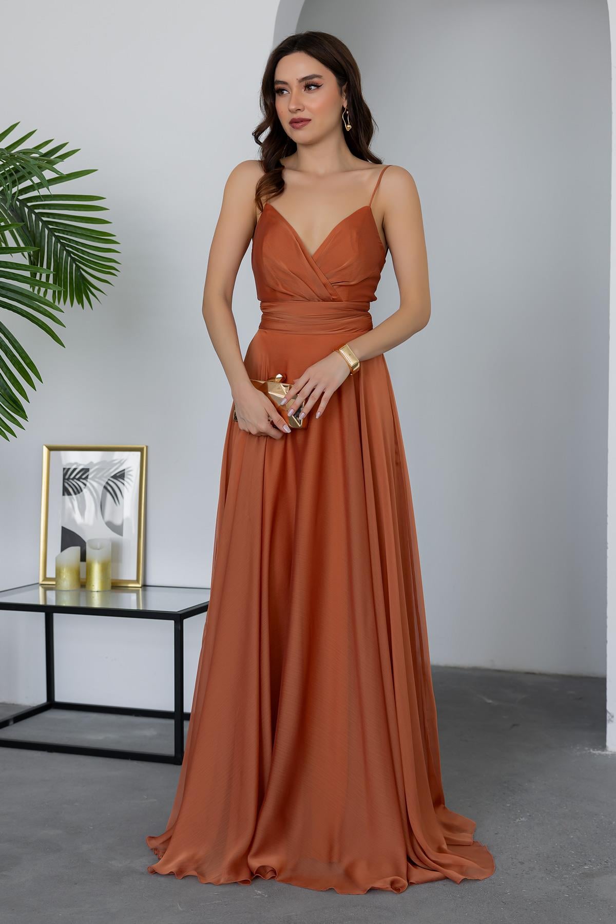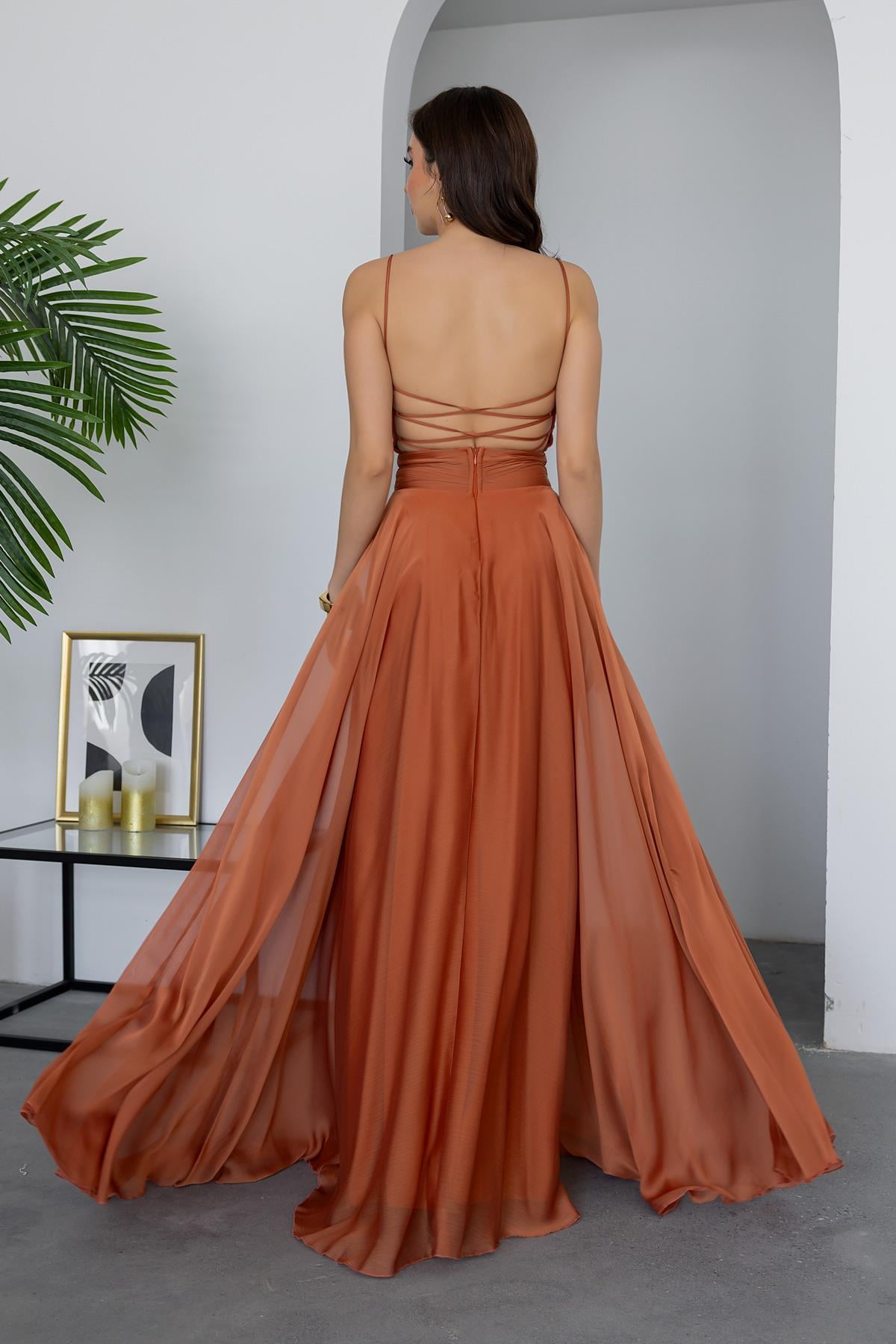 Sırt Çapraz Uzun Abiye - KİREMİT (BES669ABY0009148)