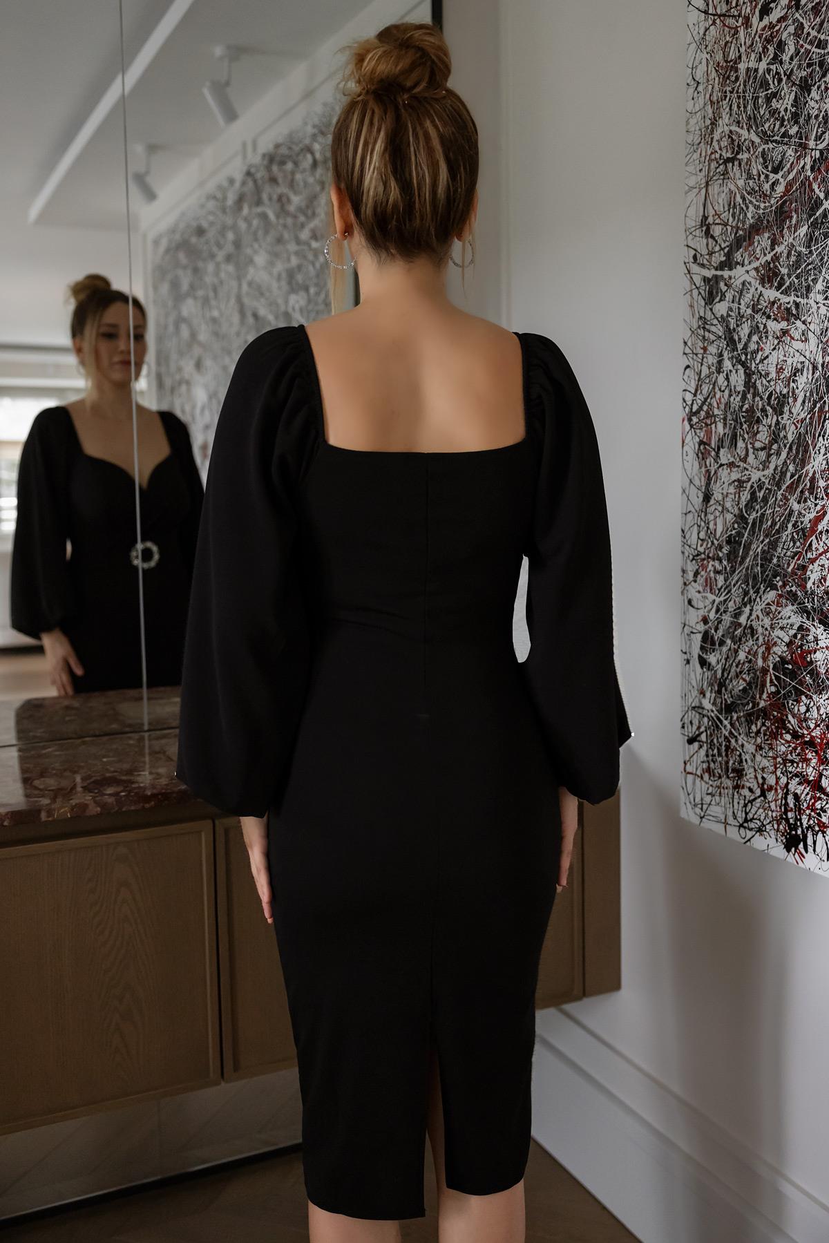 Taş Tokalı Elbise - SİYAH (BFW080ELB0001100)
