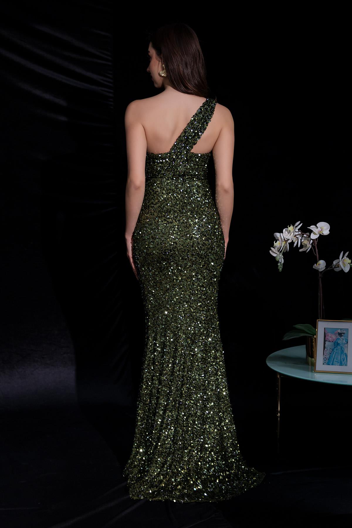 Tek Omuz Balık Abiye - HAKİ (BES008ABY0006106)