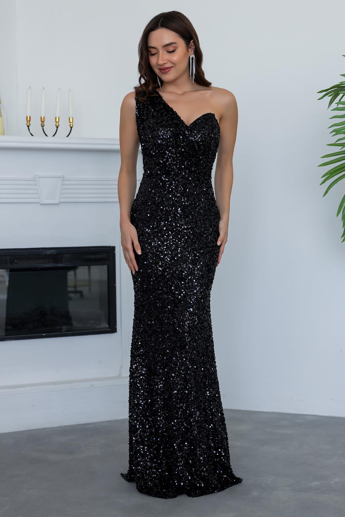 Tek Omuz Balık Abiye - SİYAH (BES008ABY0006100)