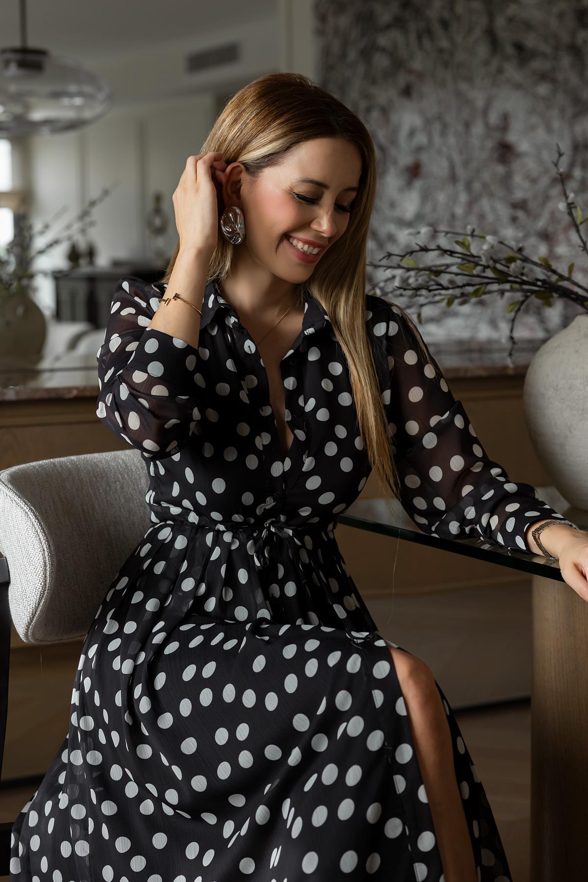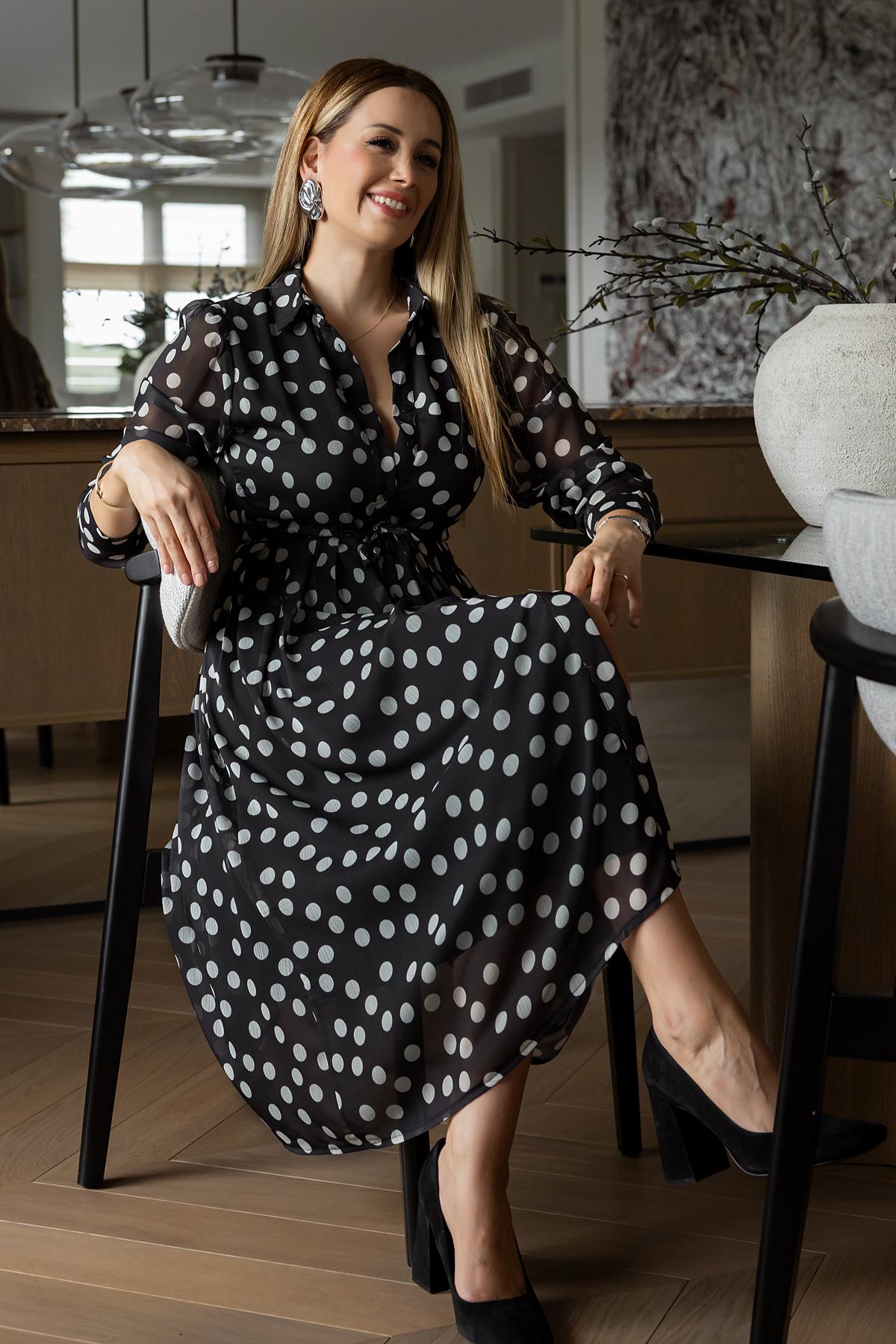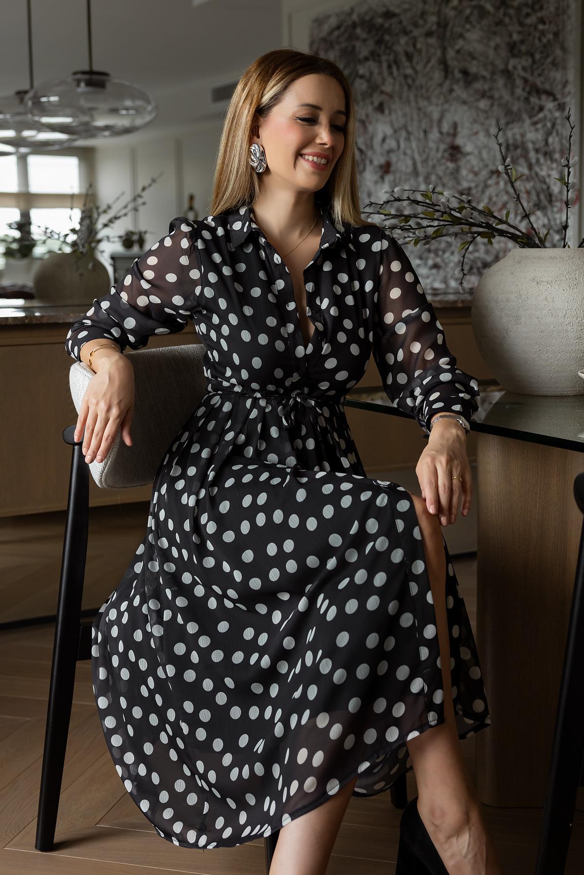 Tül Puantiyeli Elbise - SİYAH (BFW054ELB0001100)