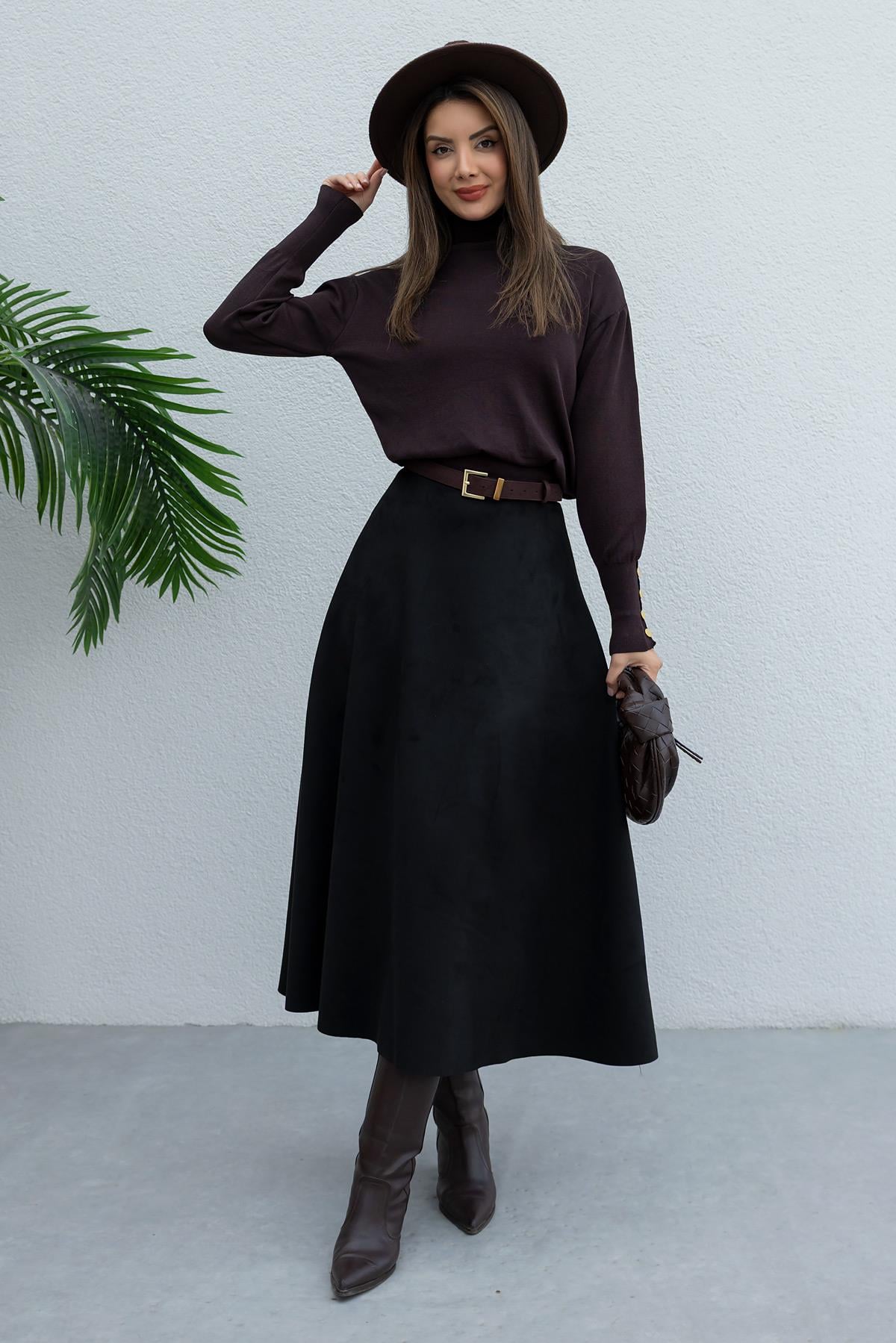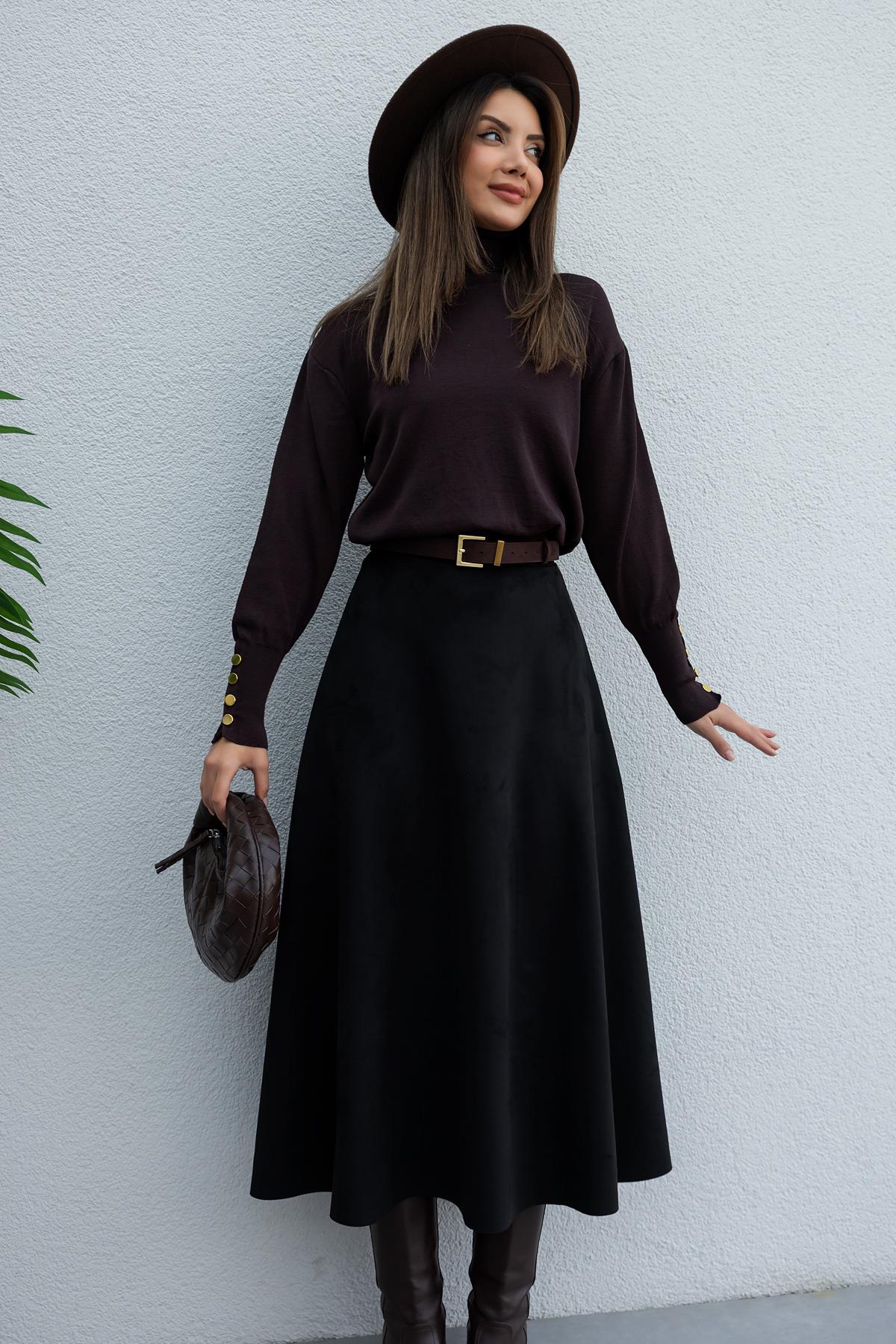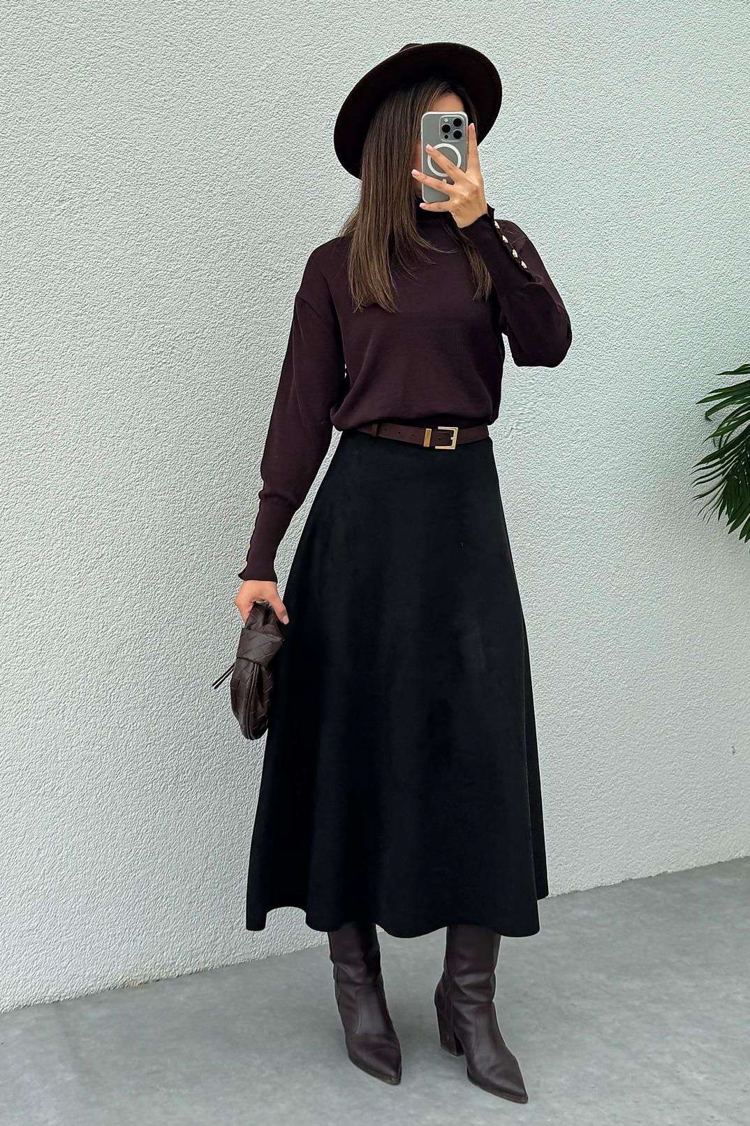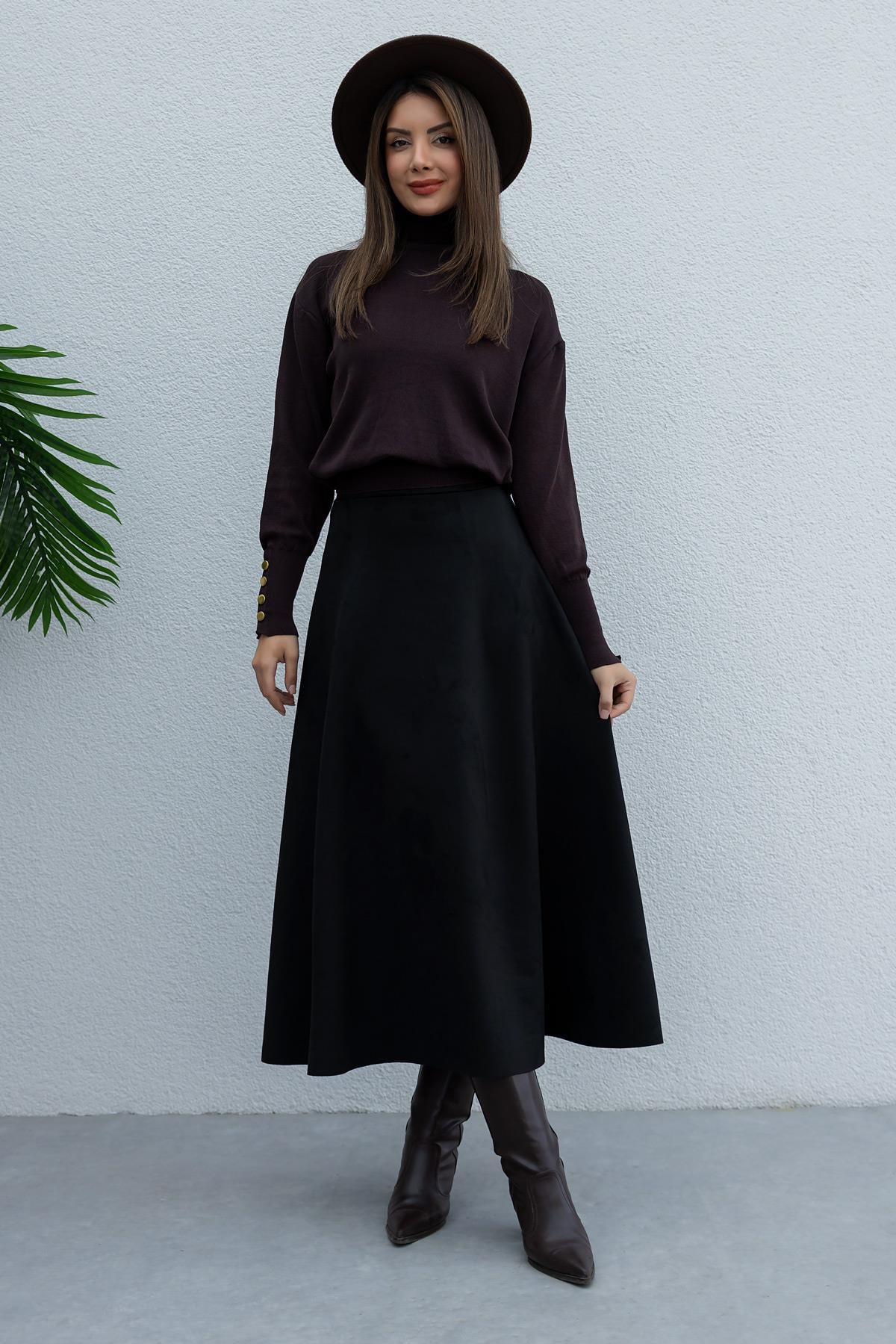 Uzun Süet Etek - SİYAH (BFW065ETK0001100)