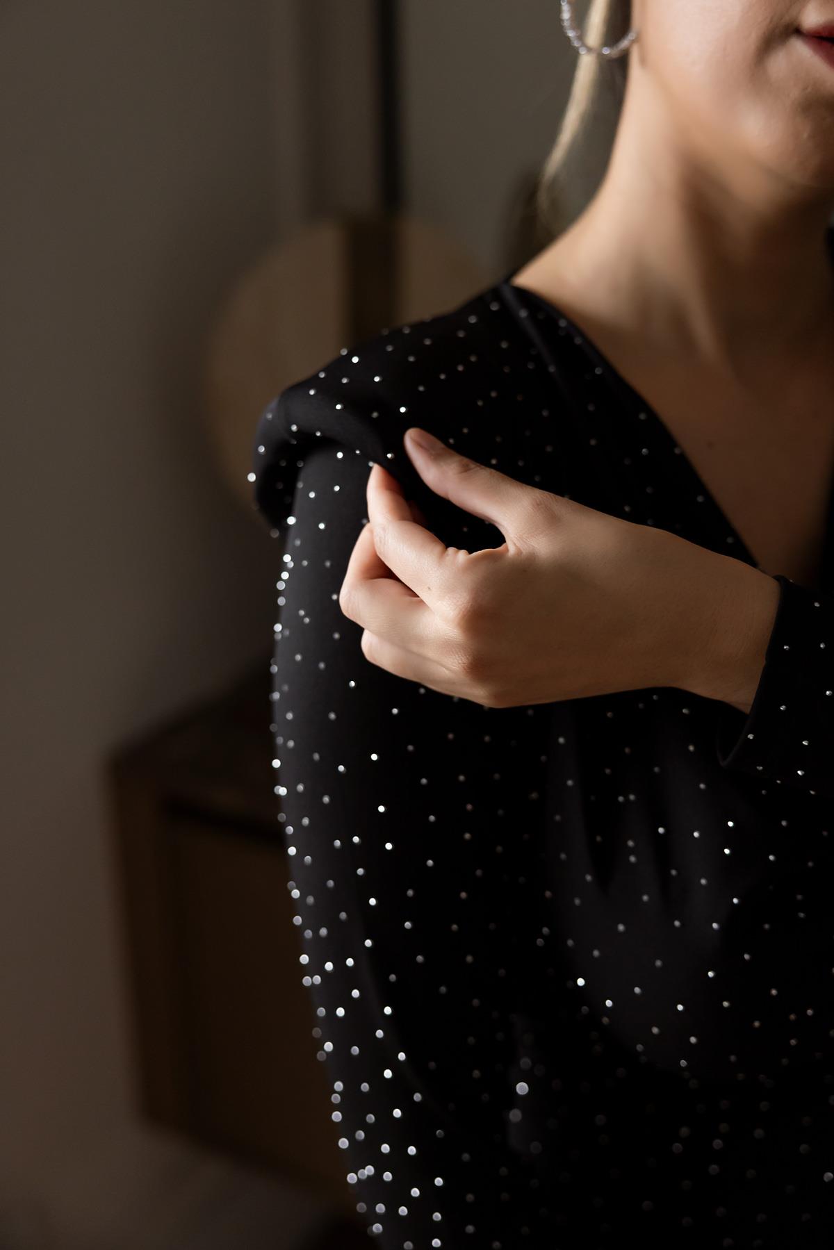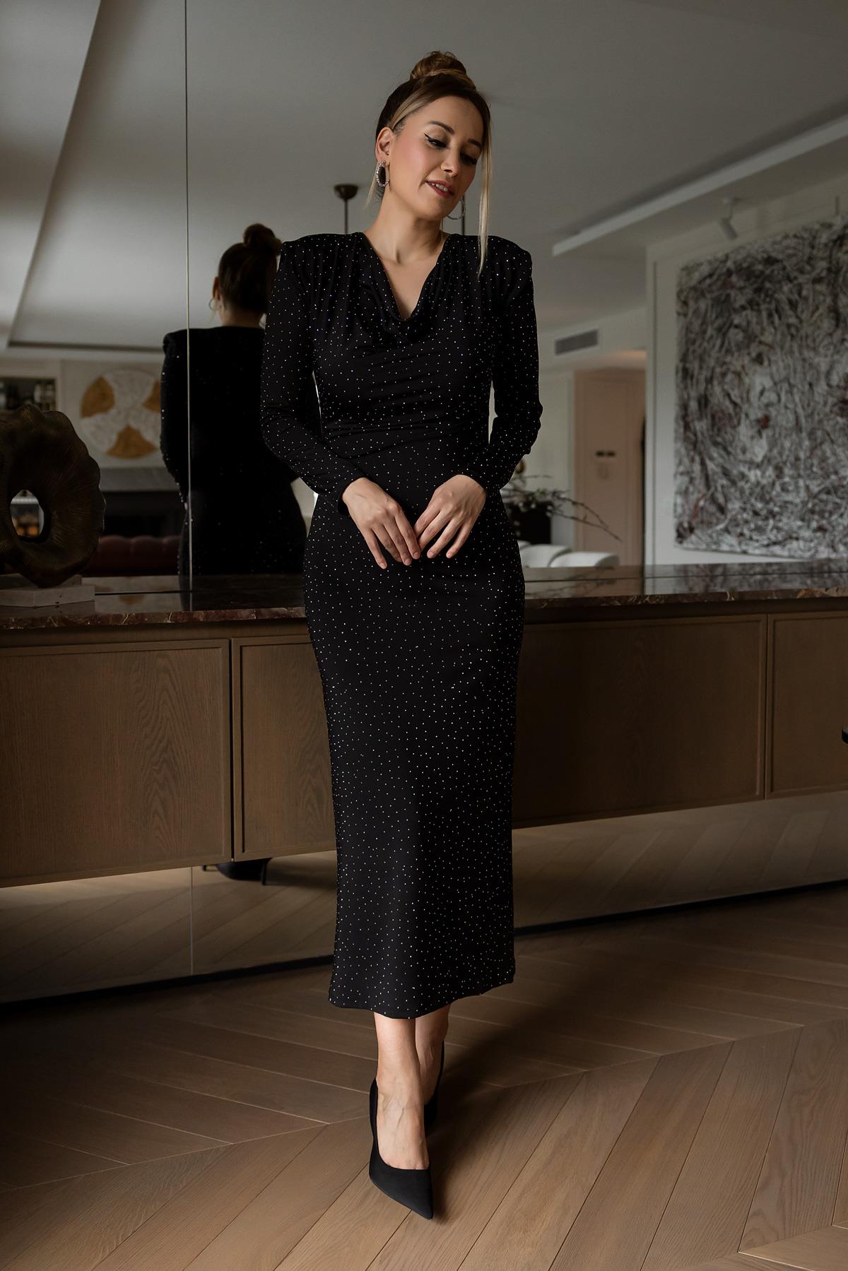 Vatkalı Işıltılı Elbise - SİYAH (BFW143ELB0006100)