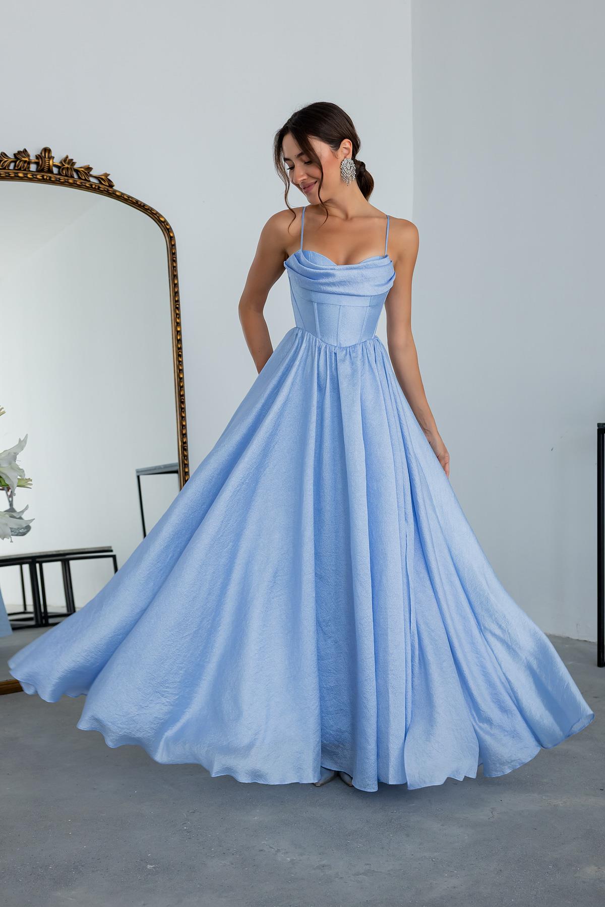 Yırtmaçlı Saten Uzun Abiye - BEBE MAVİSİ (BES662ABY0009130)