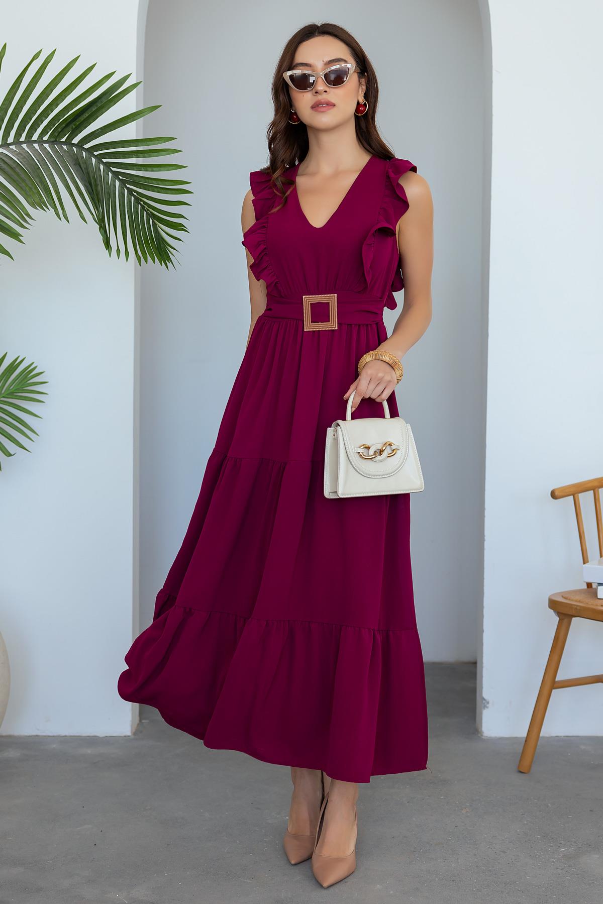 Yırtmaçlı Uzun Elbise - BORDO (BES065ELB0011121)