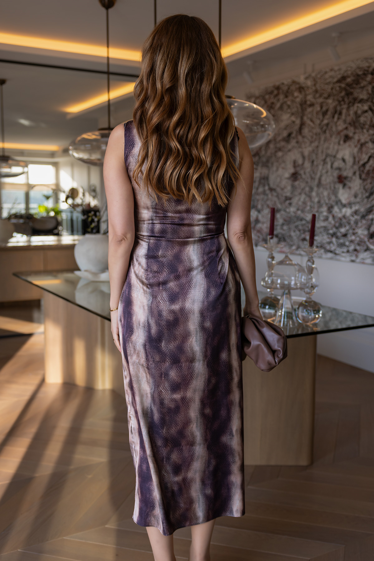 Gün içinde loafer ya da topuklu bir ayakkabıyla daha net bir çizgi yakalayabilir, akşam planında ise küçük bir çanta ve belirgin küpelerle görünümü bir anda yükseltebilirsin. Drape detayı sayesinde aksesuarı az tutsan bile elbisenin kendi formu zaten işi bitiriyor.