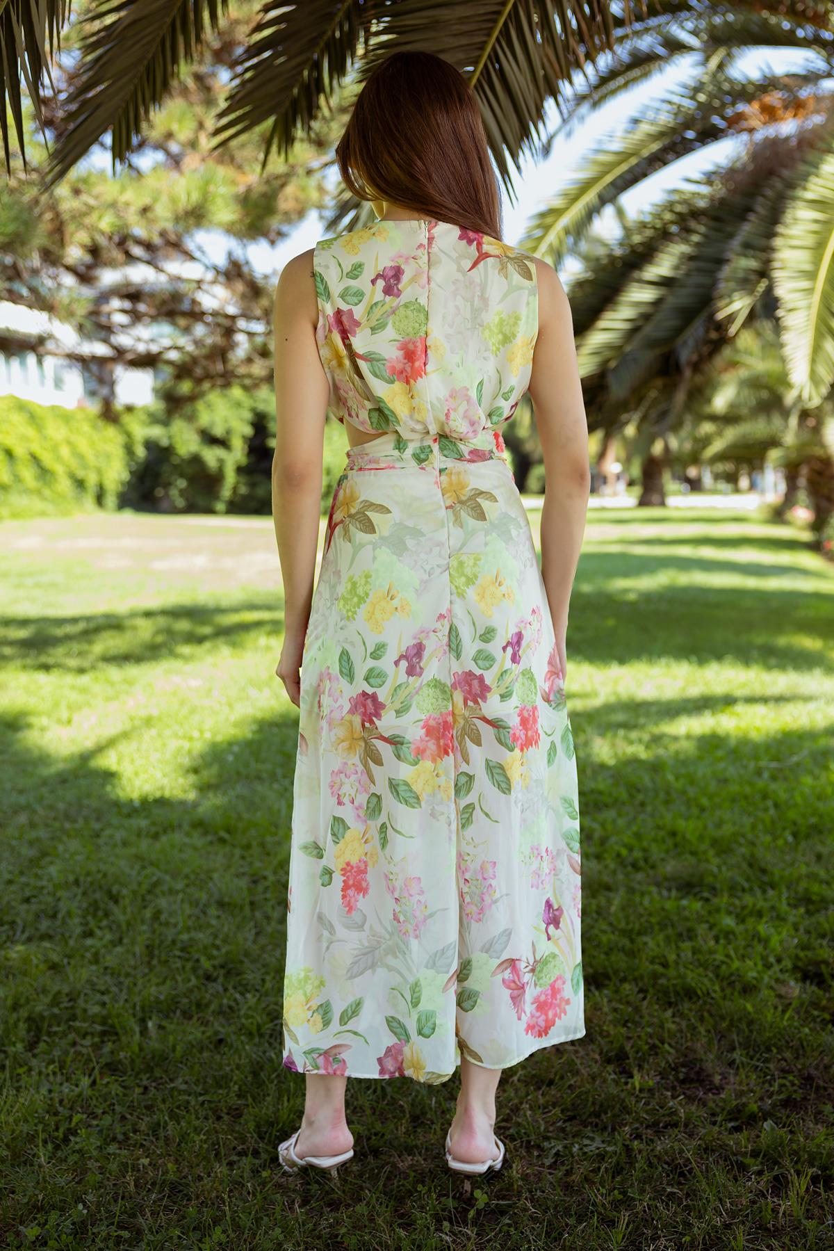 Bel Dekolteli Şifon Elbise Ürün 36-42 bedene kadar uyumlu, bel dekolteli, gizli fermuar kapamalı, astarlı, yırtmaçlı, maxi boy elbise olarak tasarlanmıştır. Ürünün uzunluğu 152 cm'dir. (1-3 cm arası değişiklik gösterebilir.) Ürünün yırtmaç uzunluğu 51 cm'dir (1-3 cm arası değişiklik gösterebilir.) Kumaş türü: Poliamid-Pamuk