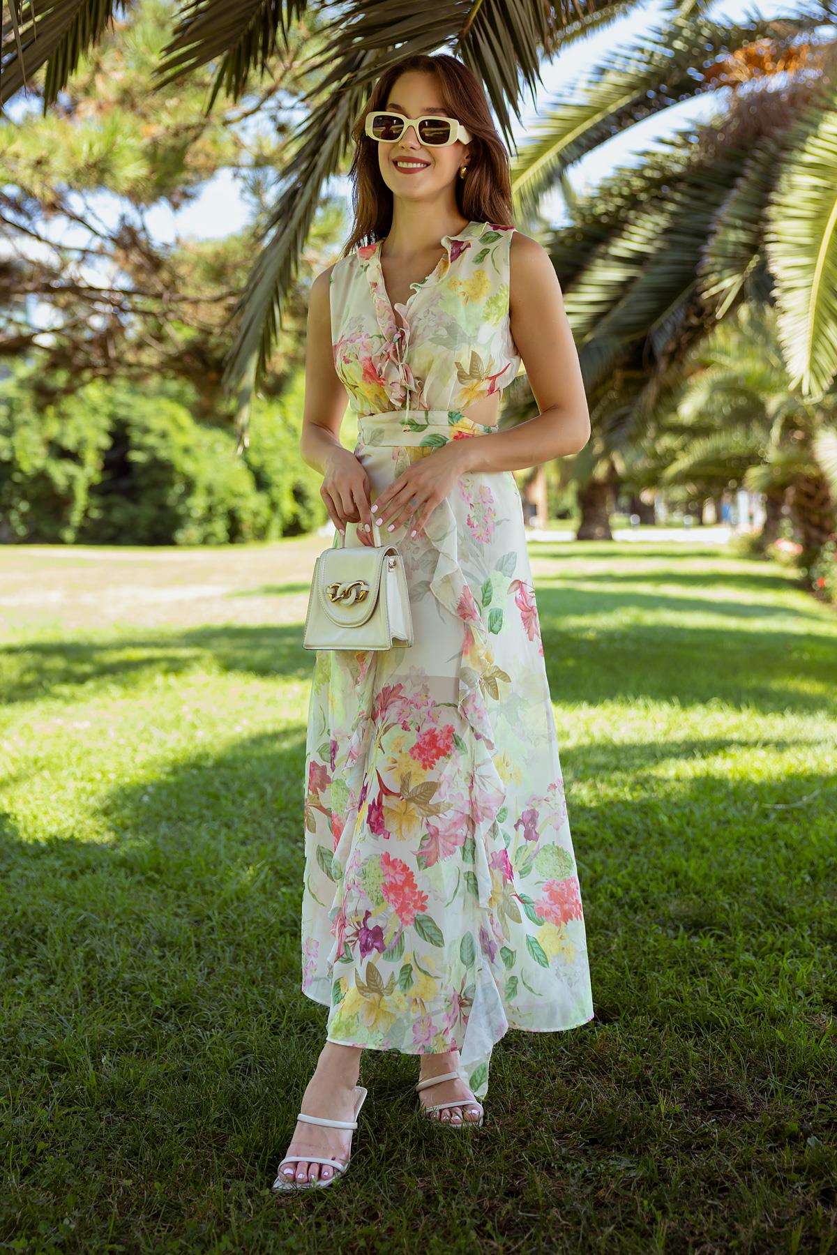 Bel Dekolteli Şifon Elbise - KREM (BES531ELB0071131)