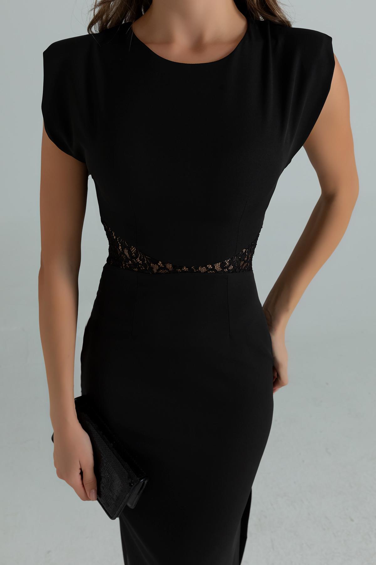 Bel Güpür Vatkalı Elbise - SİYAH (BES005ELB0005100)