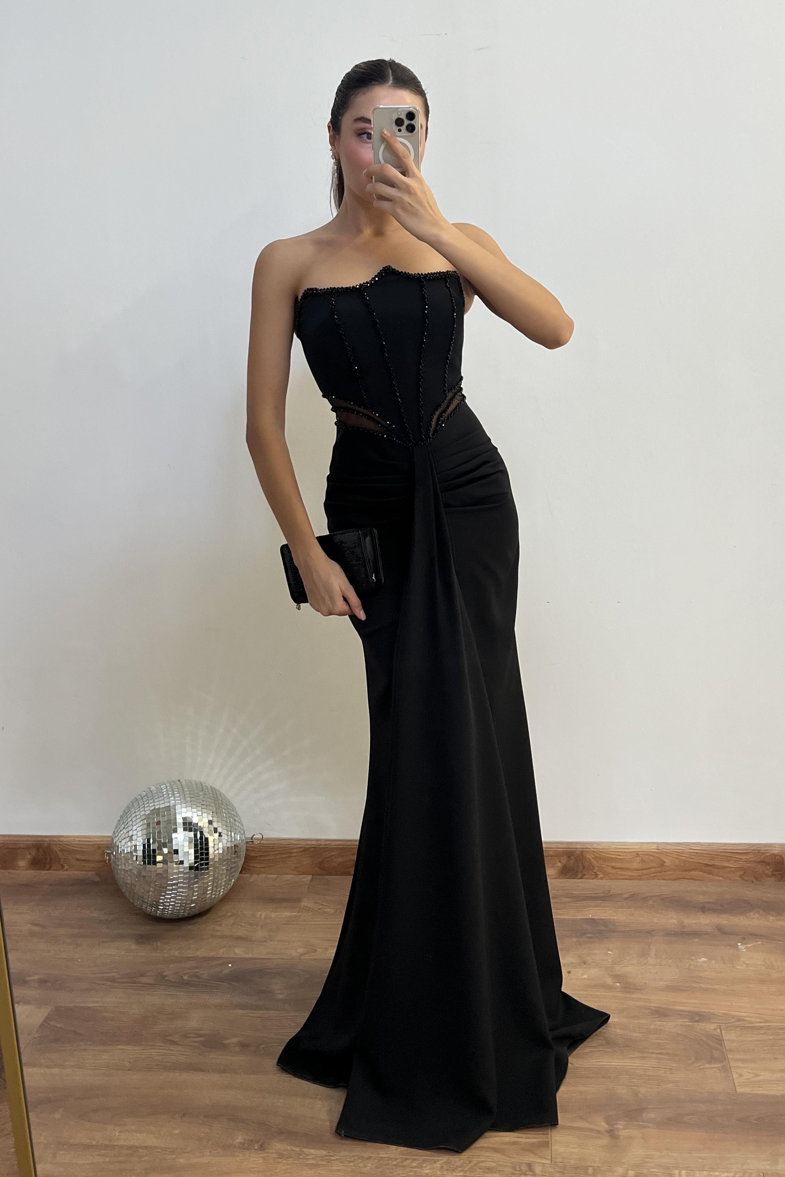 Bel Transparan İşlemeli Abiye - SİYAH (BES651ABY0006100)