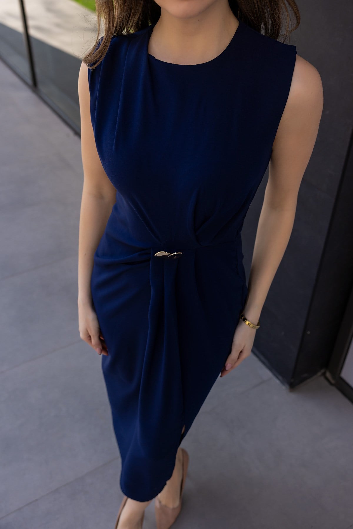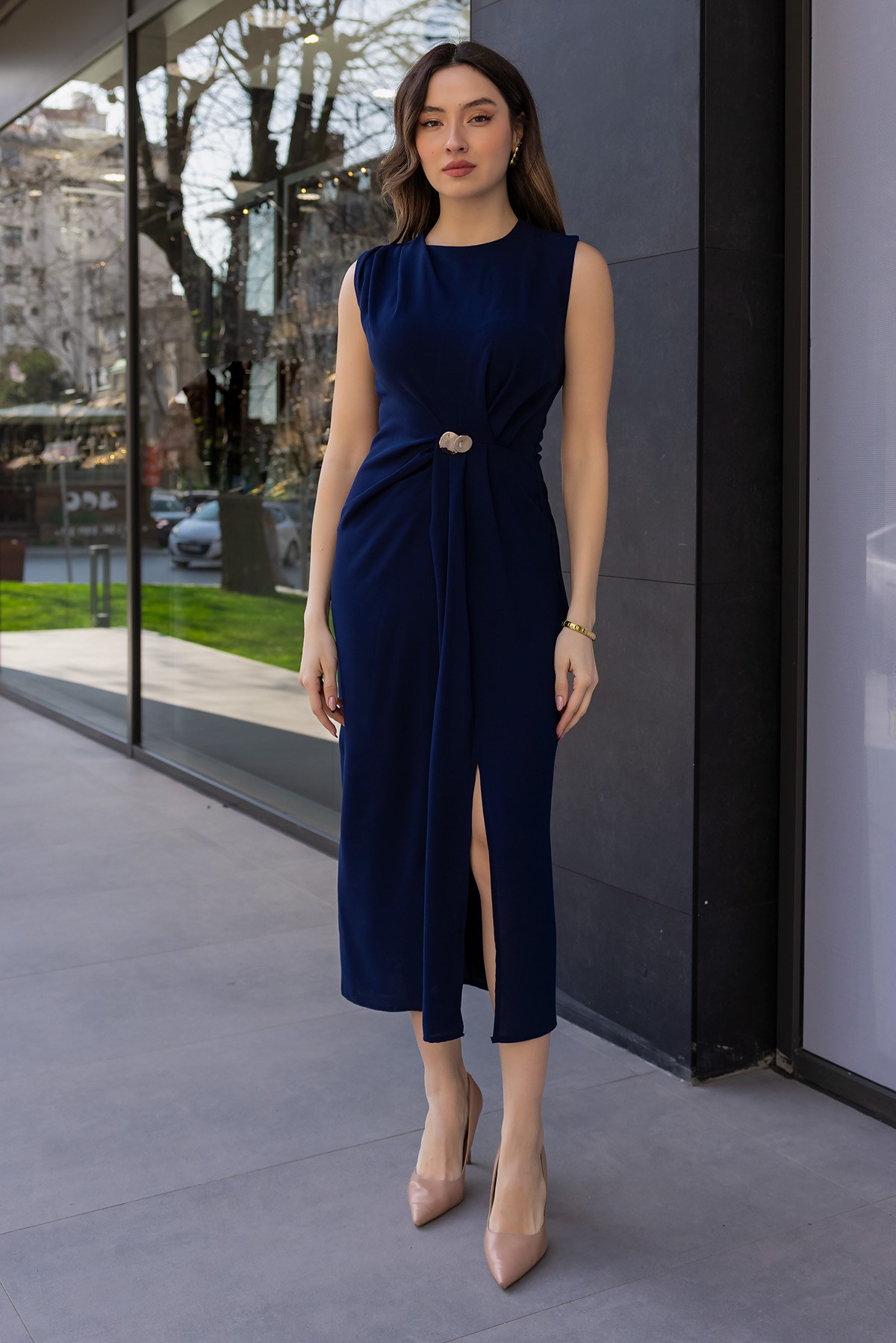 Drapeli Broş Aksesuarlı Elbise - LACİVERT (BFW531ELB0031110)