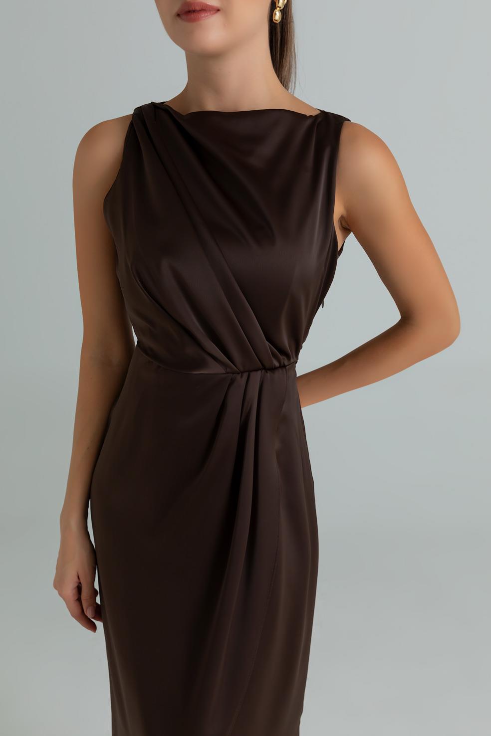 Drapeli Saten Anvelop Elbise - KAHVERENGİ (BES699ELB0004112)