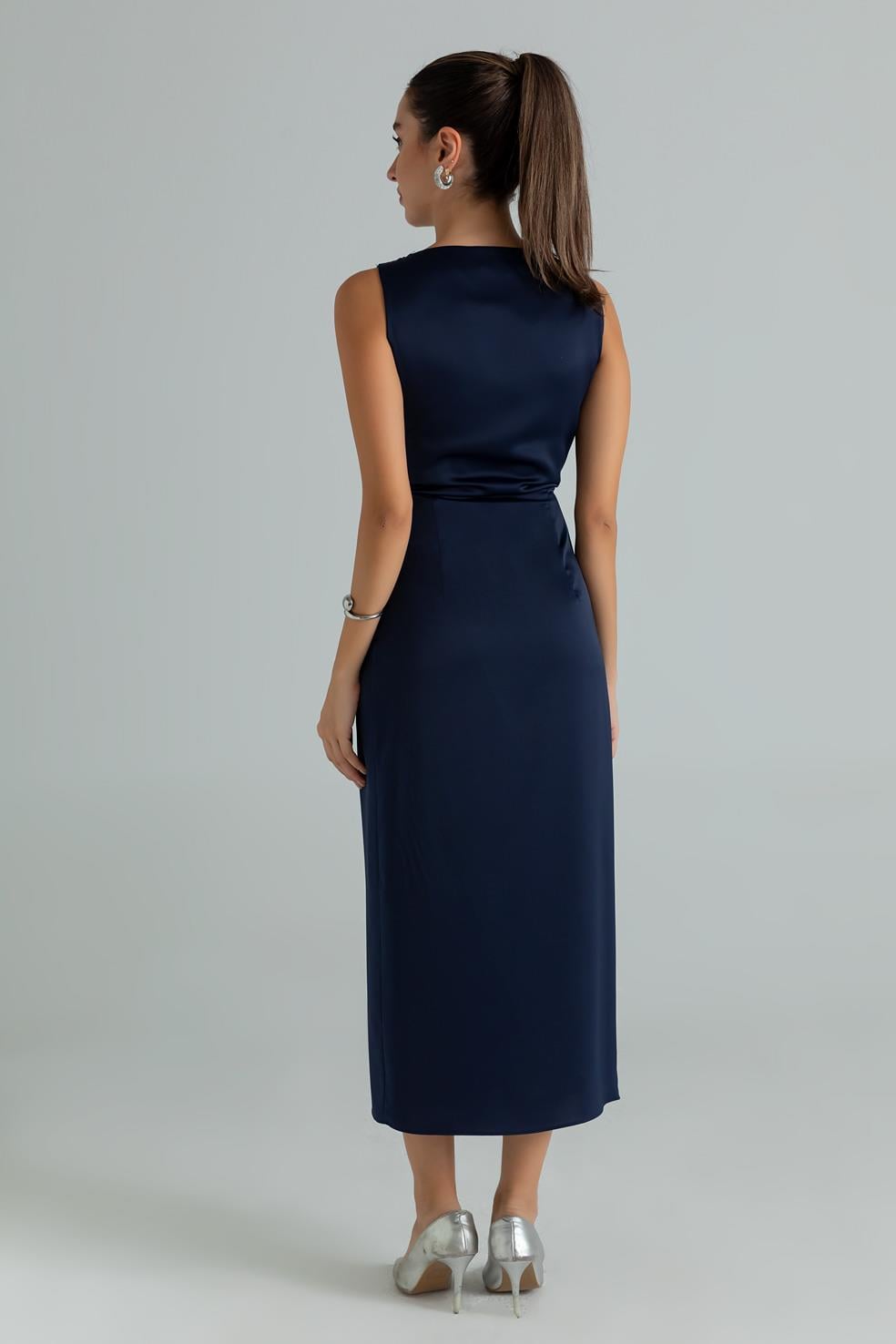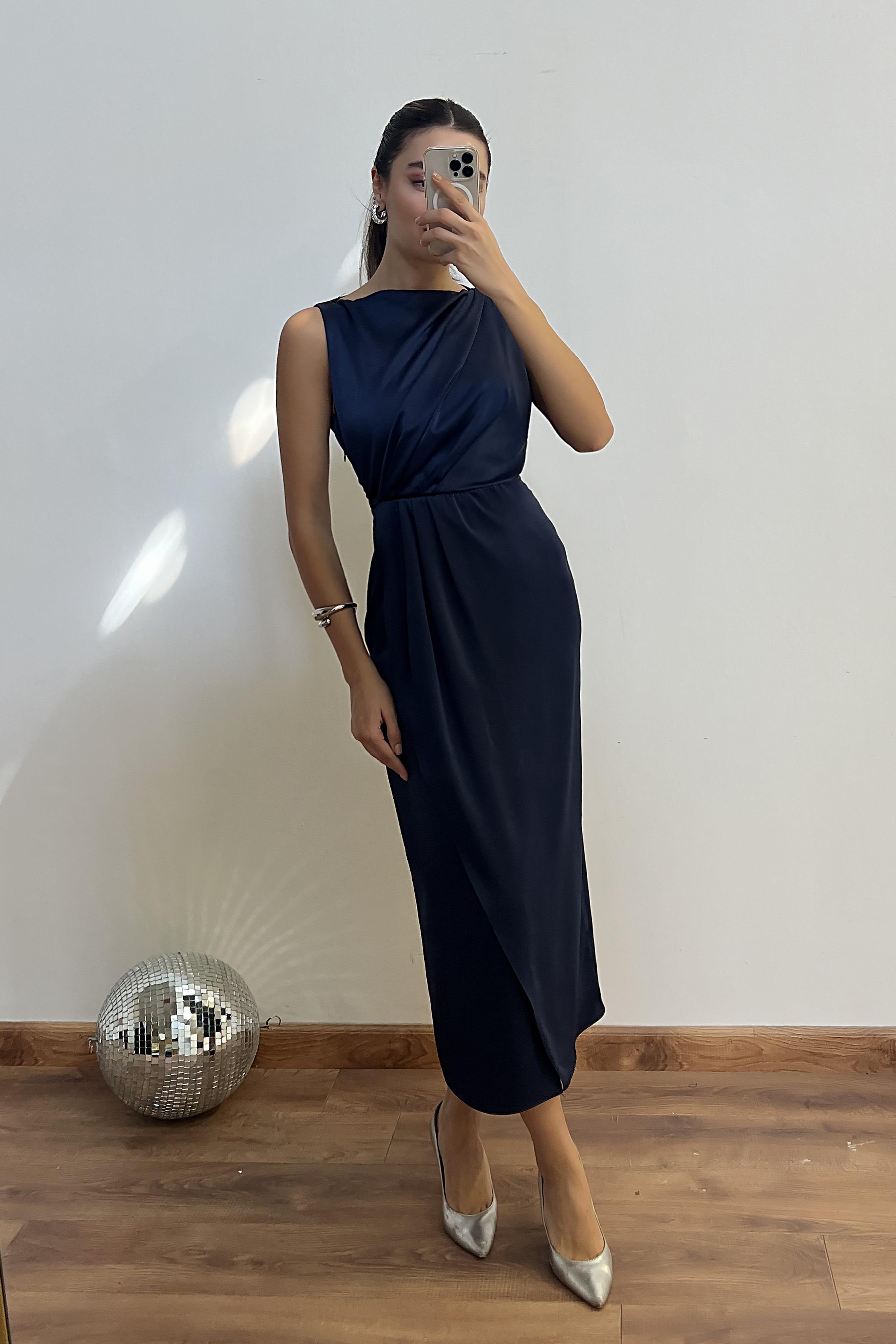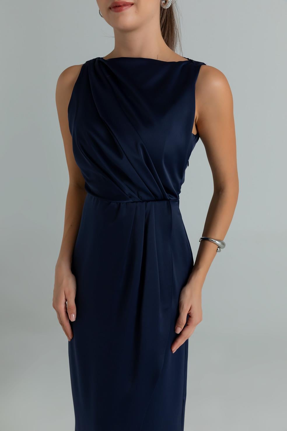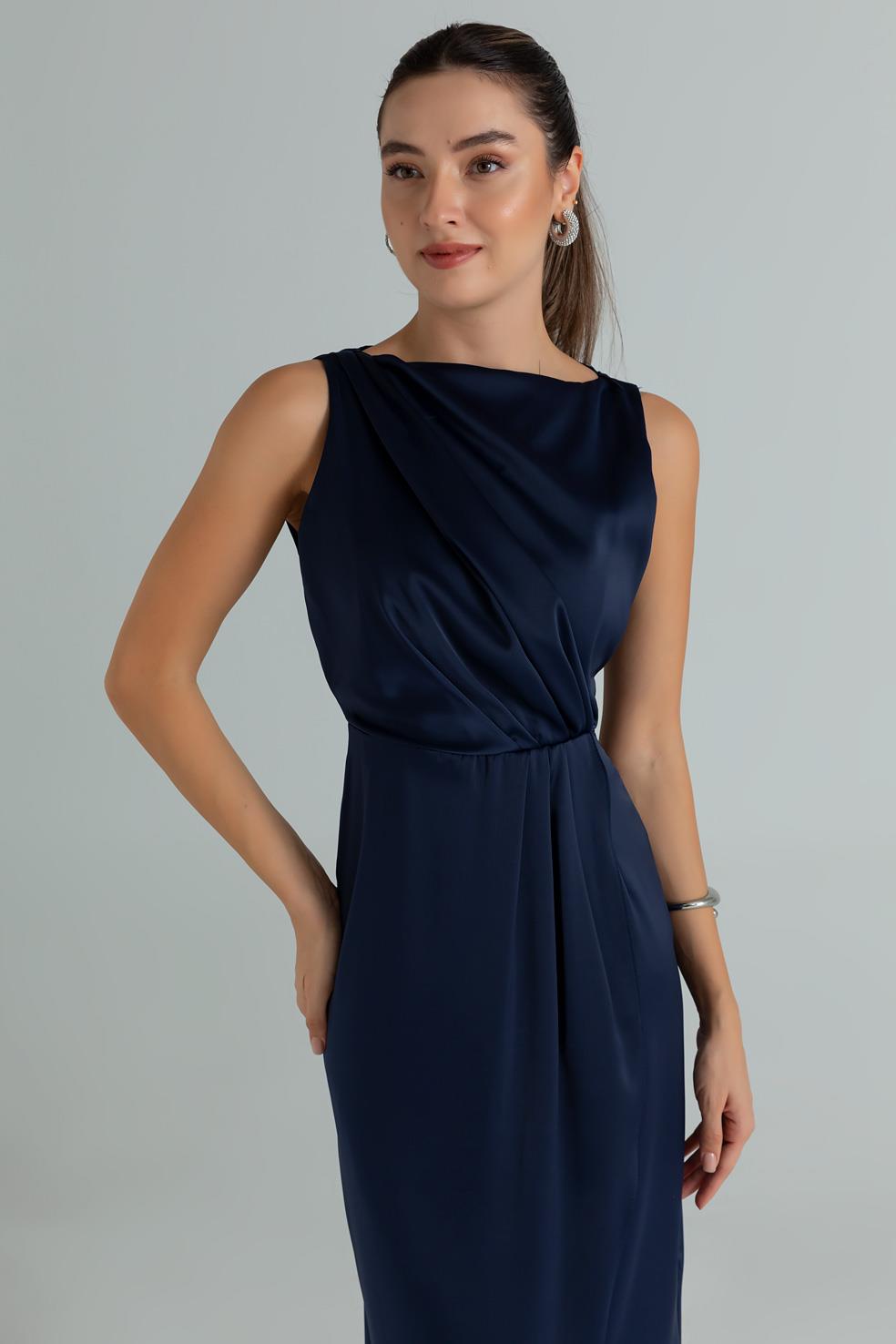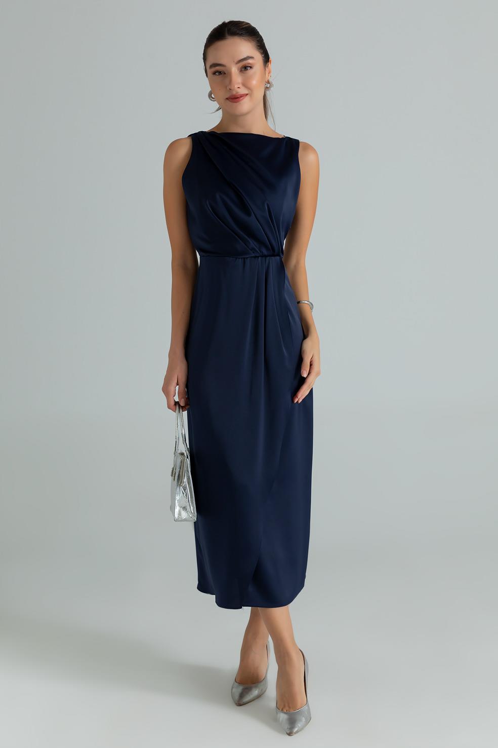 Drapeli Saten Anvelop Elbise - LACİVERT (BES699ELB0004110)