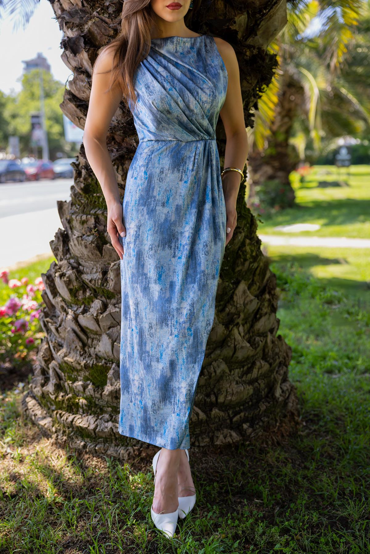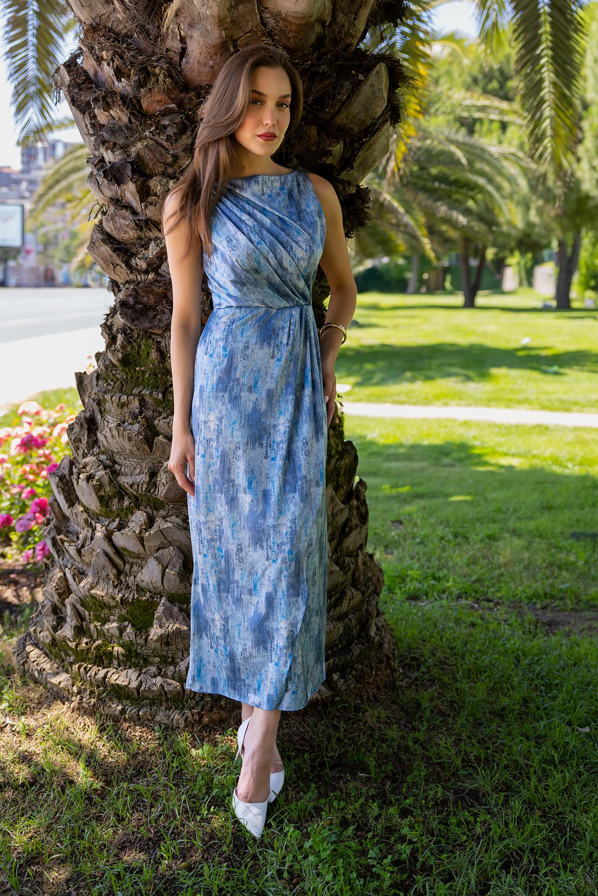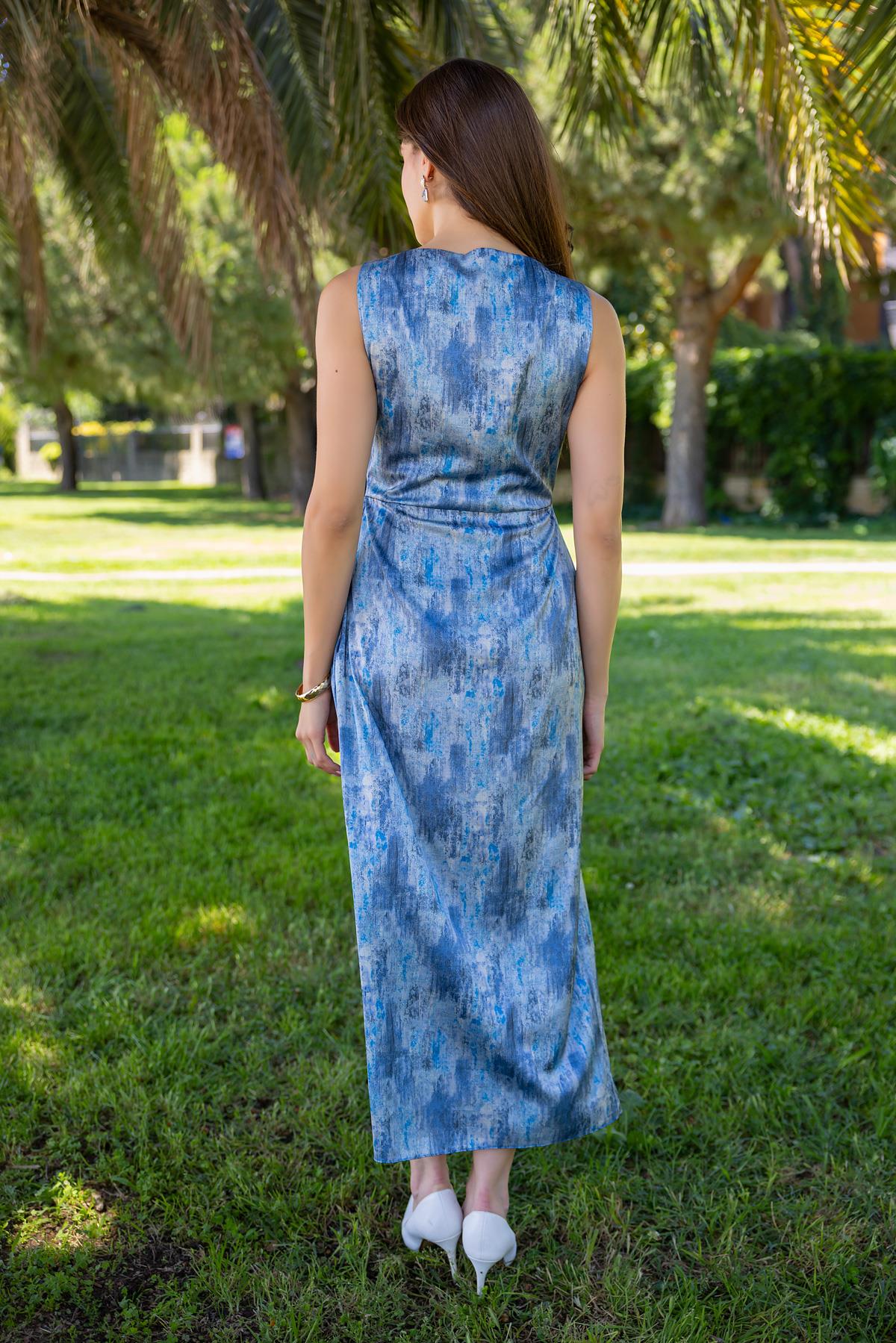 Drapeli Saten Elbise - MAVİ (BES683ELB0002104)