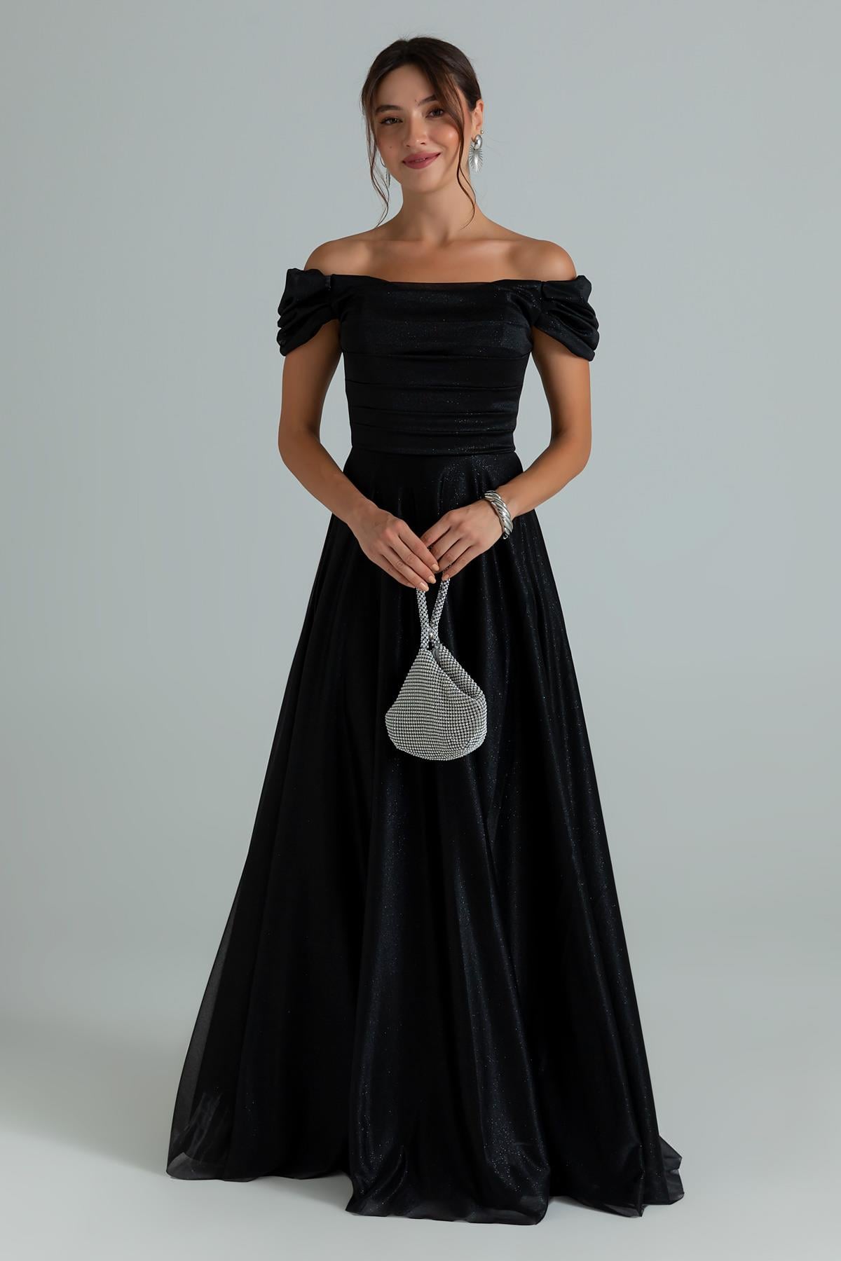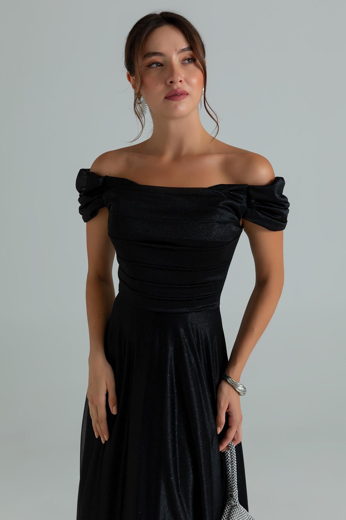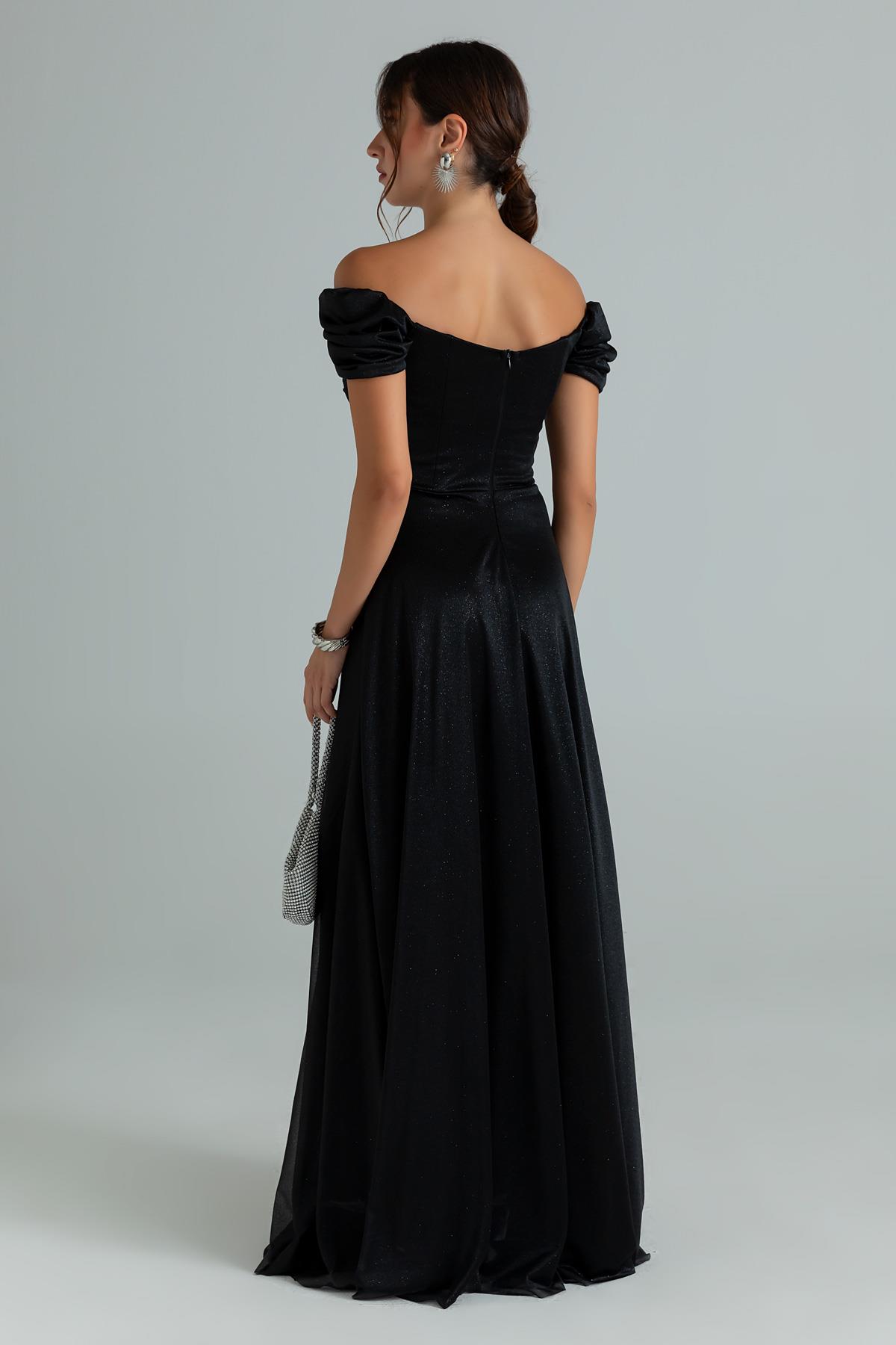 Drapeli Simli Uzun Abiye - SİYAH (BES686ABY0004100)