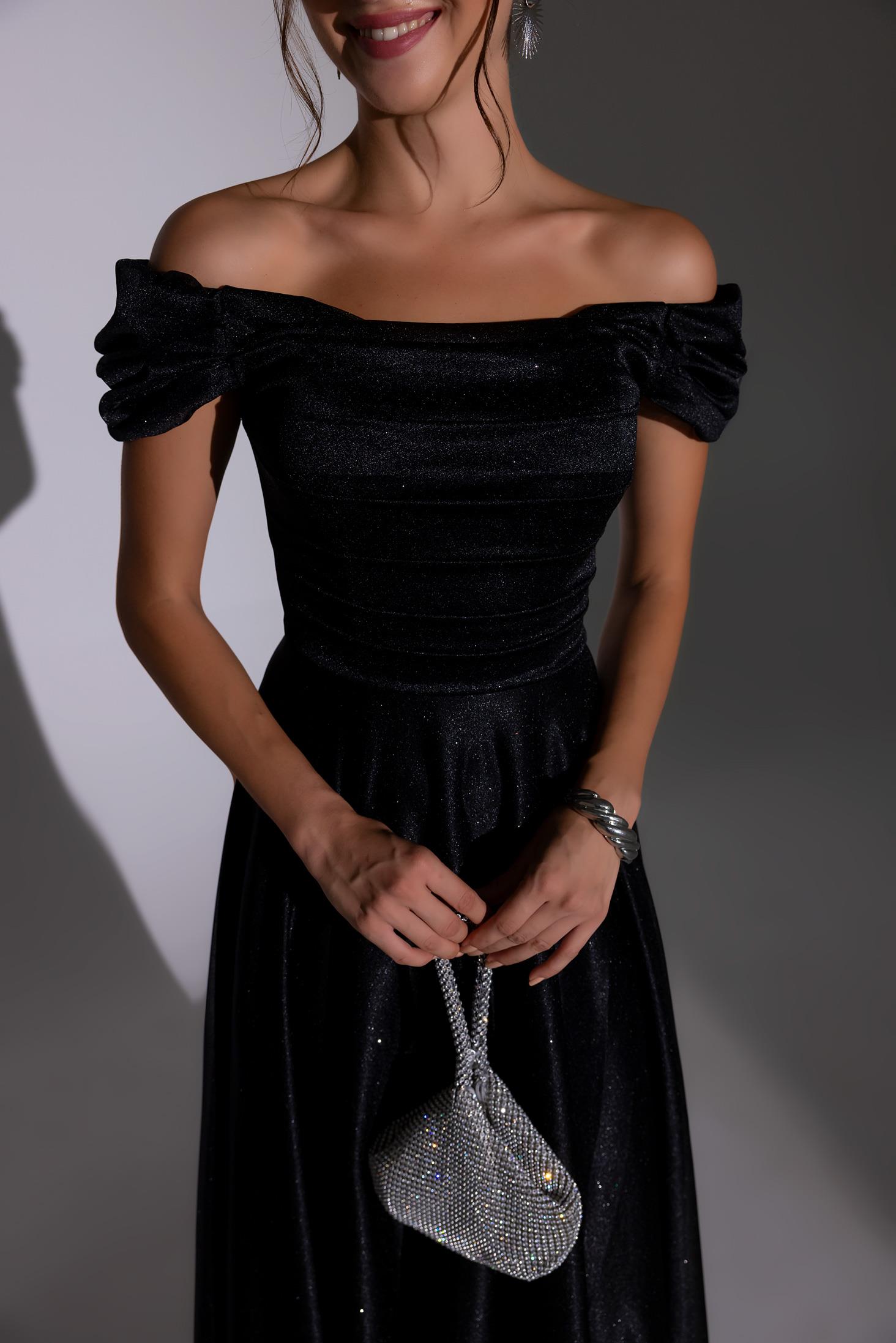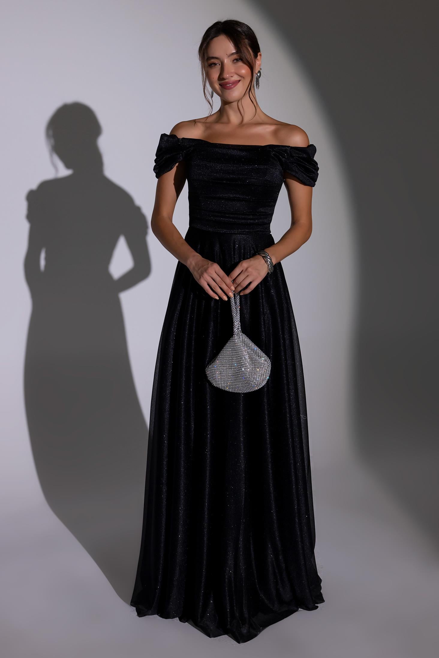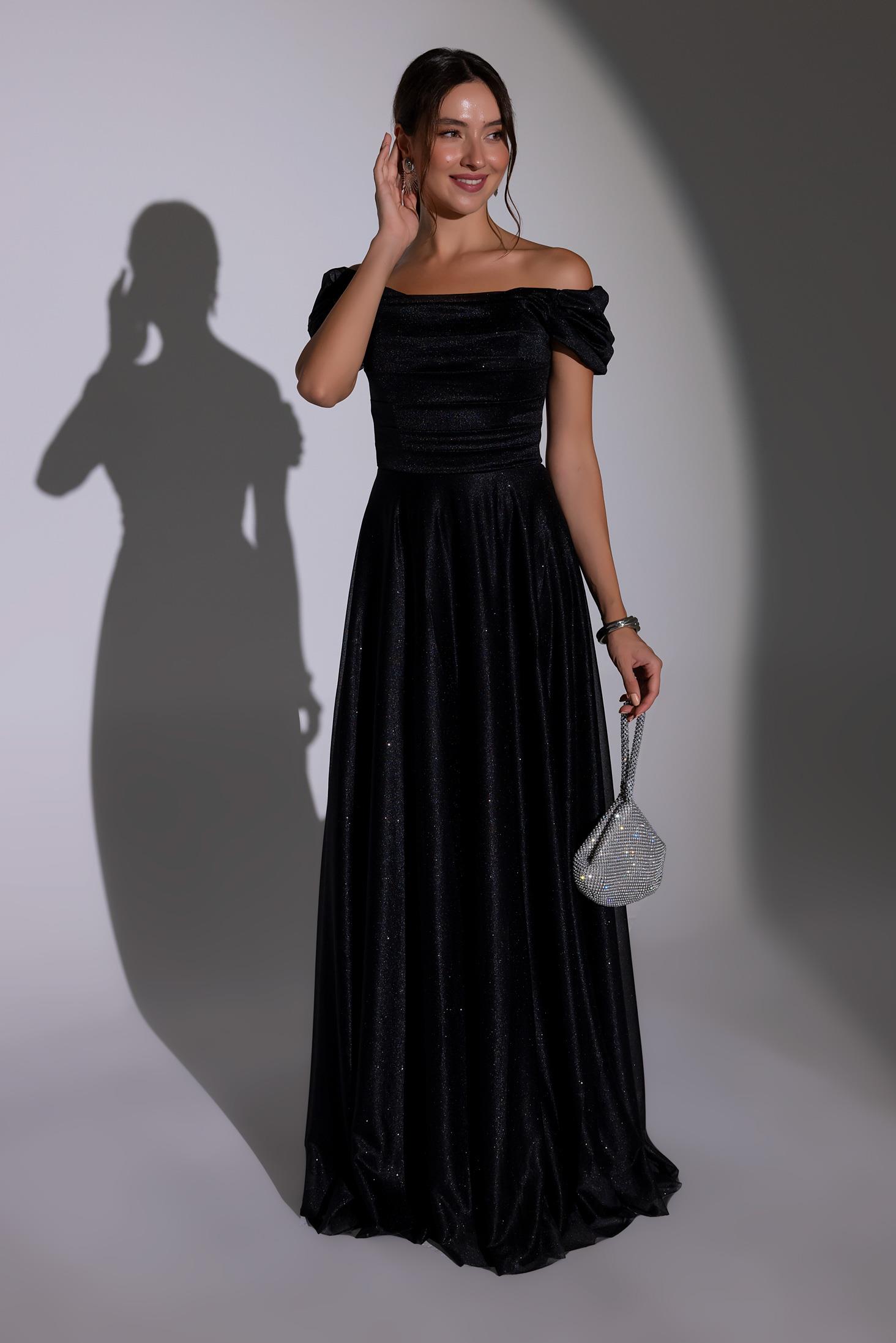 Drapeli Simli Uzun Abiye - SİYAH (BES686ABY0004100)