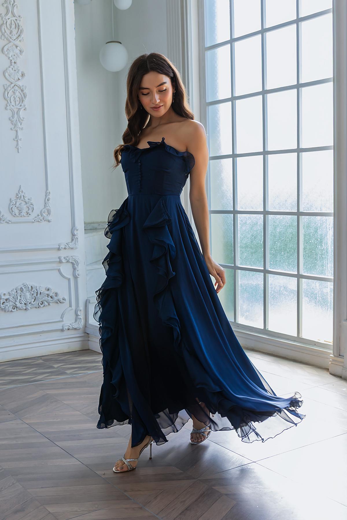 Fırfırlı Uzun Abiye - LACİVERT (BDS253ABY0002110)