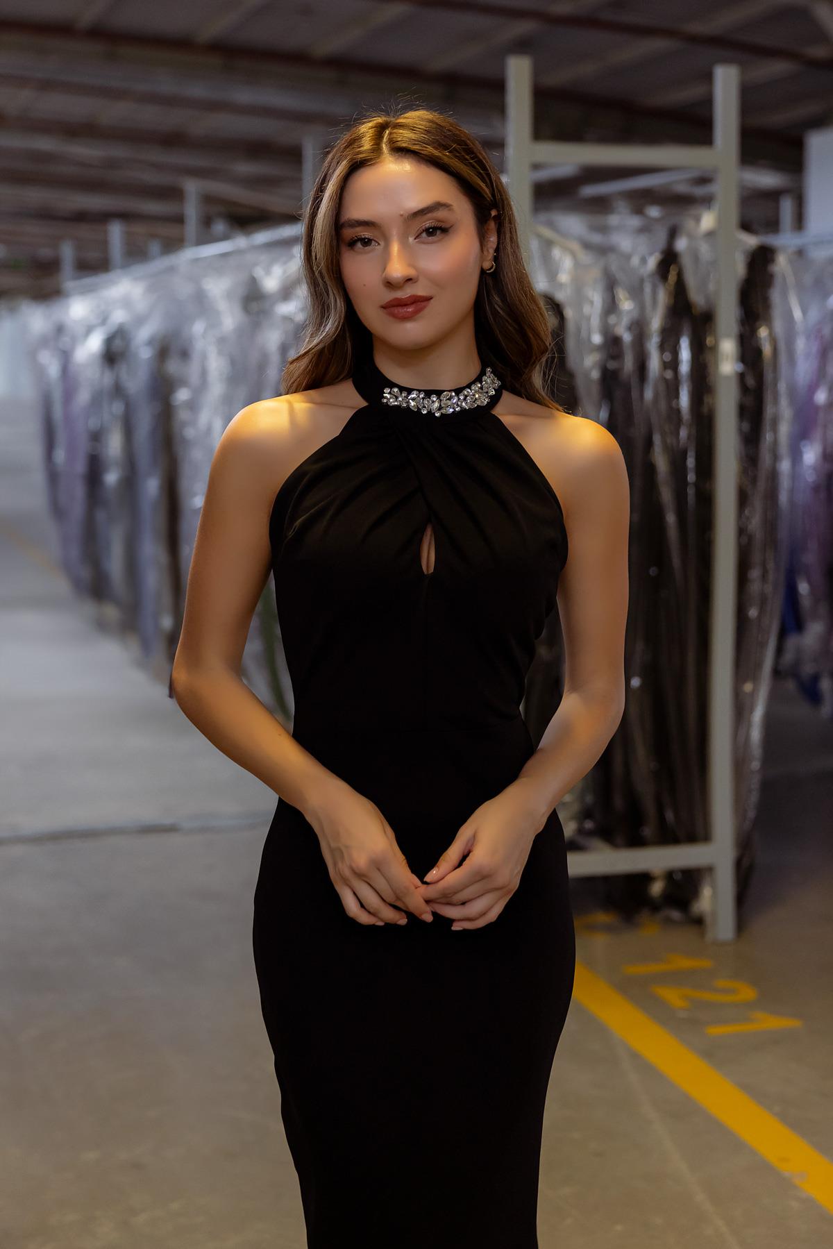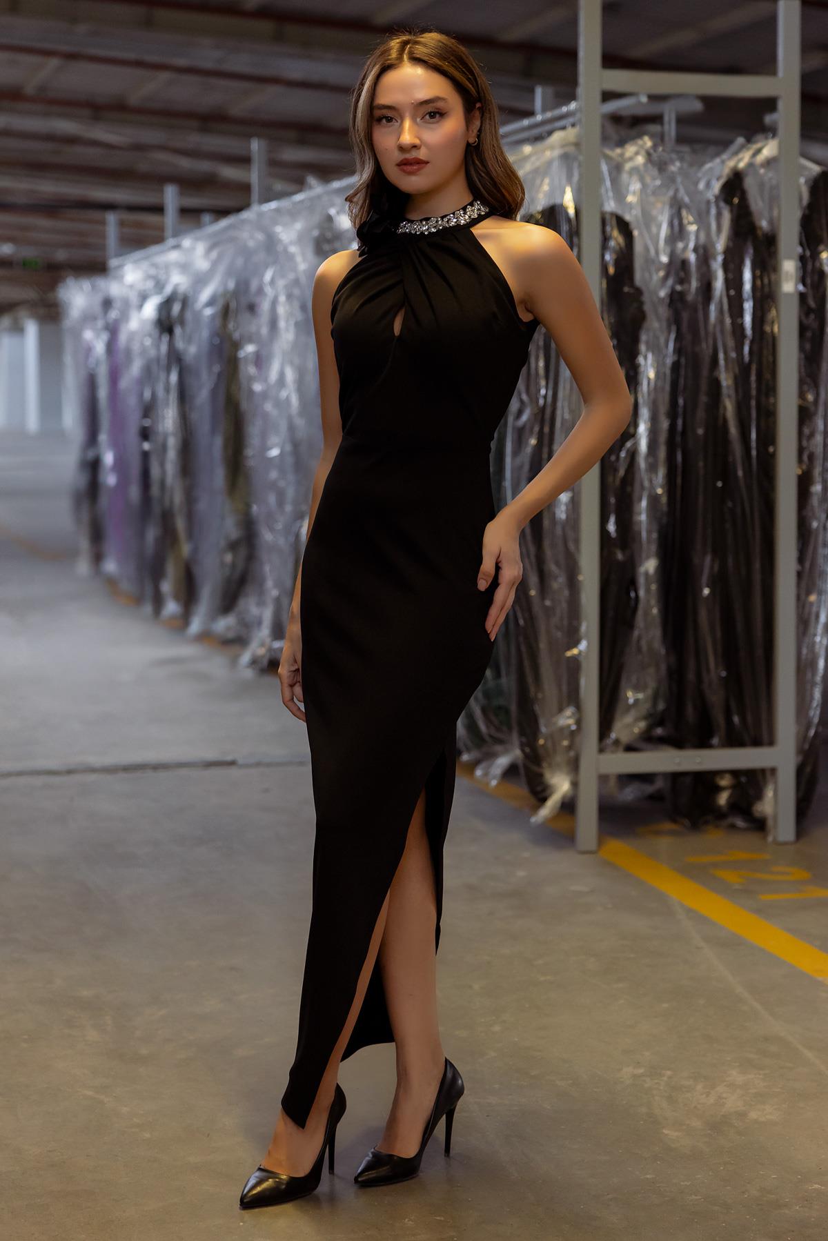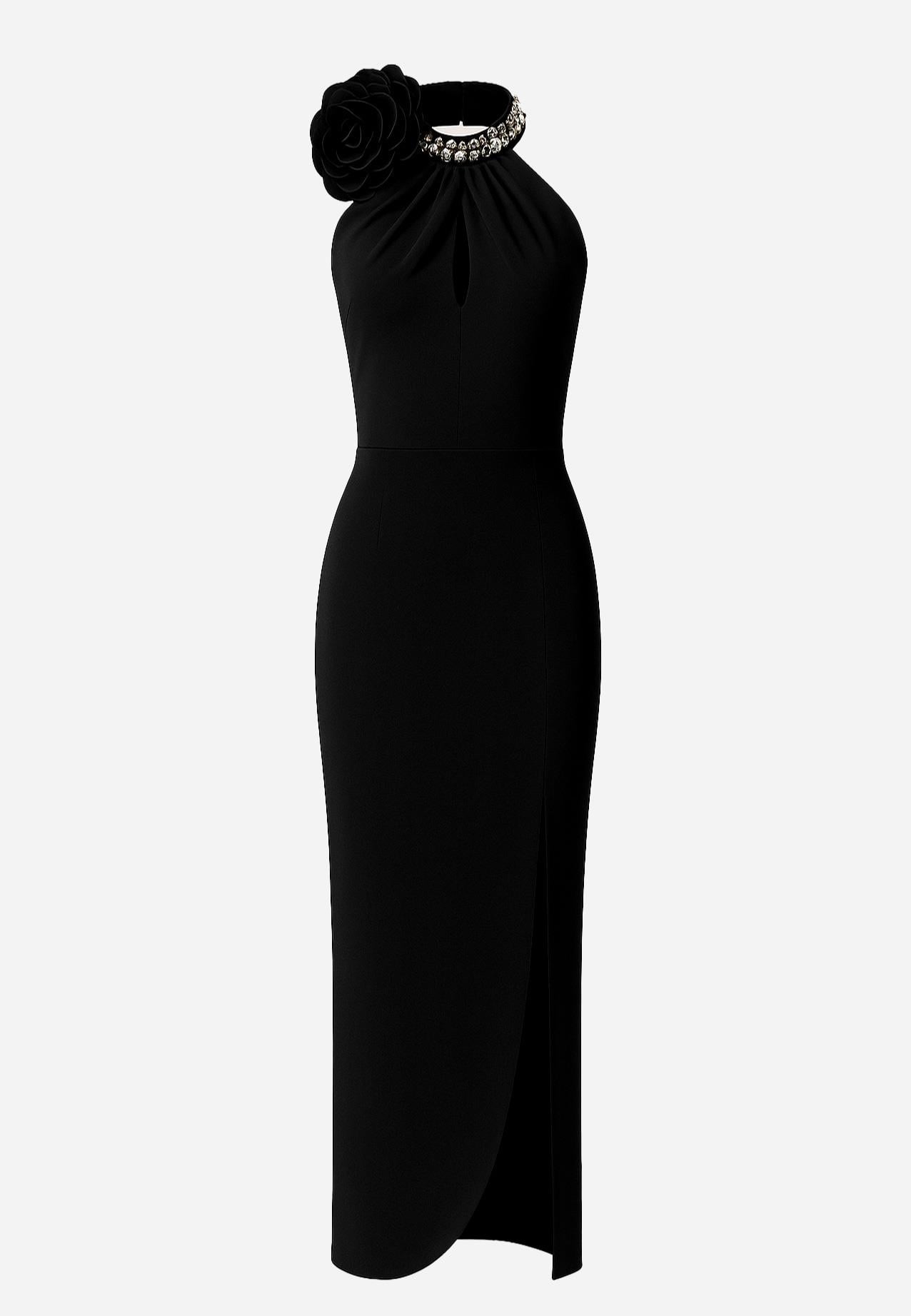 Halter Neck Gown with Brooch - Black (BEW665ABY0003100)