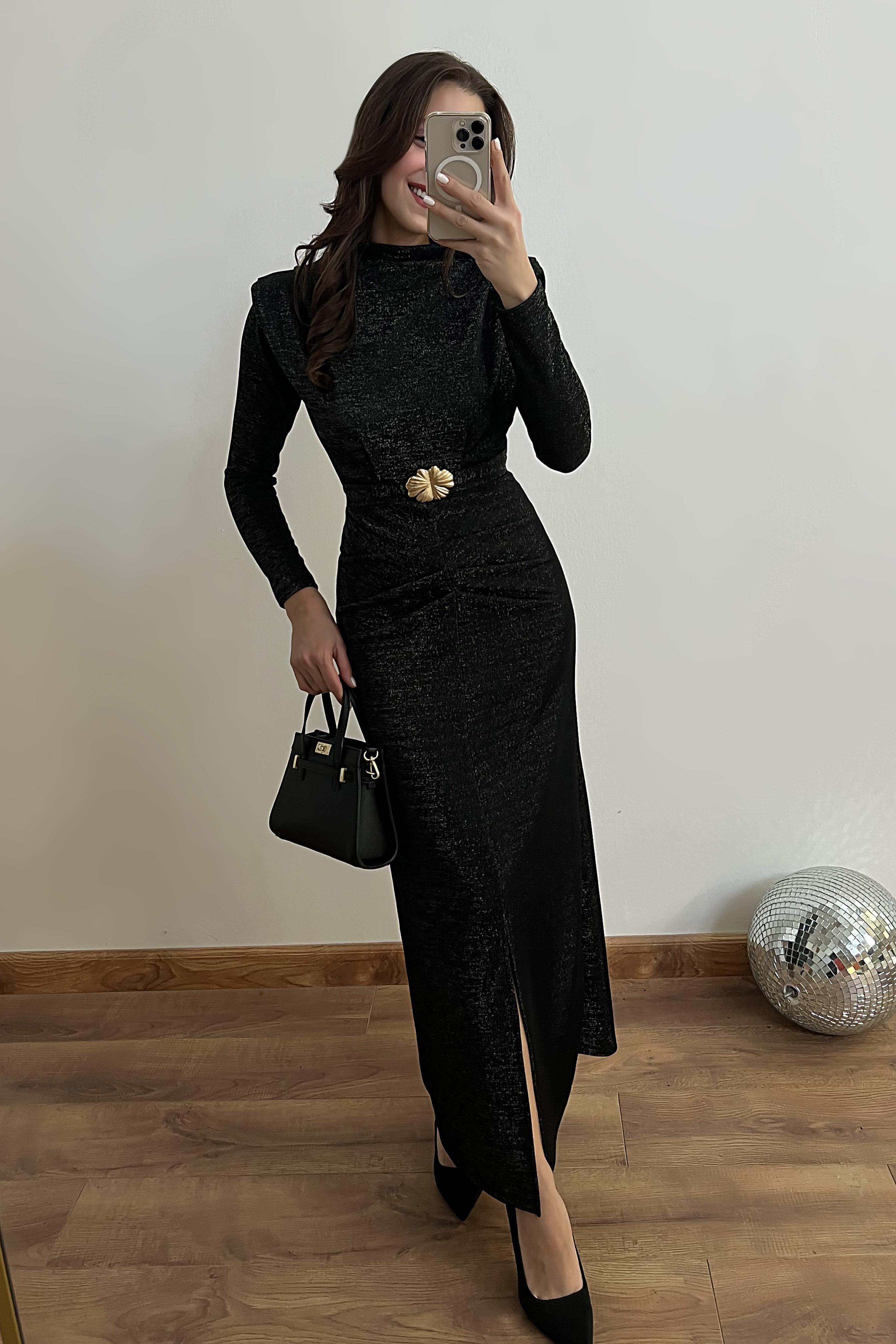 Işıltılı Kemerli Elbise - SİYAH (BFW143ELB0002100)