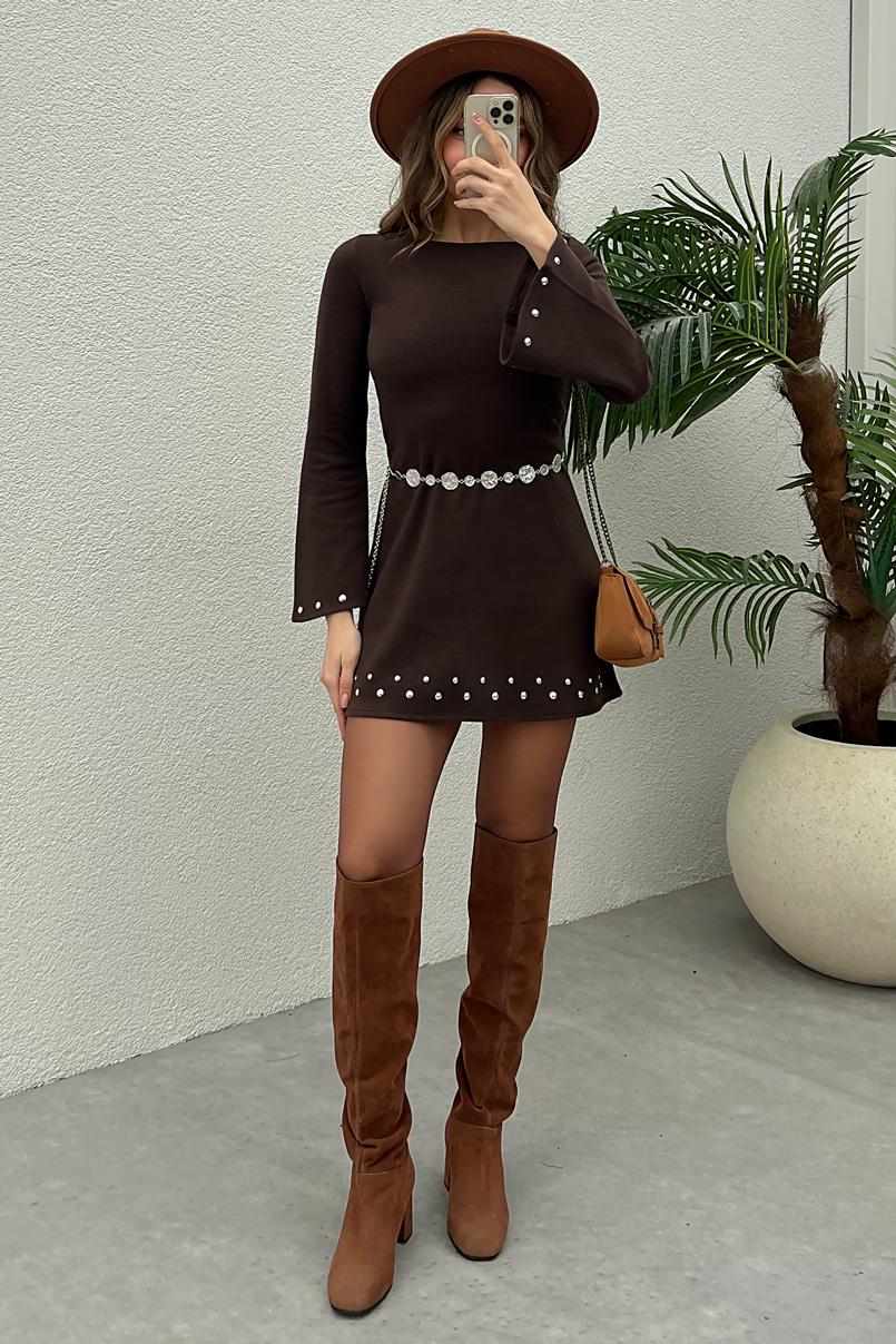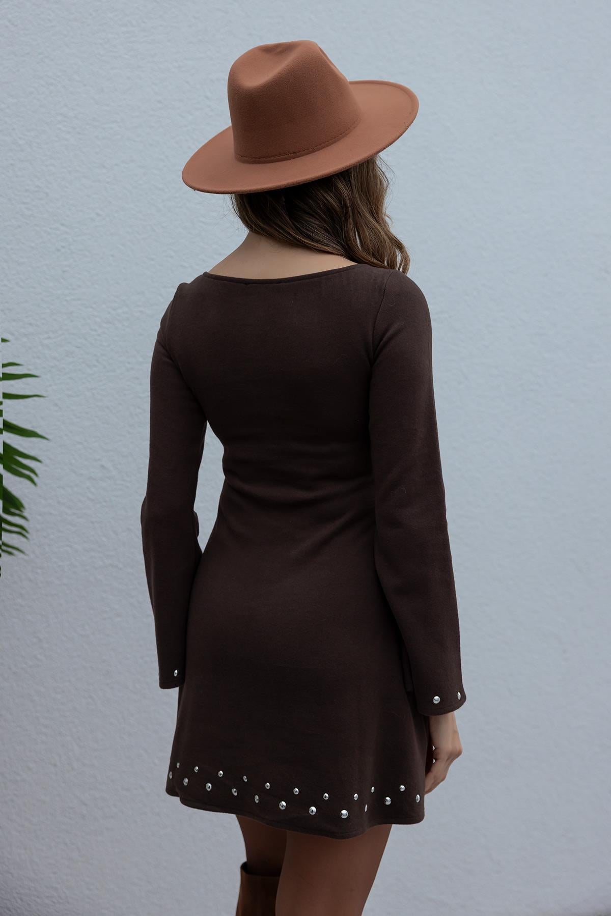 İspanyol Kola Elbise - KAHVERENGİ (BFW505ELB0001112)