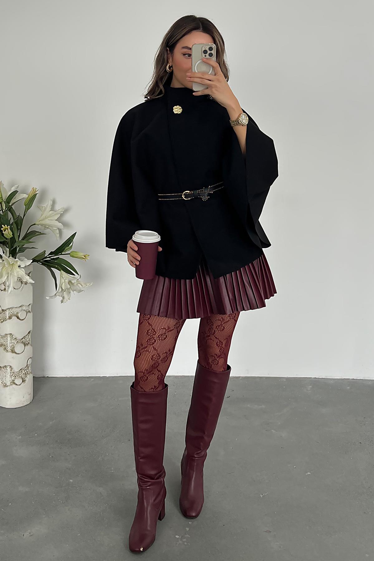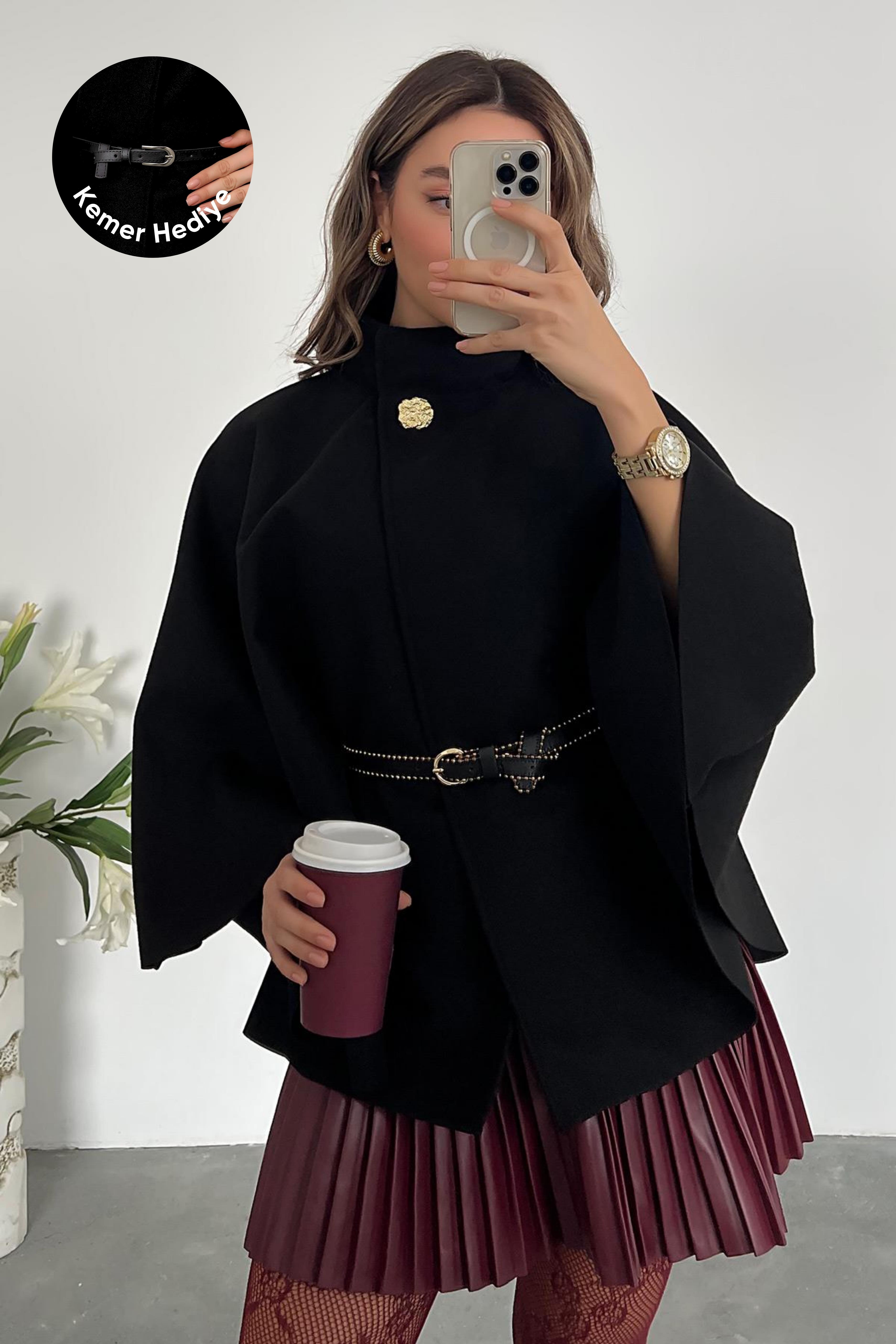 Kemerli Kaşe Panço - SİYAH (BFW065PNÇ0001100)