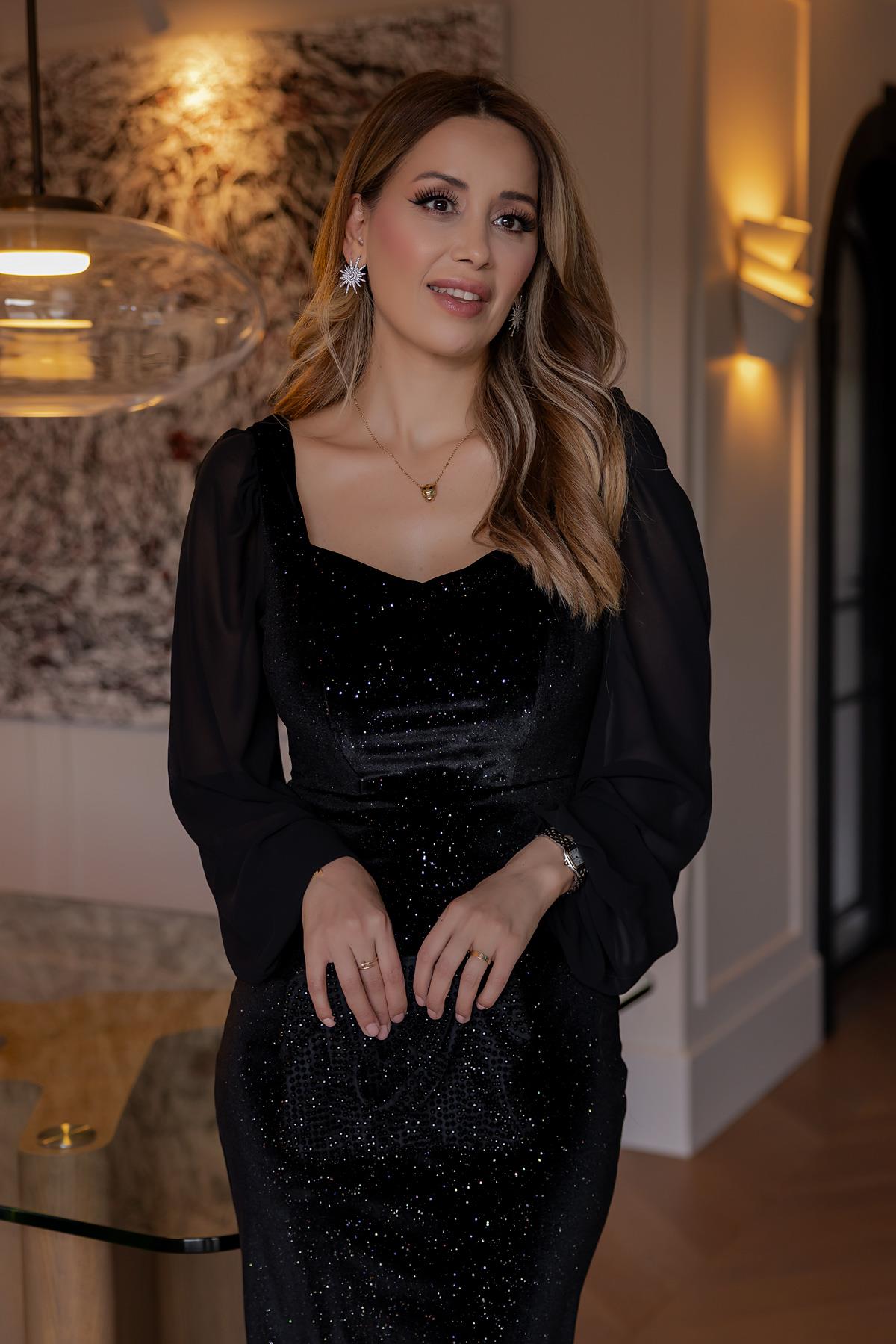 Kol Transparan Işıltılı Elbise - SİYAH (BFW093ELB0002100)
