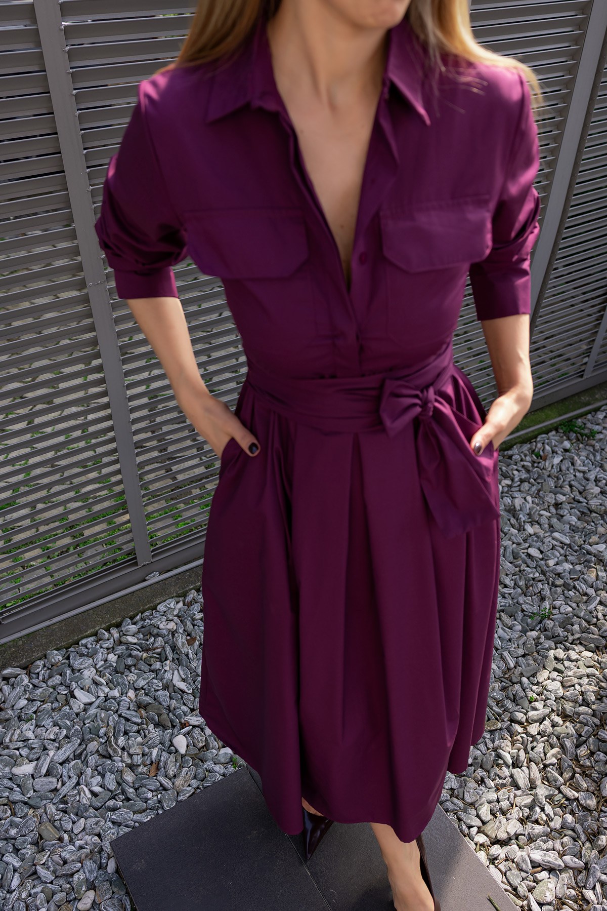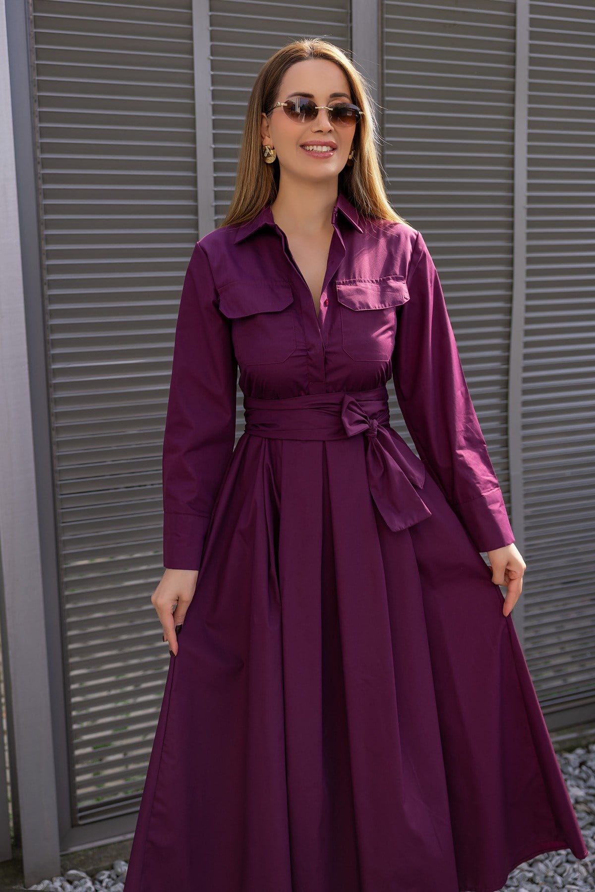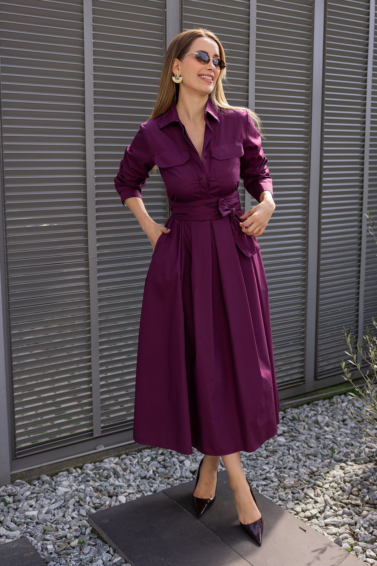 Kuşaklı Gömlek Elbise - MOR (BFW727ELB0002126)