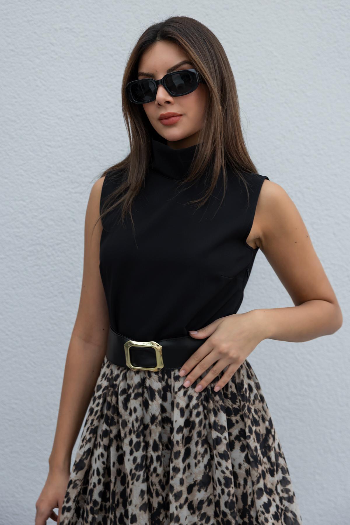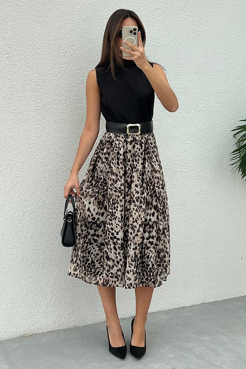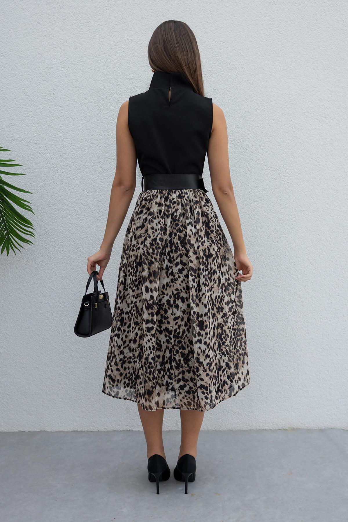 Leopar Desenli Elbise - SİYAH (BFW649ELB0001100)