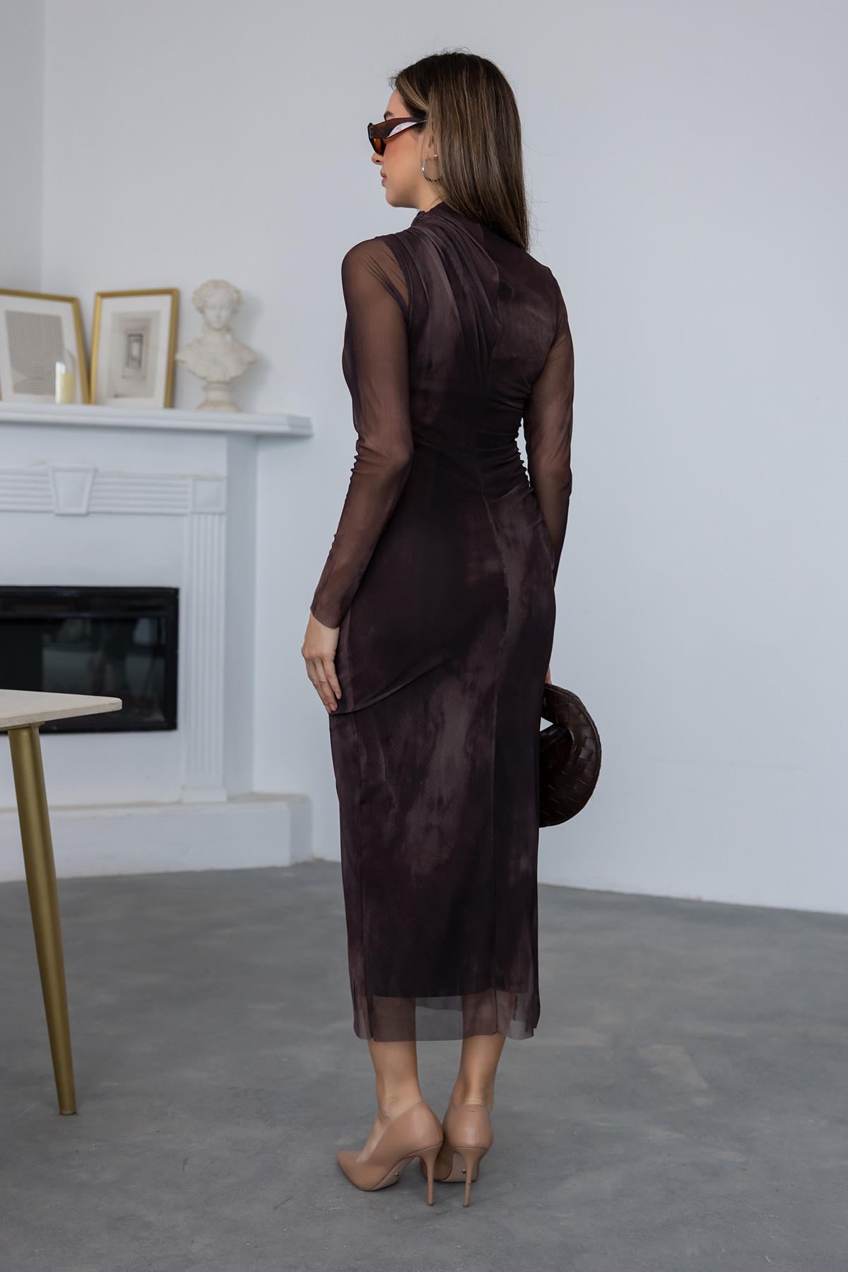 Midi Tül Örme Elbise - KAHVERENGİ (BDW531ELB0014112)