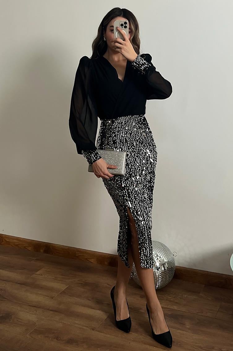 Sequin Evening Dress - Silver (BEW531ABY0002133)
