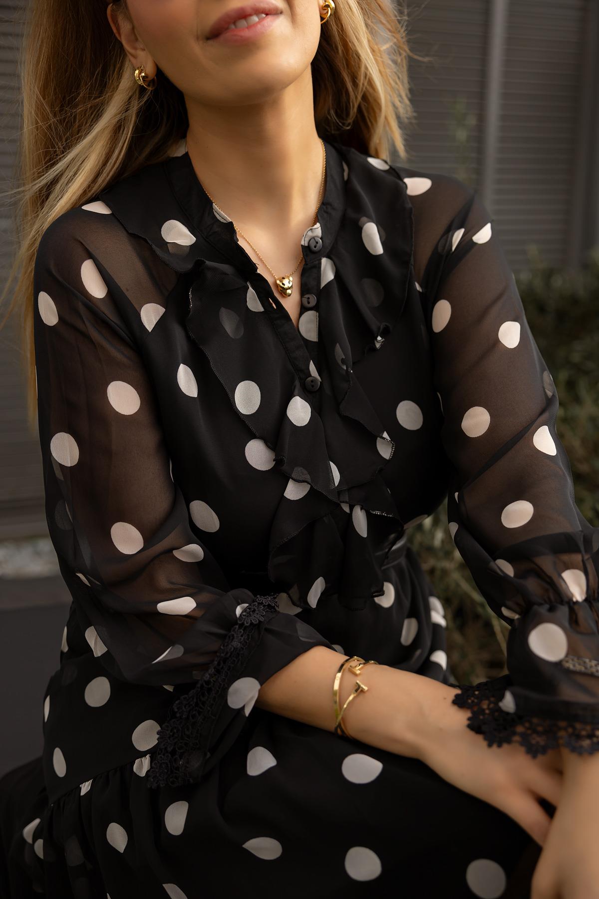 Puantiyeli Şifon Tül Elbise - SİYAH (BFW157ELB0003100)