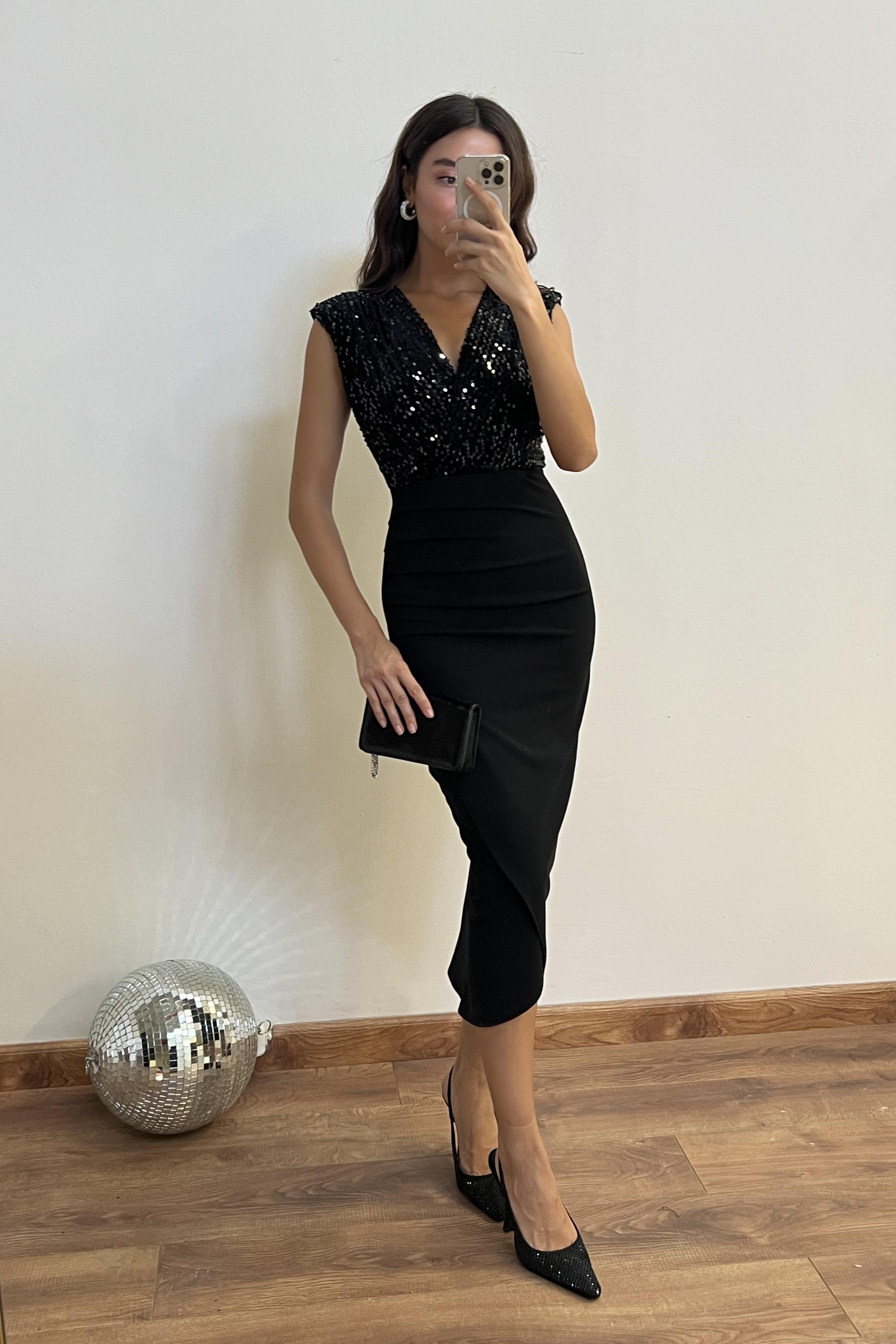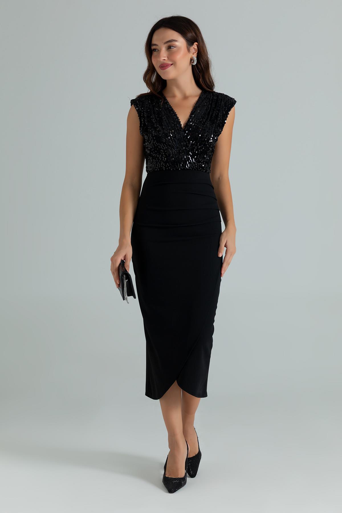 Pul İşlemeli Kalem Elbise - SİYAH (BES531ELB0084100)