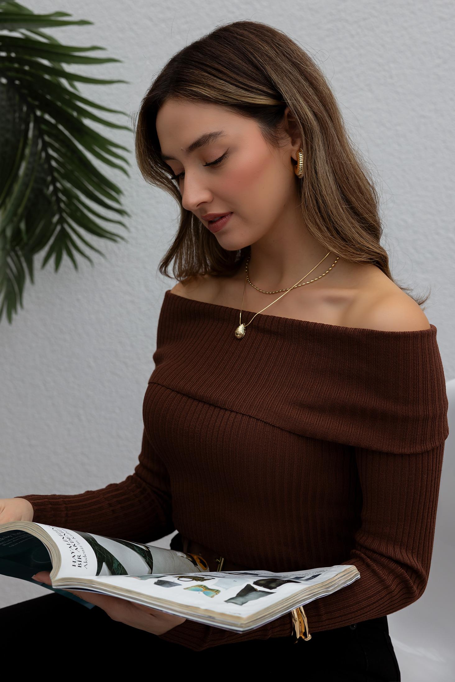 Şal Yaka Triko - KAHVERENGİ (BFW130TRK0002112)