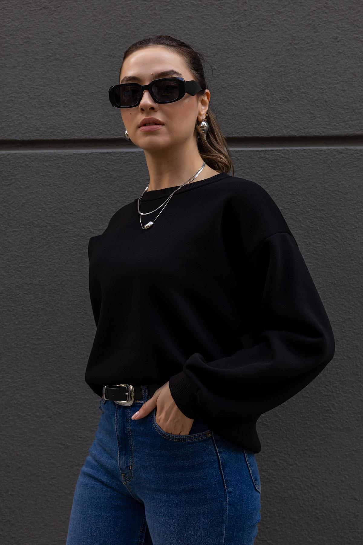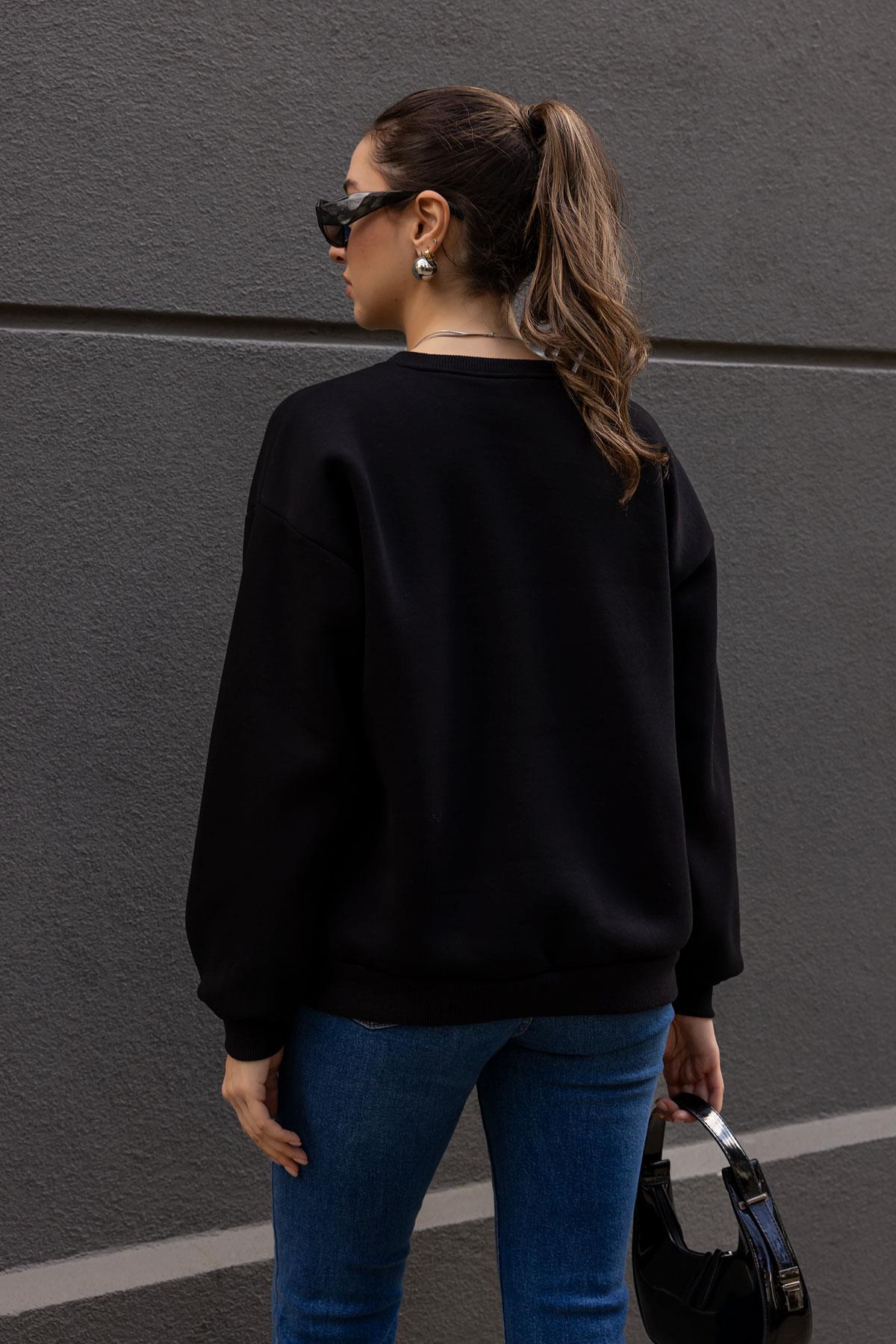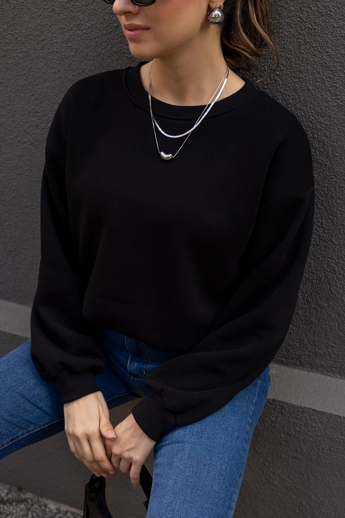 Şardonlu Bisiklet Yaka Sweat - SİYAH (BEW237SWT0002100)