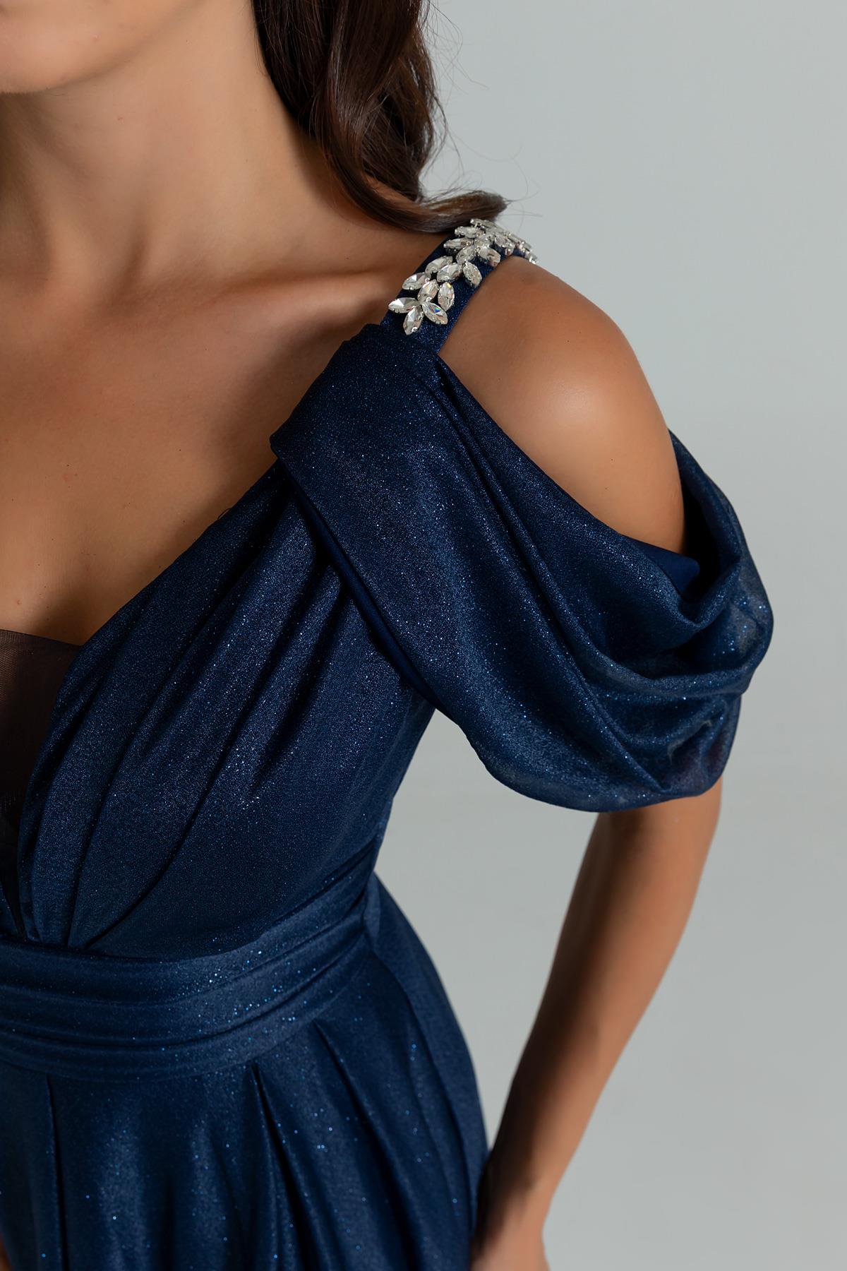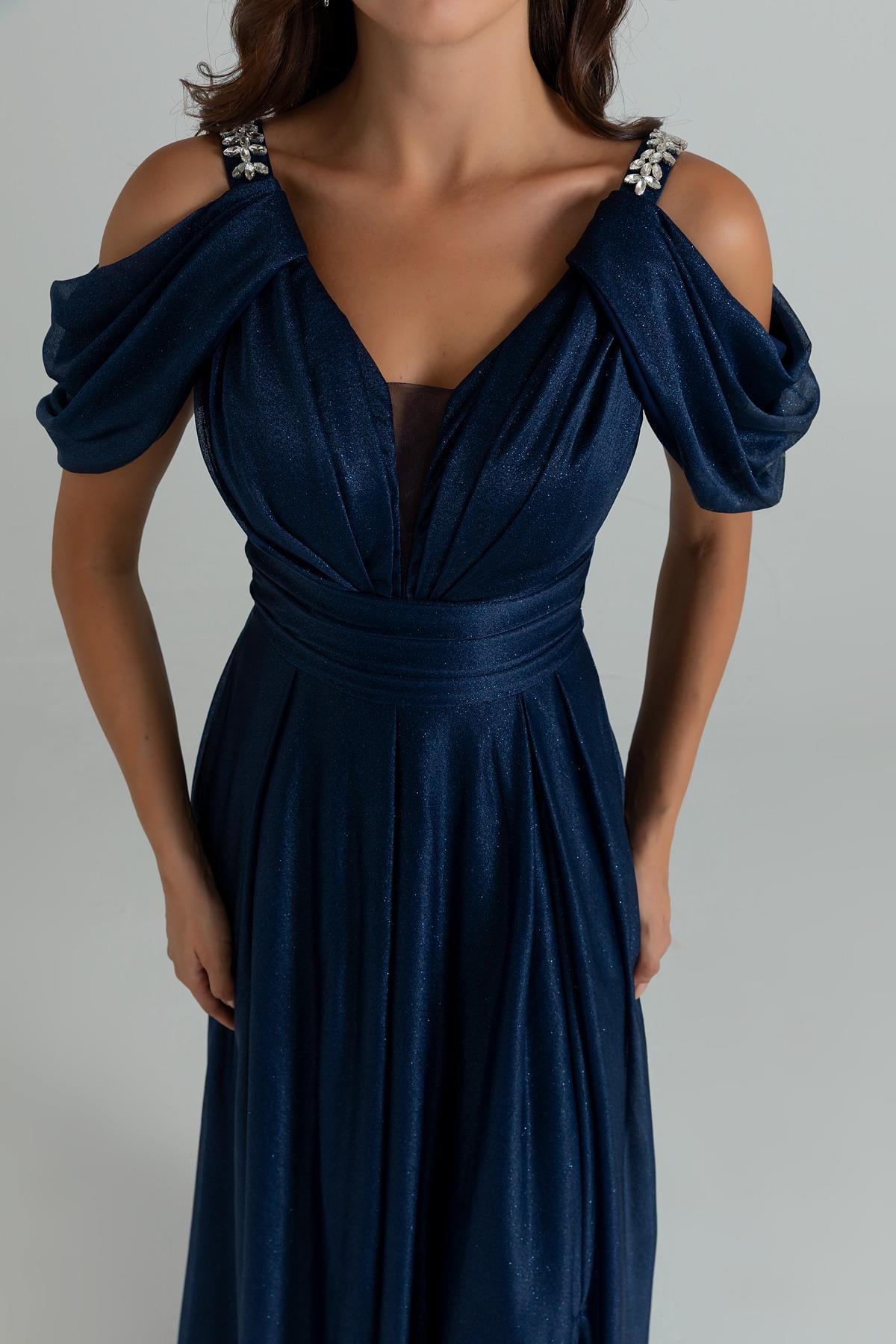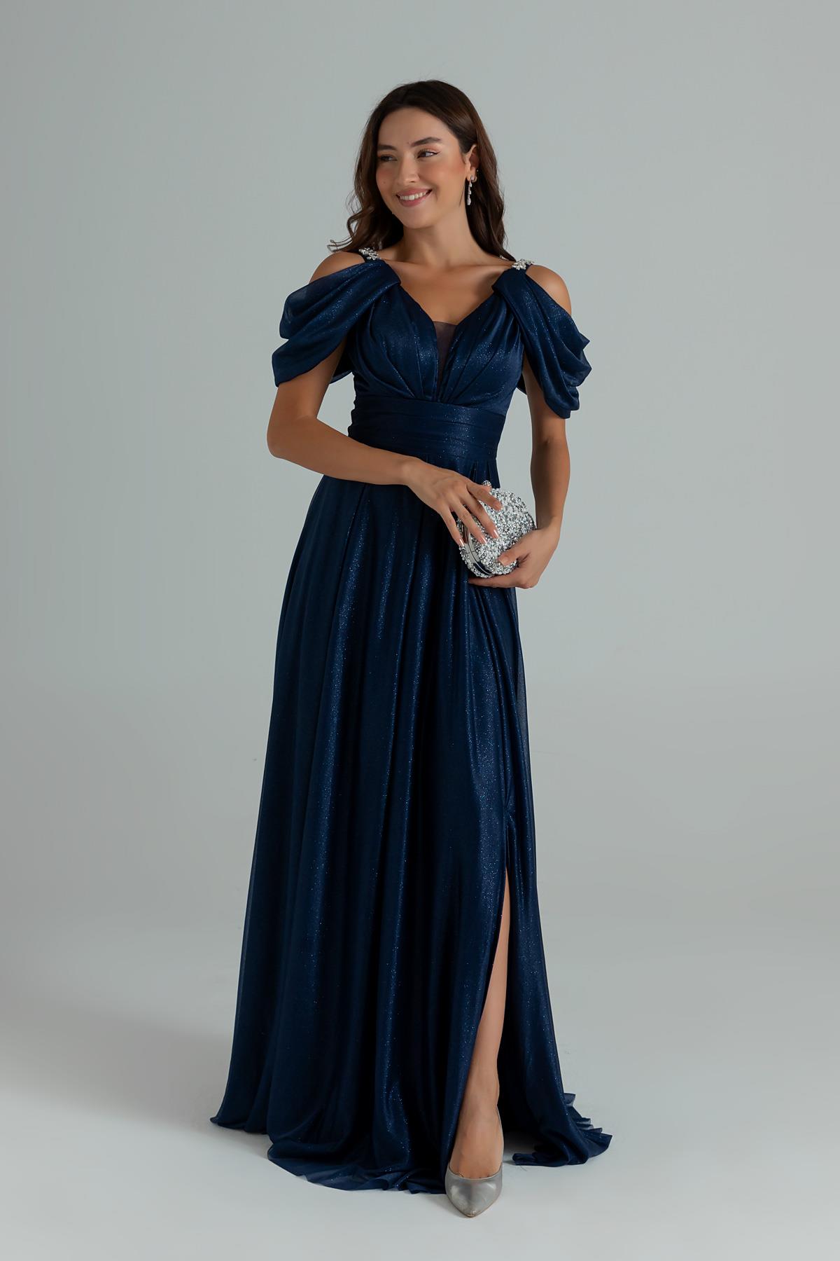 Simli Drapeli Kloş Abiye - LACİVERT (BES008ABY0017110)