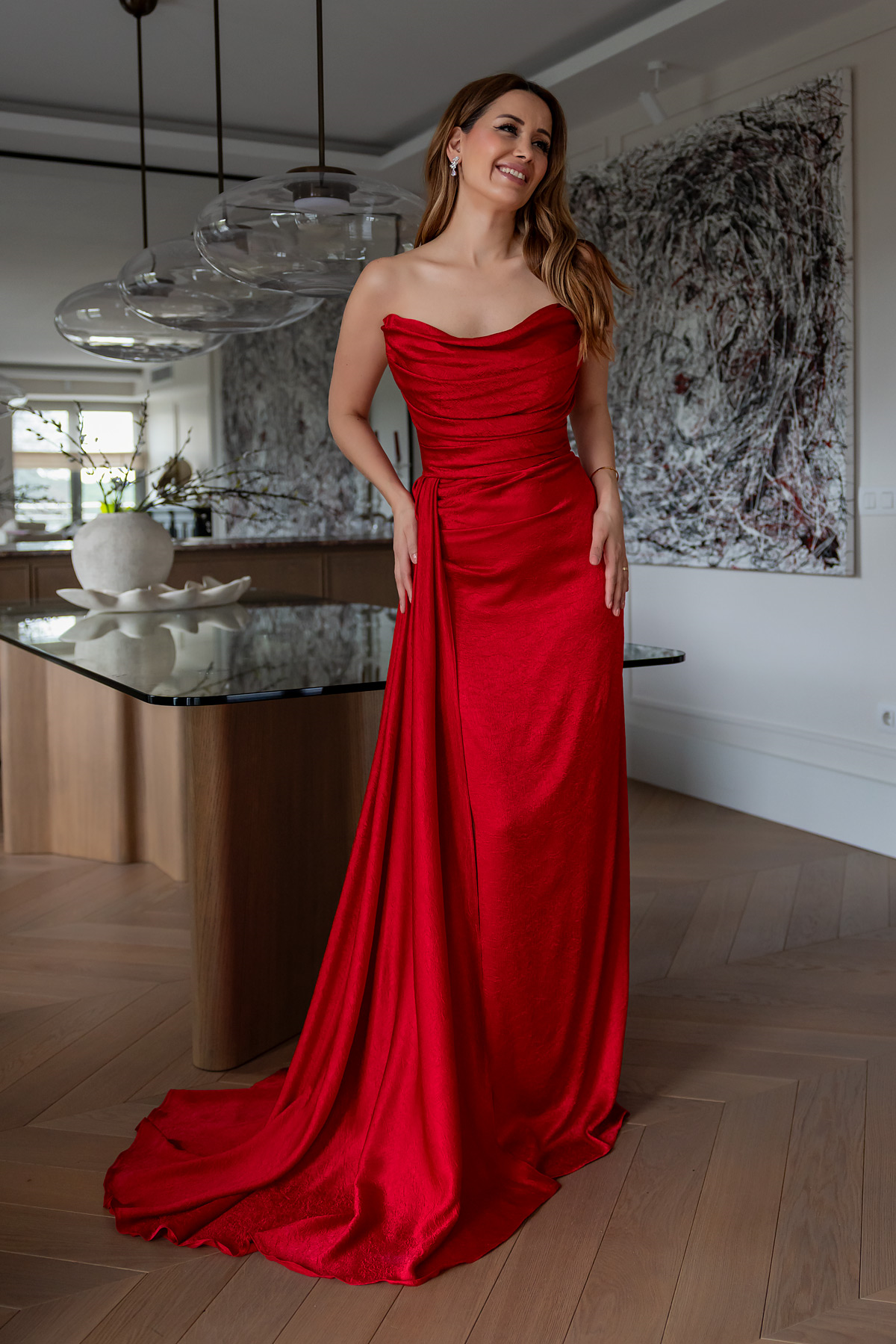 Straplez Bel Drapeli Abiye - KIRMIZI (BFW739ABY0003124)