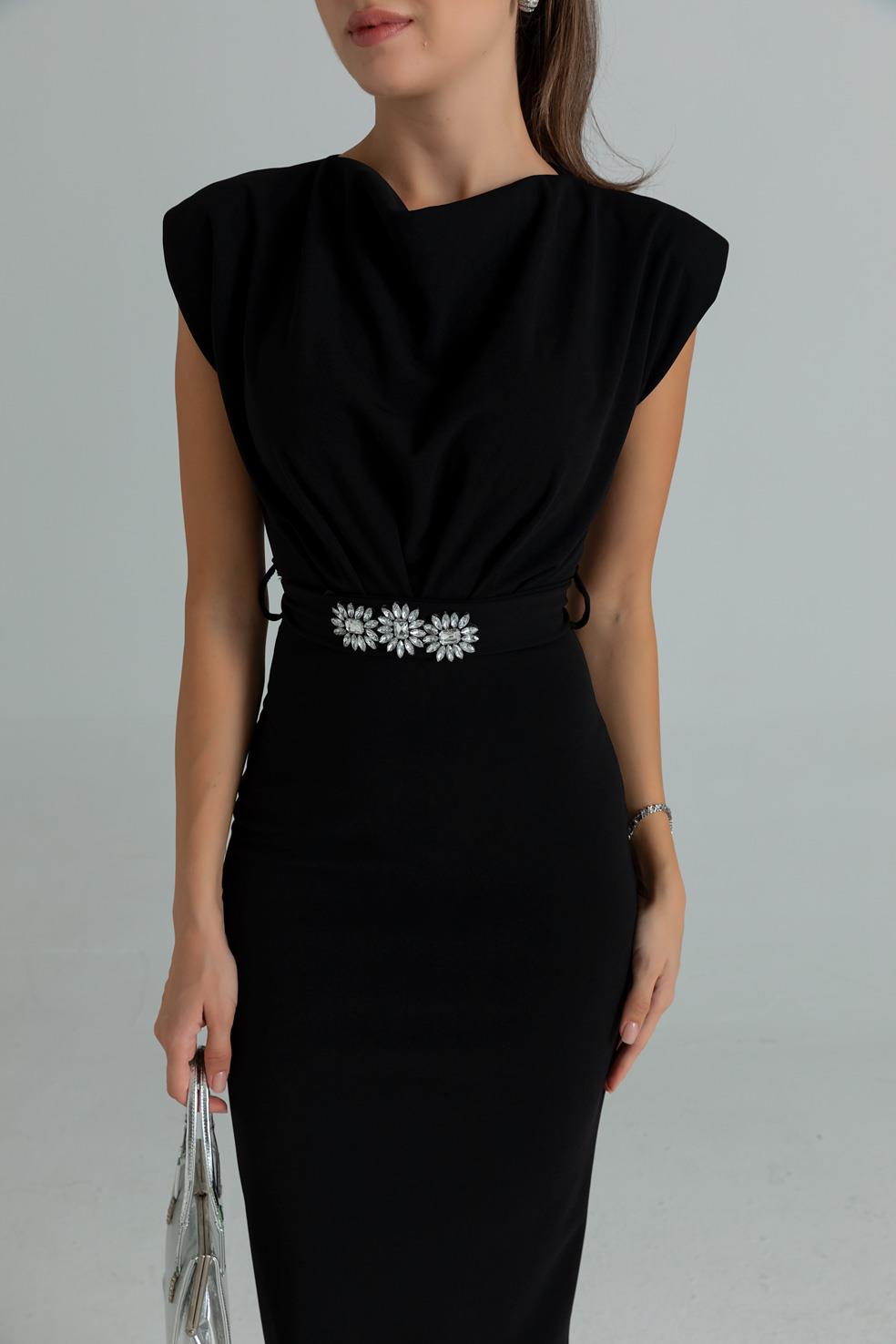 Taş Kemerli Kalem Elbise - SİYAH (BES531ELB0089100)