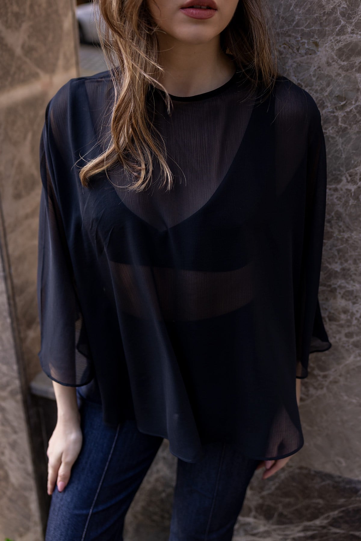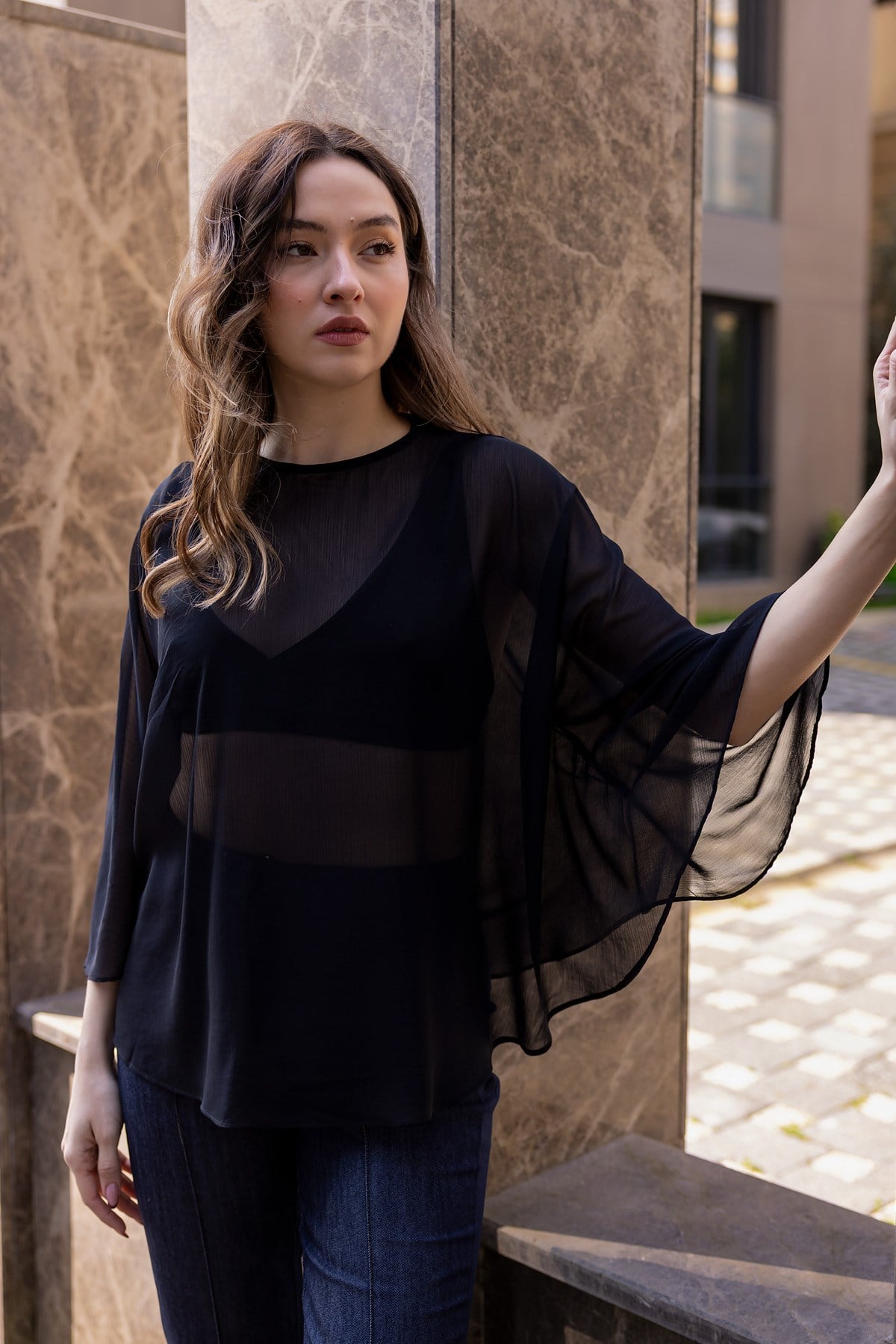 Transparan Pelerin Bluz - SİYAH (BFW132BLZ0001100)