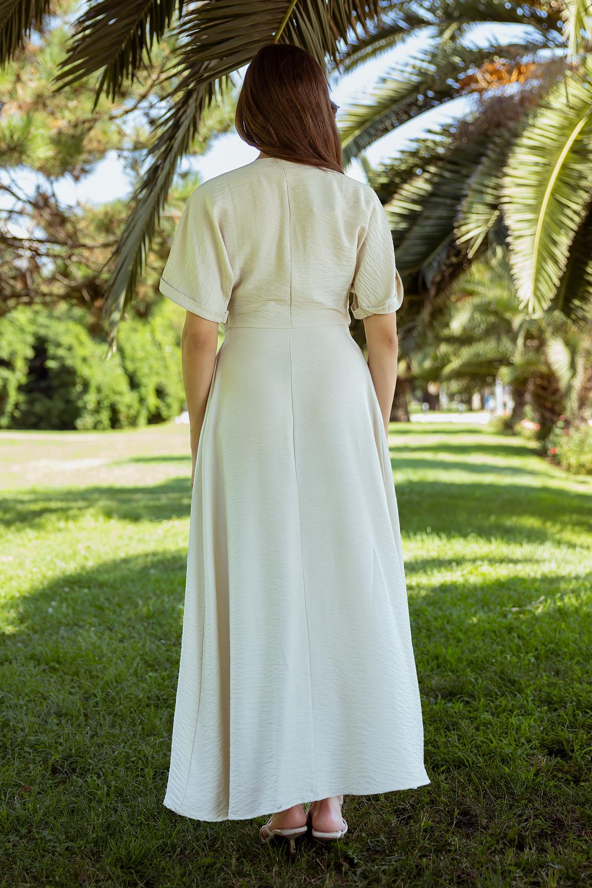 V Yaka Cepli Elbise - BEJ (BES531ELB0069146)